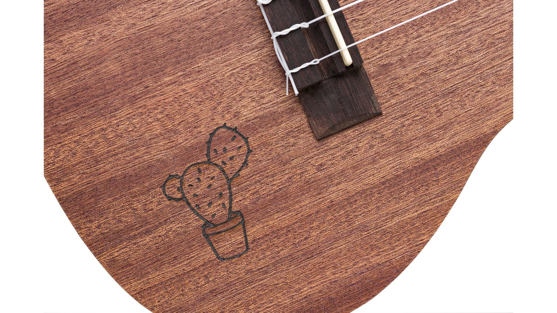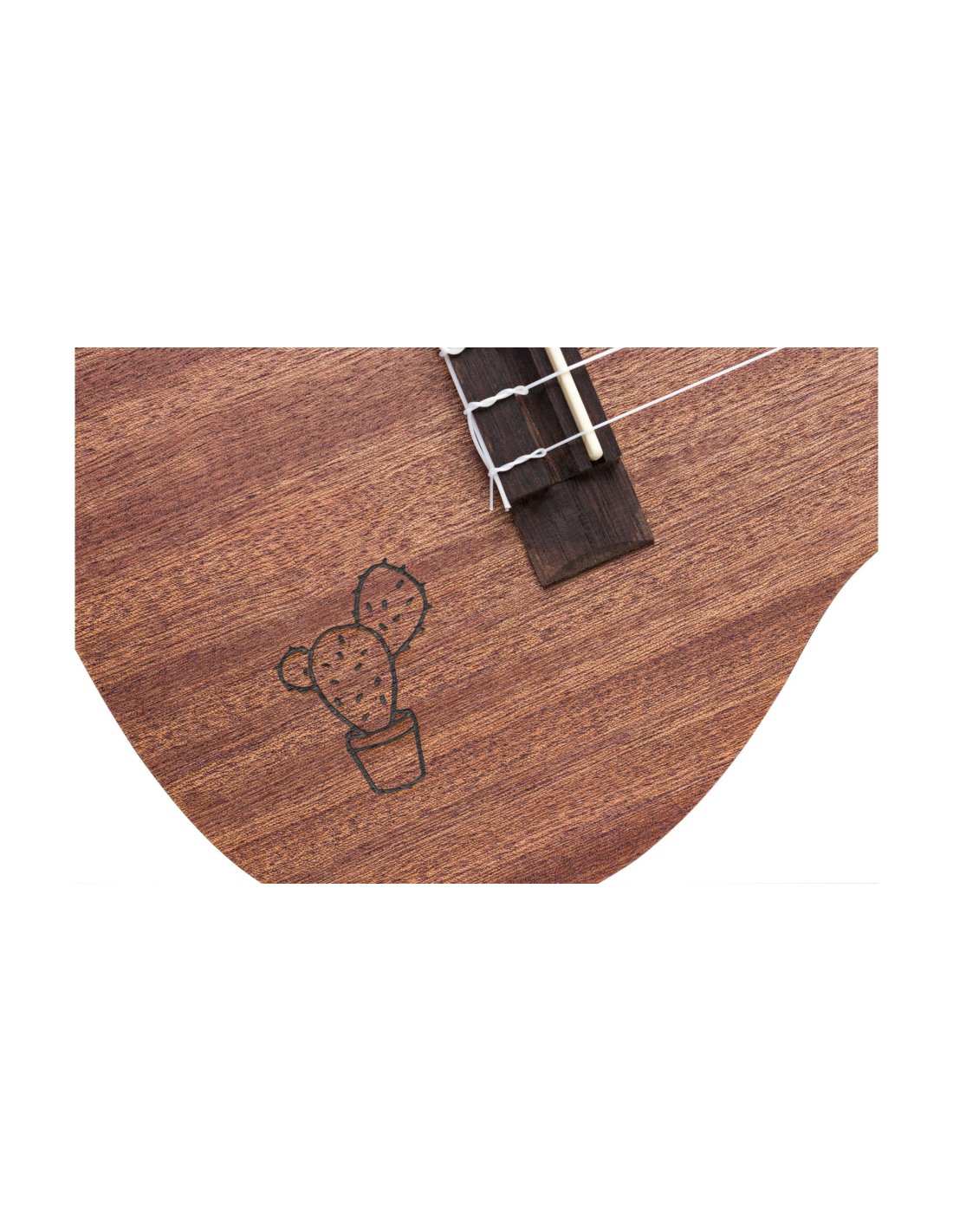 BATON ROUGE UR11-C CACTUS UKULELE CONCERT est un Ukulélé de format Concert avec un corps en Acajou, un manche en Okoumé, un touche et un chevalet en Noyer, des mécaniques ouvertes dorées de style guitare avec des boutons noirs, un design "Cactus" imprimé au laser, une longueur de scale de 375mm, un sillet de 35mm, des cordes Aquila Nylgut préinstallées.