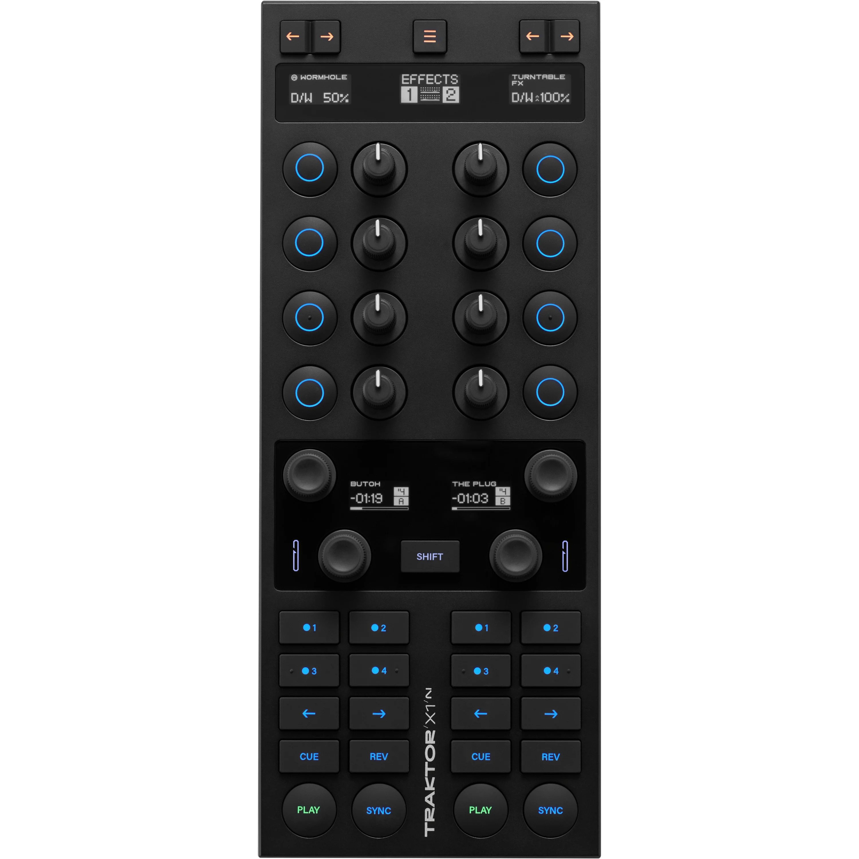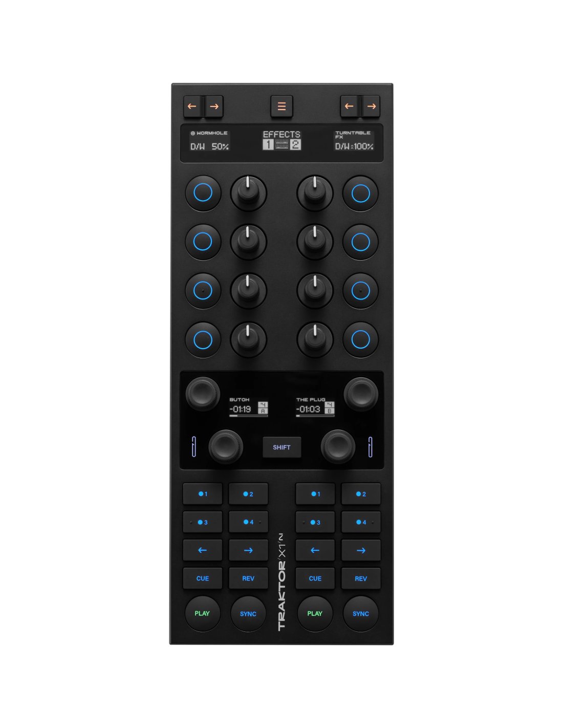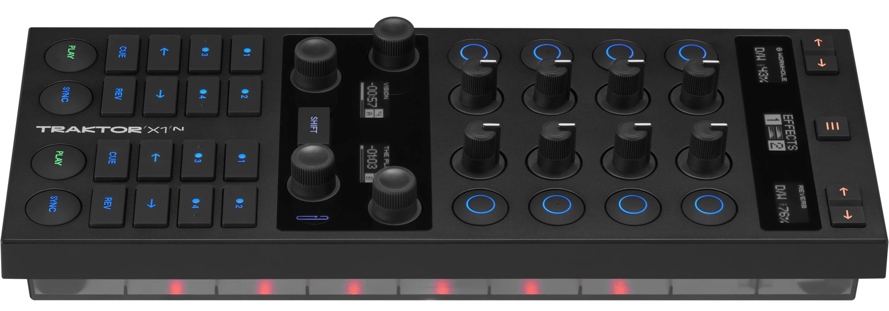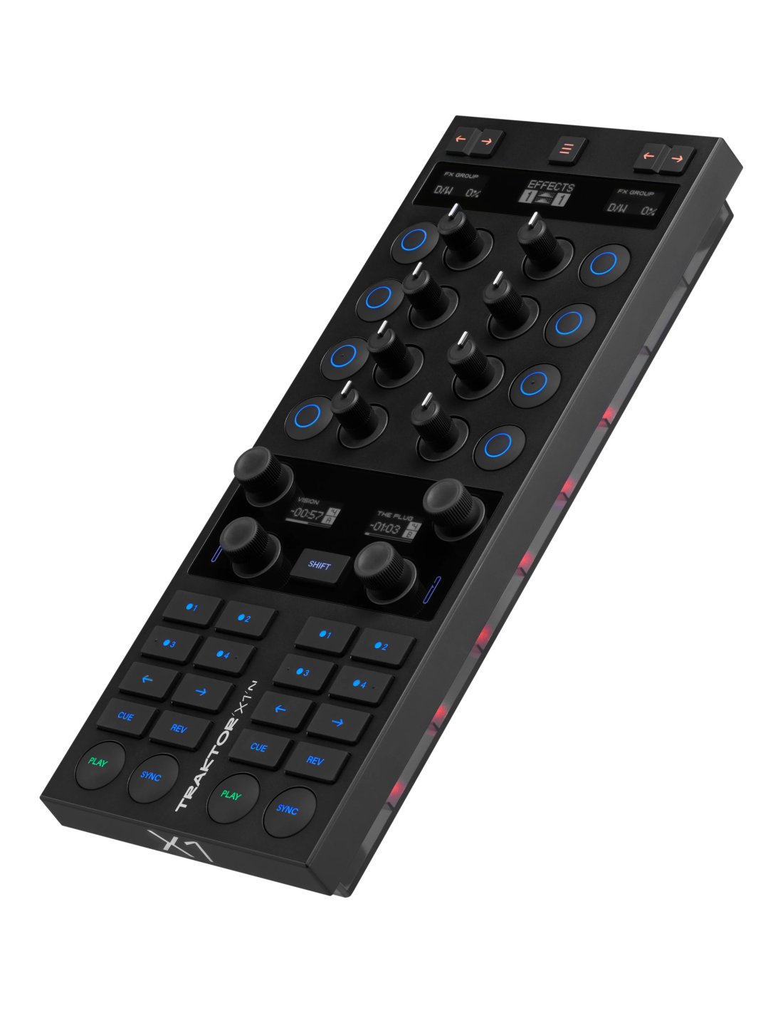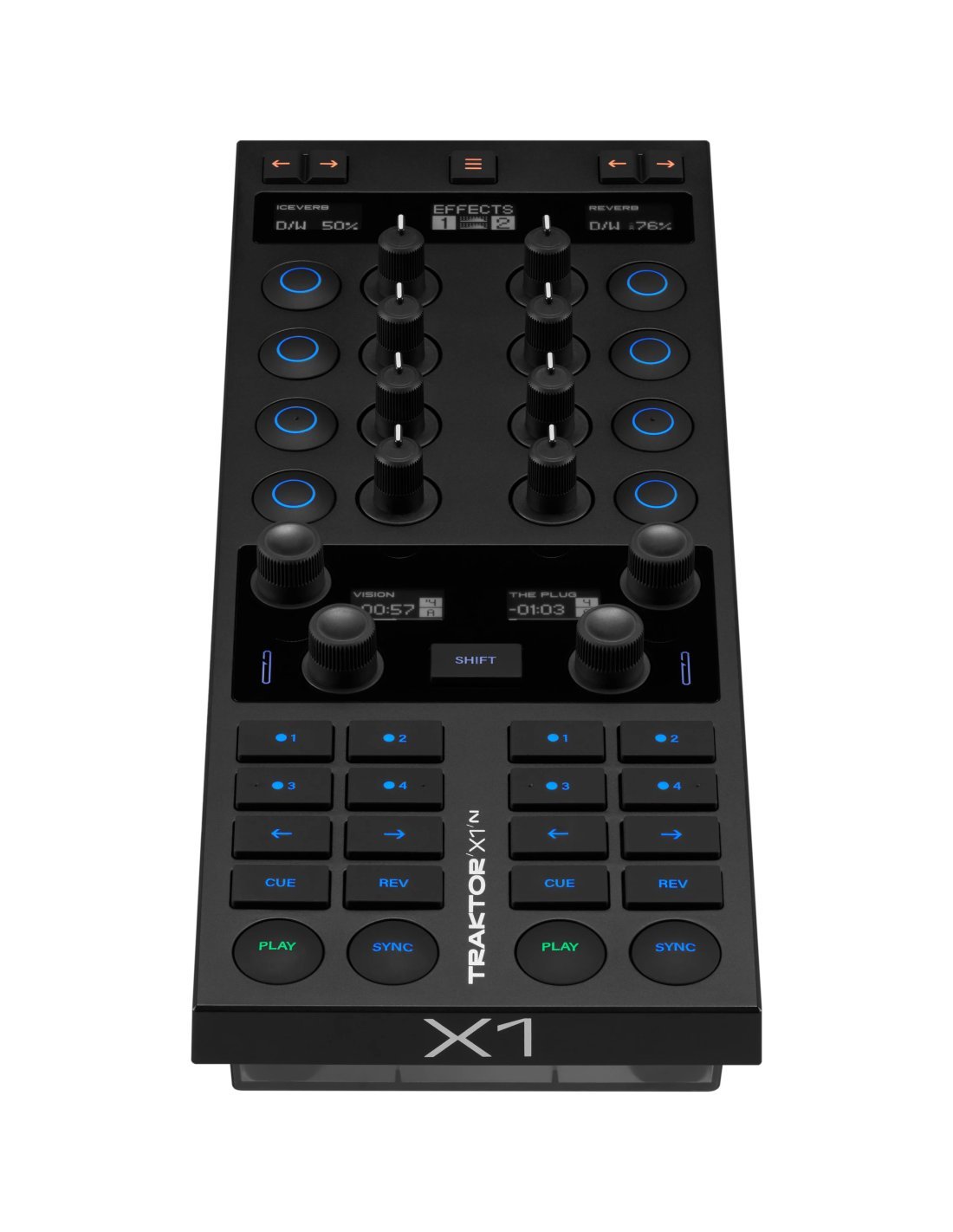 NATIVE INSTRUMENTS TRAKTOR KONTROL X1 MK3. Contrôleur USB DJ conçu pour l'intégration avec le logiciel Traktor Pro 3 pour le mixage et le beatmatching numérique. Les caractéristiques techniques incluent des encodeurs rotatifs sensibles au toucher qui détectent la pression et la direction dans laquelle ils sont tournés, 8 pads RGB rétroéclairés qui peuvent être utilisés pour déclencher des points de repère, des boucles, des échantillons et plus encore, des faders dédiés pour le contrôle du volume et de l'égalisation sur chaque platine, des boutons dédiés pour la gestion des boucles, la navigation entre les pistes, la synchronisation des BPM et d'autres fonctions essentielles. Le contrôleur est alimenté par bus USB-C et est compatible avec Mac et PC.