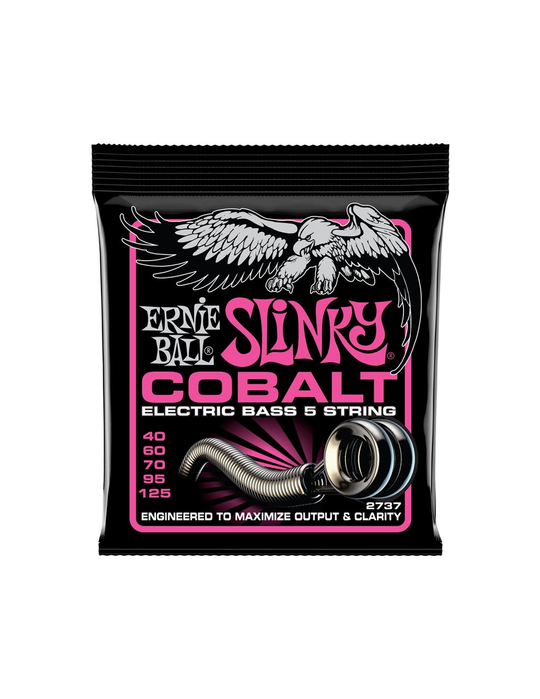 2737 Bass 5 Super Slinky Cobalt est le jeu de cordes pour basse électrique à 5 cordes de la série "Expanded Cobalt Slinky" d'Ernie Ball avec un tirant de 40-125. Elles sont fabriquées avec un fil enroulé breveté en cobalt, autour de noyaux hexagonaux plaqués, pour garantir une meilleure performance et clarté de ton.