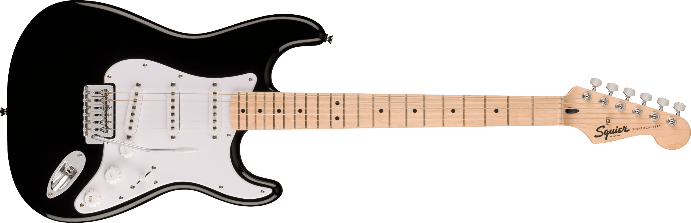 Guitare Électrique Squier Sonic Strat couleur 2 COLOR BLACK. La Squier Sonic Strat est une guitare électrique à 6 cordes. Les caractéristiques techniques incluent un corps en peuplier, un manche et une touche en érable avec 21 frettes étroites et hautes, 3 micros en céramique à simple bobinage et un pont tremolo.