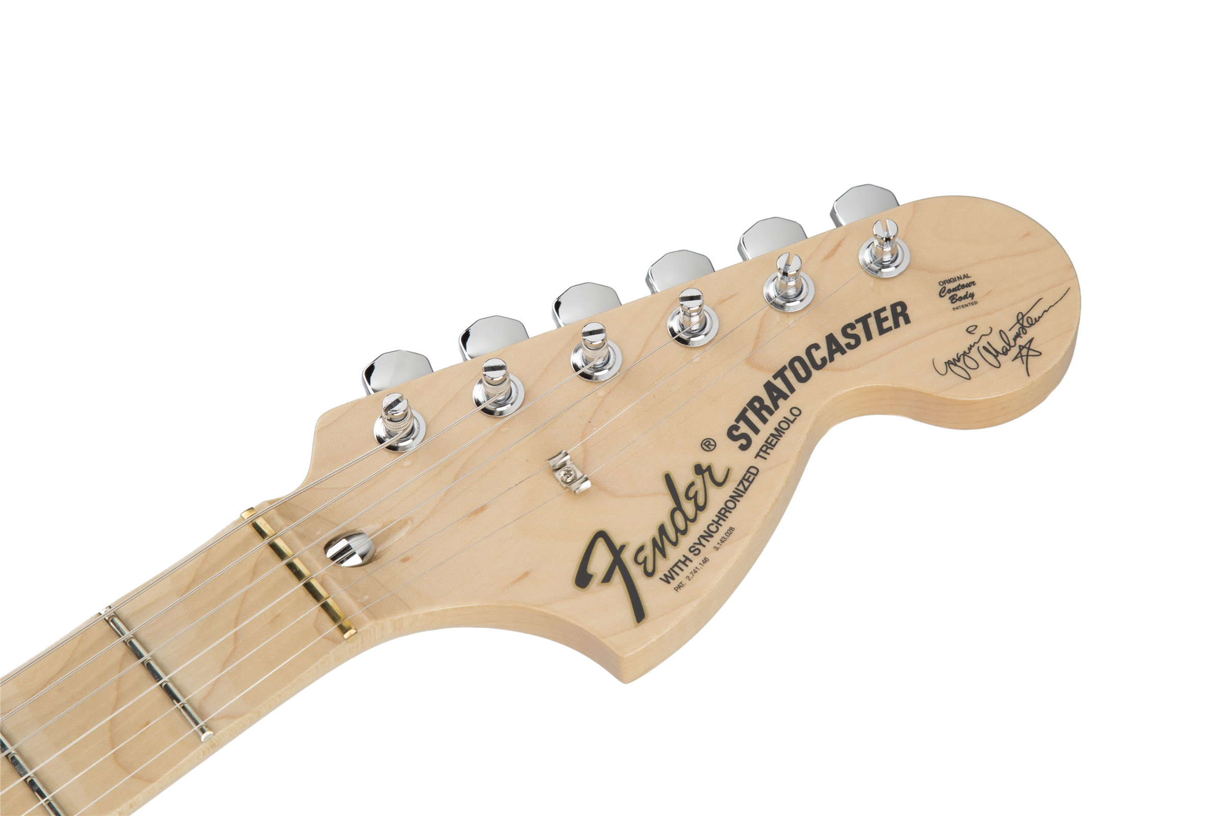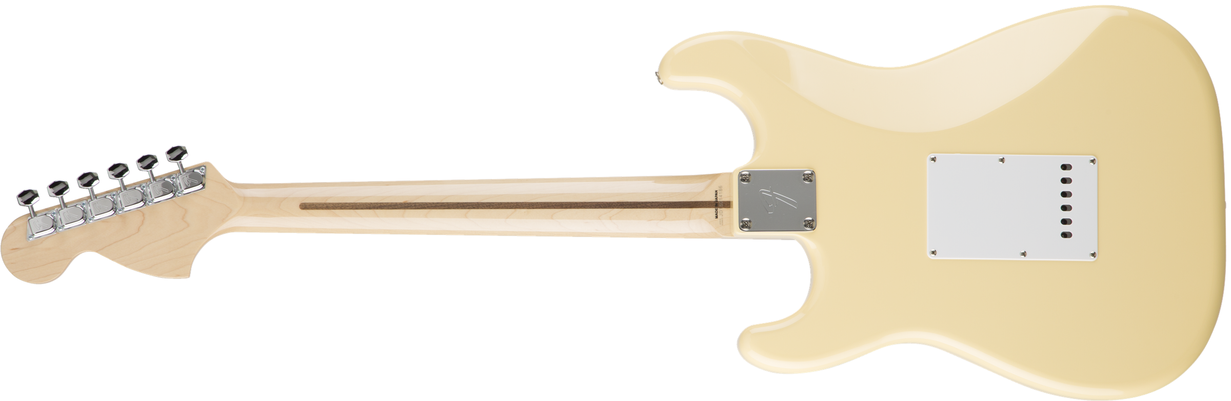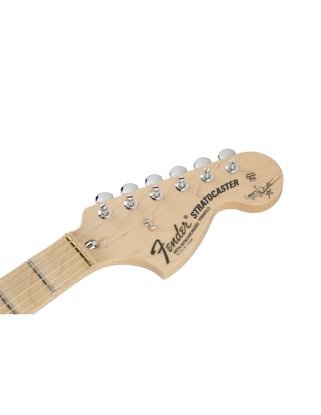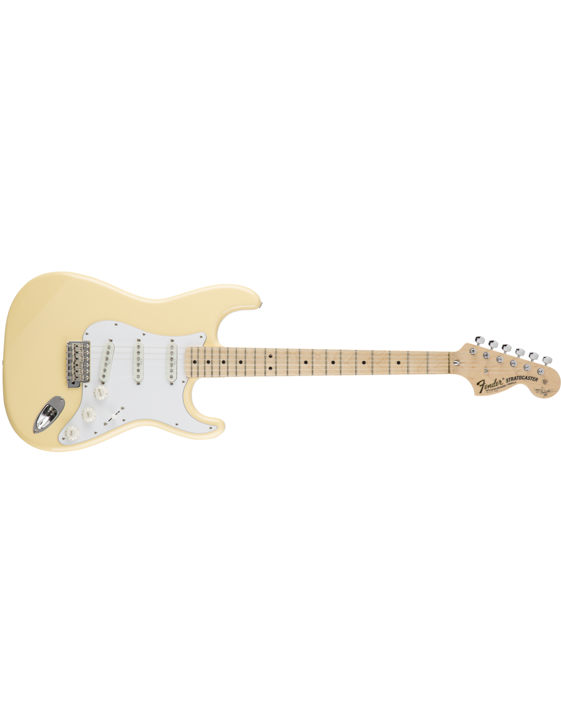 FENDER YNGWIE MALMSTEEN STRAT YWH est une guitare électrique solid body Fender Stratocaster Yngwie J Malmsteen signature avec un corps en aulne, un manche en érable profil Slim C Shape, une touche en érable scallopée à rayon moderne de 9,5" avec 21 frettes jumbo et des incrustations Black Dot, un sillet en laiton, un matériel chromé, un Truss Rod Bullet Style, des mécaniques Fender American Vintage F Stamped et un pont American Vintage Synchronized Tremolo à 6-sellettes. L'électronique en configuration SSS se compose de 2 micros single-coil Seymour Duncan YJM Fury Strat STK-S10N au centre et au manche et 1 micro single-coil Seymour Duncan YJM Fury Strat STK-S10B au pont, avec des contrôles de volume, de tonalité et un sélecteur de micro à 3 voies. Inclut un étui Fender Gig Bag.
