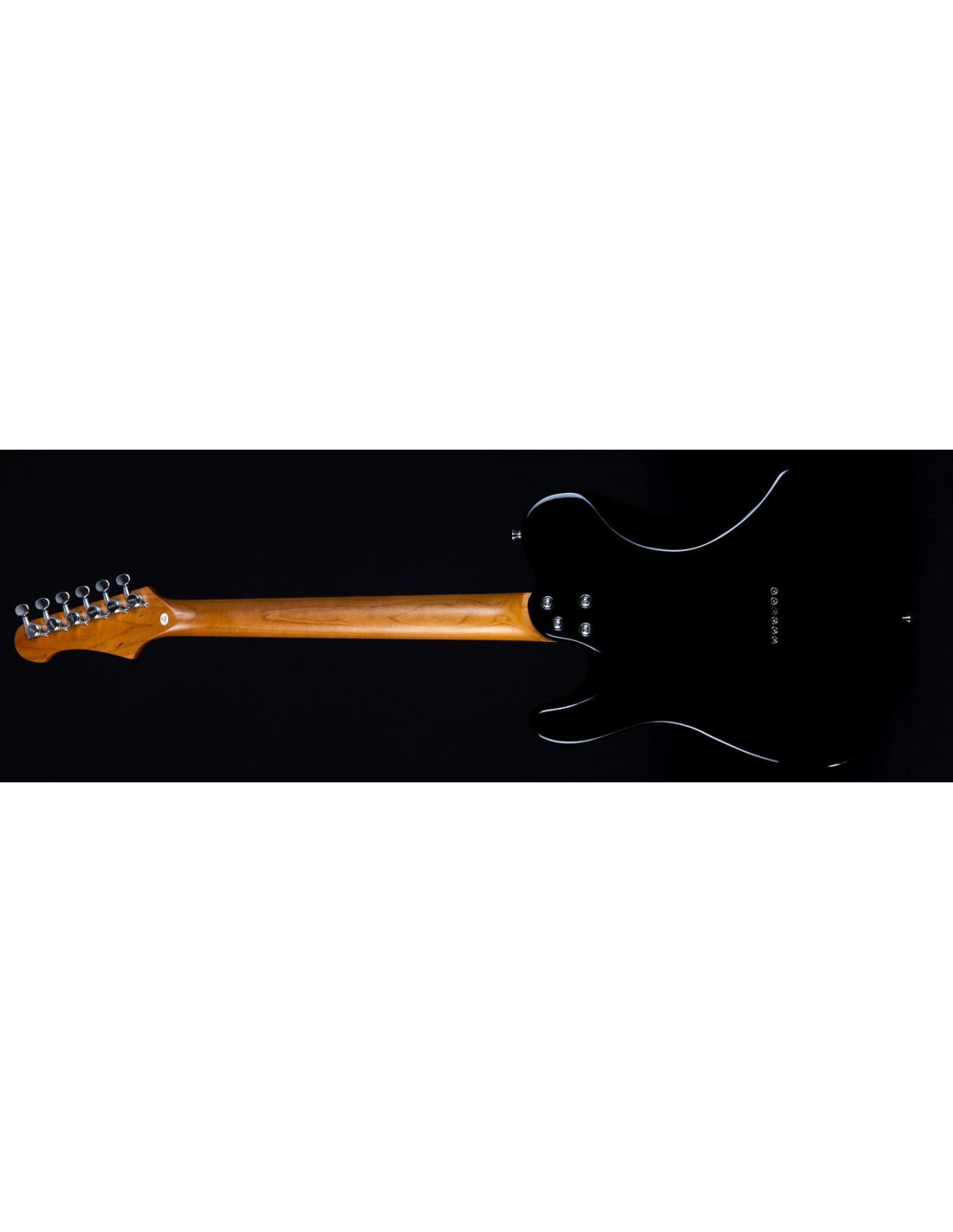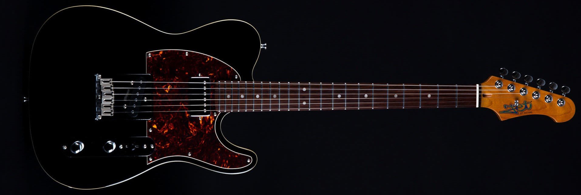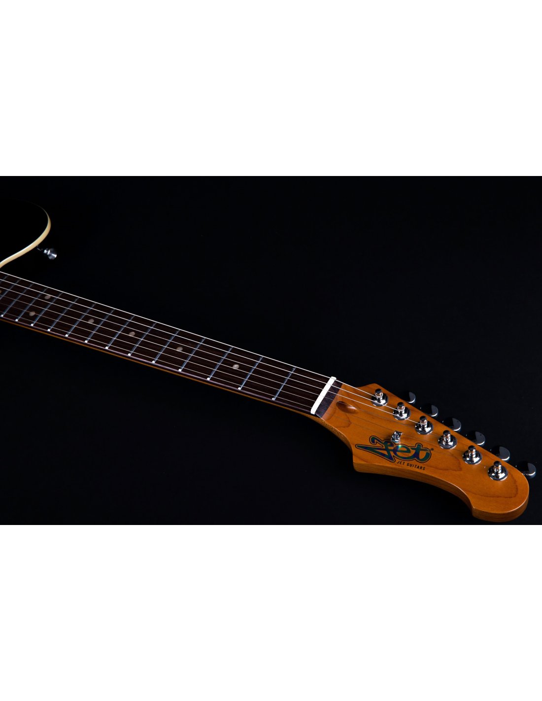 JET JT-350 BK R SH BLACK ROASTED MAPLE RW BOARD. Guitare électrique JET JT-350 BK R SH avec corps en Tilleul, manche en érable canadien avec profil en "C", touche en Palissandre à rayon de 9,5" avec 22 frettes, incrustations Dot en nacre et finition noire. L'électronique à configuration SH est équipée de micros simple bobinage avec aimant Alnico au chevalet et micro Humbucker Alnico au manche avec contrôles Master Volume, Master Tone et switch à 3 positions. Elle présente également un pont fixe, un trussrod à double action, des mécaniques à verrouillage et un matériel chromé.