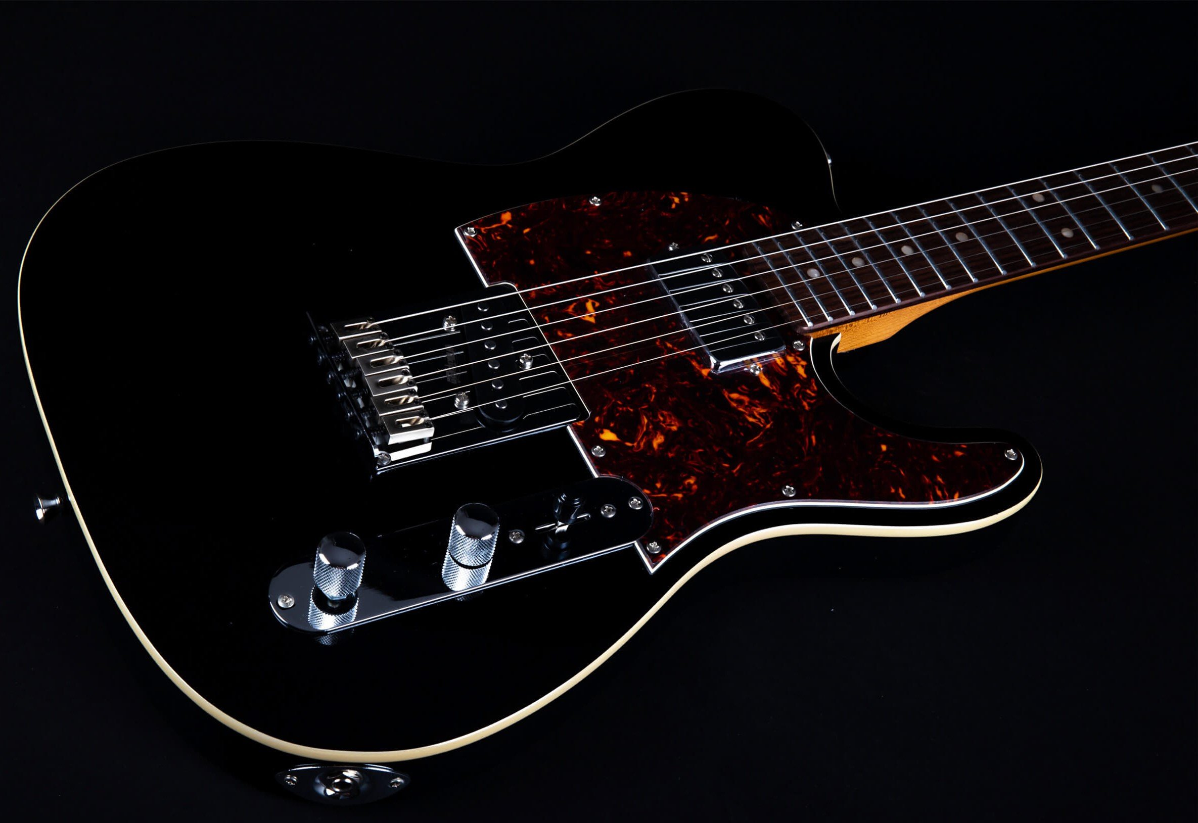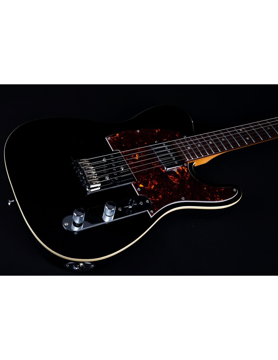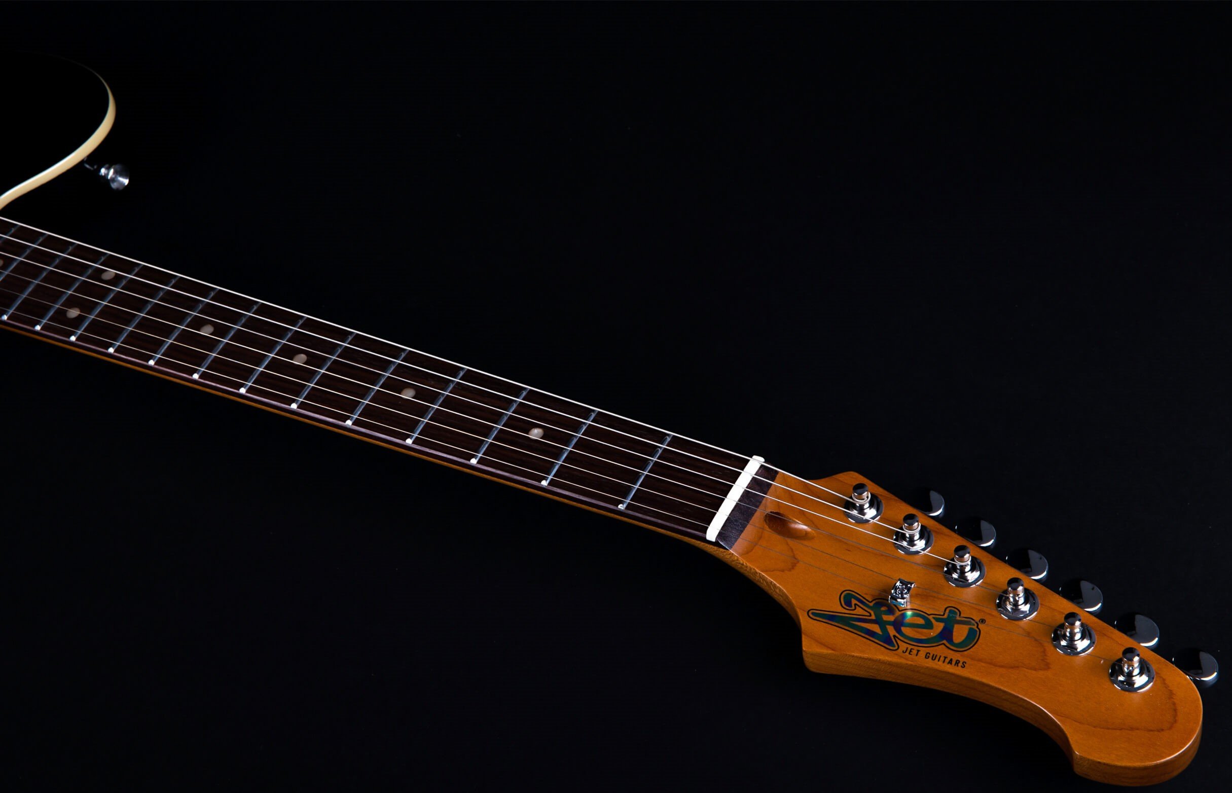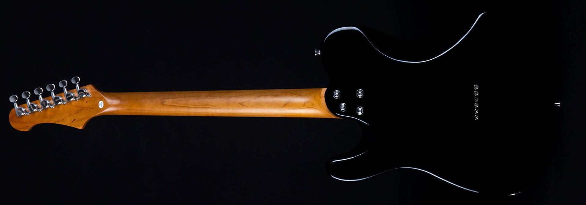 JET JT-350 BK R SH BLACK ROASTED MAPLE RW BOARD. Guitare électrique JET JT-350 BK R SH avec corps en Tilleul, manche en érable canadien avec profil en "C", touche en Palissandre à rayon de 9,5" avec 22 frettes, incrustations Dot en nacre et finition noire. L'électronique à configuration SH est équipée de micros simple bobinage avec aimant Alnico au chevalet et micro Humbucker Alnico au manche avec contrôles Master Volume, Master Tone et switch à 3 positions. Elle présente également un pont fixe, un trussrod à double action, des mécaniques à verrouillage et un matériel chromé.