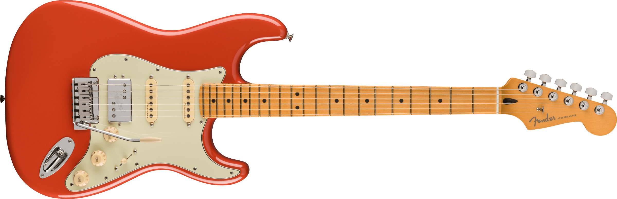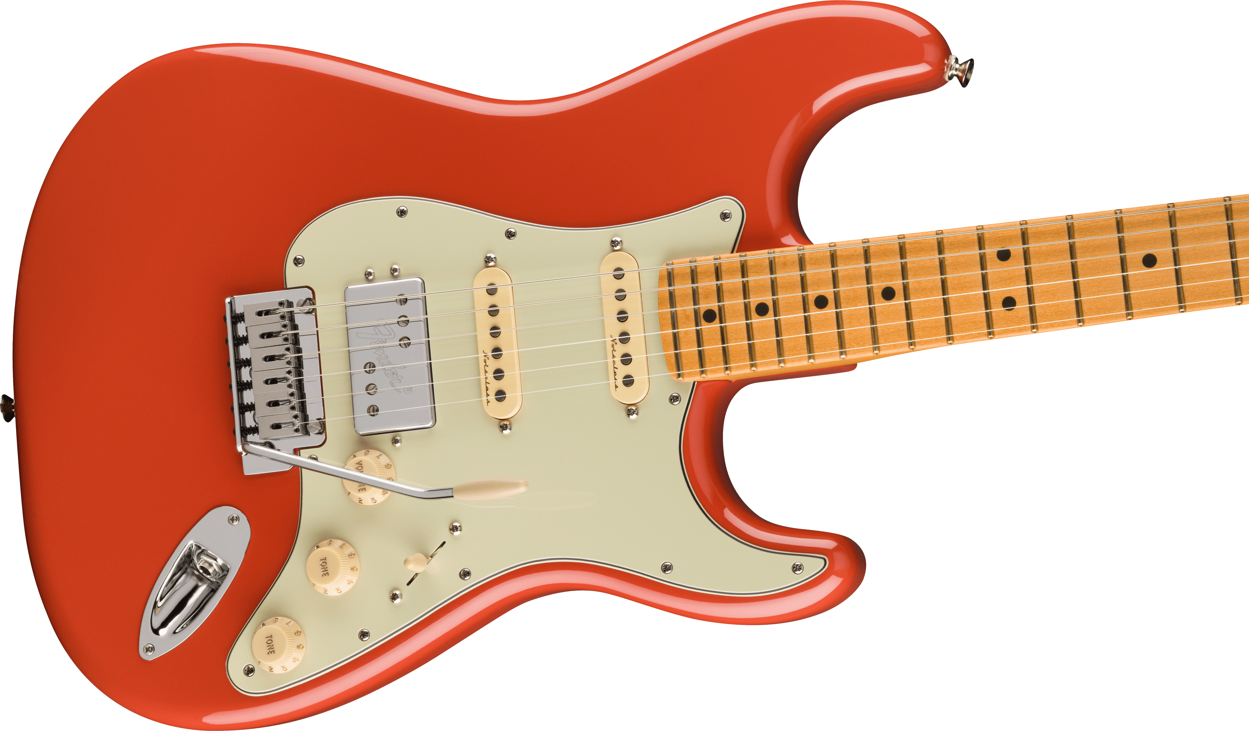 Guitare Électrique Fender Player Plus Stratocaster HSS, MN, couleur Fiesta Red. La Fender Player Plus Stratocaster HSS est une guitare électrique à 6 cordes. Elle présente un manche en Érable, profil Modern C, échelle 25 1/2”, rayon 12”, 22 frettes Medium Jumbo. Corps en Tilleul, avec plaque de protection tristrat Mint Green. L’électronique comprend un micro Fireball Humbucking au chevalet et 2 micros Player Plus Noiseless Single-Coil, avec contrôles de Volume/Volume/Tonalité avec push/pull sur la Tonalité 2 pour la fonction Split Coil du Humbucking et sélecteur à 5 positions. Matériel Nickel/Chrome. Pont vibrato à 2 pivots avec étoiles en Acier plié. Mécaniques moulées. Deluxe Gig-Bag inclus.