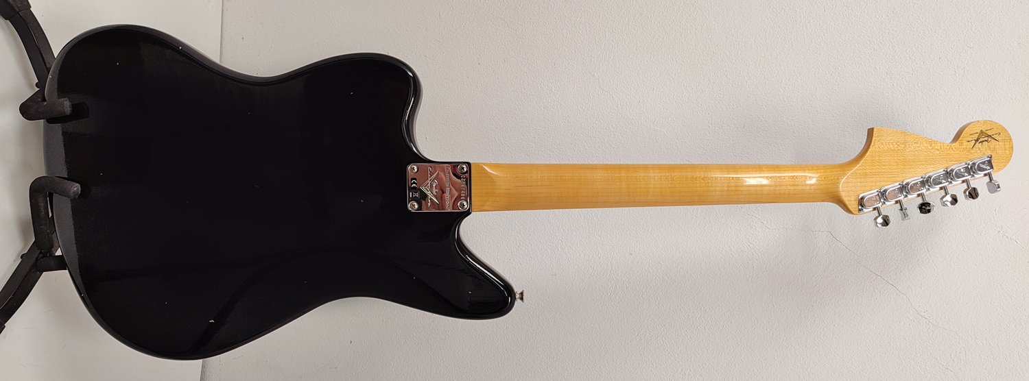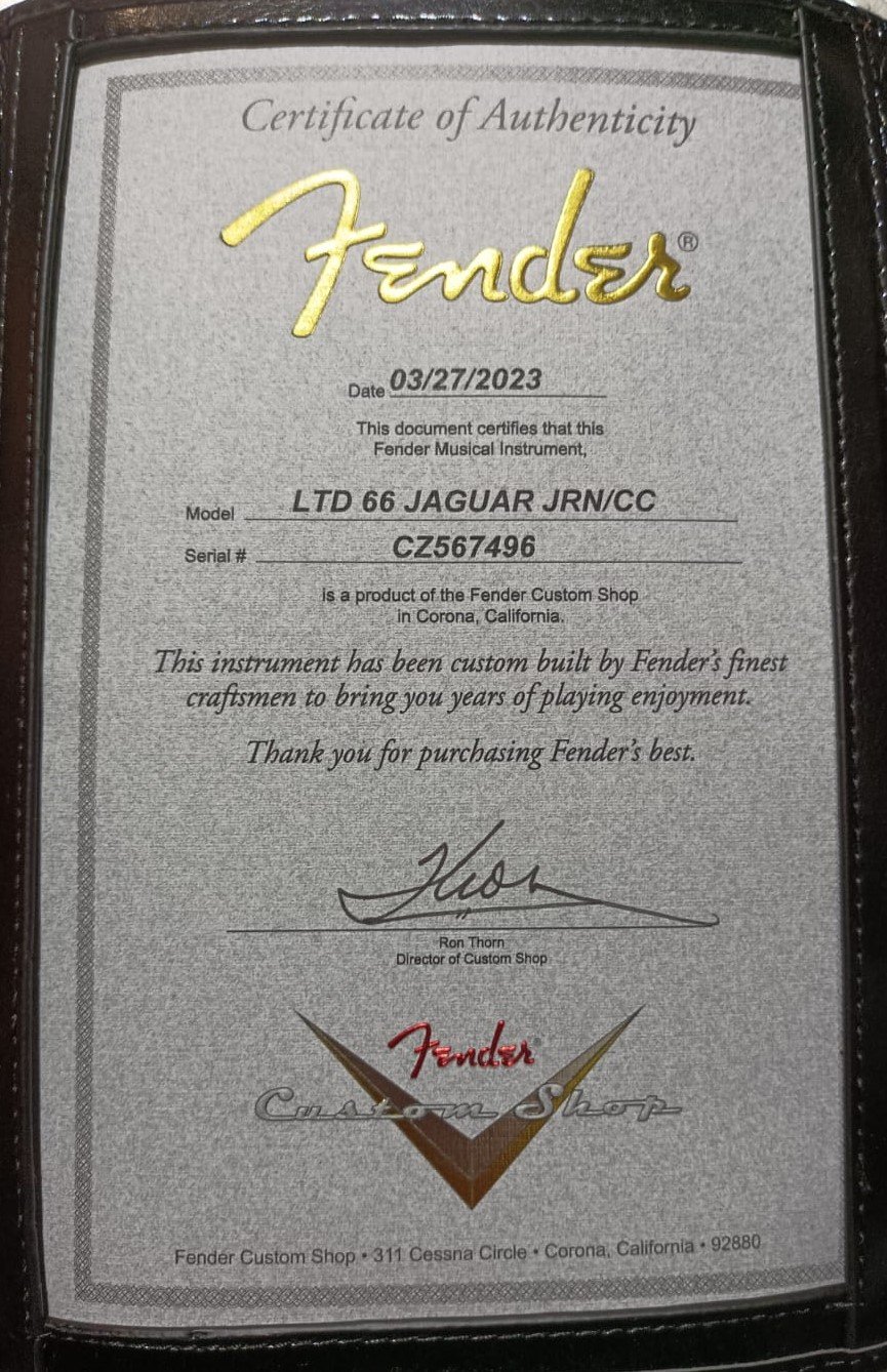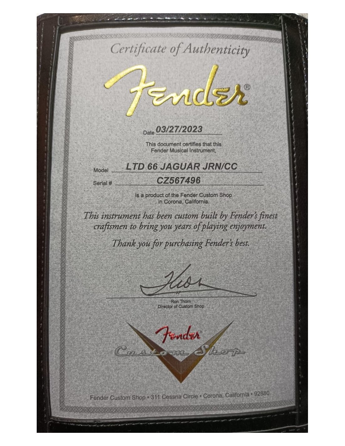 FENDER S23 LTD 66 JAGUAR JOURNEYMAN ABL est une guitare électrique Solid Body de la série Fender Custom Shop Limited Edition S23 '66 Jaguar Journeyman avec un corps en 2 pièces en tilleul sélectionné, un manche en érable 5/4 Quartersawn profil Oval C '60 Shape, un touche en palissandre sélectionné AAA à rayon 9,5" avec 22 frettes Medium Jumbo et des incrustations Dots en nacre, un sillet en os, un matériel chromé relic, des mécaniques Fender Vintage-Style F et un pont Fender Custom Shop Vintage Floating Tremolo. L'électronique en configuration SS se compose de 2 micros Fender Custom Shop Single-Coil CS Vintage Jaguar enroulés à la main et avec double aimant, avec des contrôles de volume, de tonalité, un sélecteur de micro à 3 voies, un circuit Lead via un interrupteur à glissière (en bas) pour le volume et la tonalité, un circuit Rhythm via un interrupteur à glissière (en haut) pour activer le volume et la tonalité du micro au manche, un sélecteur de micro via un interrupteur à glissière 3 voies pour le circuit Lead et un sélecteur Aux pour activer l'interrupteur à glissière On/Off à 2 voies pour la commutation Lead et Rhythm. Comprend un étui Fender Deluxe.