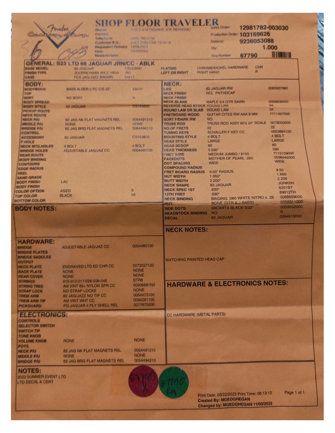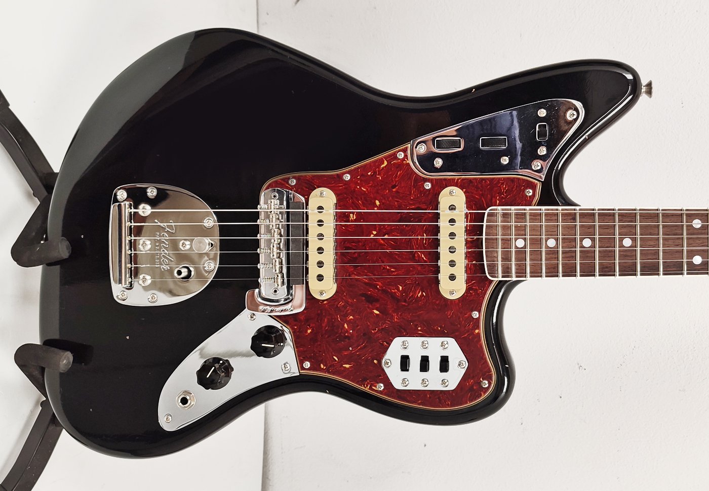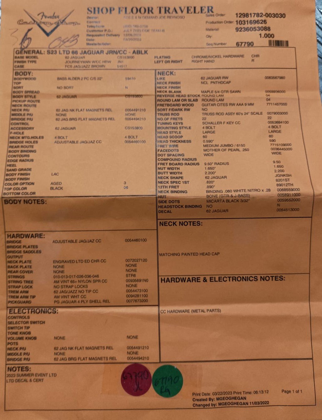 FENDER S23 LTD 66 JAGUAR JOURNEYMAN ABL est une guitare électrique Solid Body de la série Fender Custom Shop Limited Edition S23 '66 Jaguar Journeyman avec un corps en 2 pièces en tilleul sélectionné, un manche en érable 5/4 Quartersawn profil Oval C '60 Shape, un touche en palissandre sélectionné AAA à rayon 9,5" avec 22 frettes Medium Jumbo et des incrustations Dots en nacre, un sillet en os, un matériel chromé relic, des mécaniques Fender Vintage-Style F et un pont Fender Custom Shop Vintage Floating Tremolo. L'électronique en configuration SS se compose de 2 micros Fender Custom Shop Single-Coil CS Vintage Jaguar enroulés à la main et avec double aimant, avec des contrôles de volume, de tonalité, un sélecteur de micro à 3 voies, un circuit Lead via un interrupteur à glissière (en bas) pour le volume et la tonalité, un circuit Rhythm via un interrupteur à glissière (en haut) pour activer le volume et la tonalité du micro au manche, un sélecteur de micro via un interrupteur à glissière 3 voies pour le circuit Lead et un sélecteur Aux pour activer l'interrupteur à glissière On/Off à 2 voies pour la commutation Lead et Rhythm. Comprend un étui Fender Deluxe.