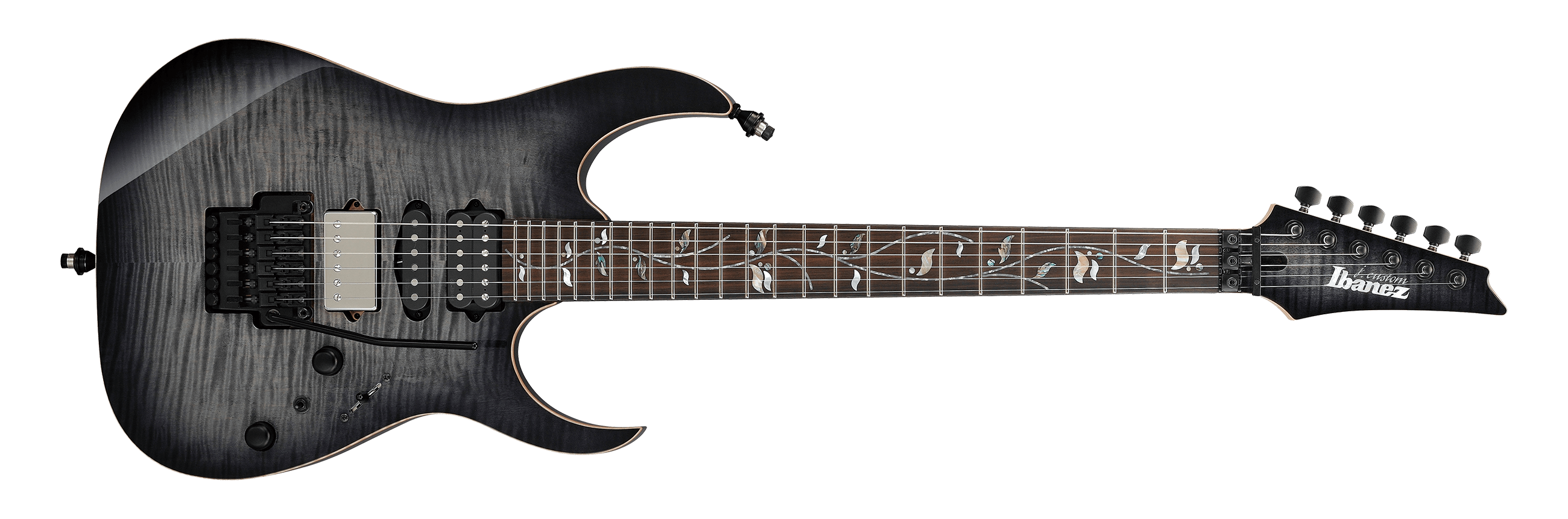 IBANEZ RG8870-BRE est une guitare électrique Solid body de la ligne Ibanez Prestige avec un corps en érable Roasted AAA, un manche en 5 pièces Érable/Wengé avec un profil Super Wizard HP, un touche en ébène Macassar avec 24 frettes jumbo avec traitement Prestige et des incrustations "Arbre de la vie" en abalone, un sillet de tête Prestige locking nut, un matériel noir satiné, des mécaniques moulées et un pont Lo-Pro Edge Tremolo avec bras Ultralite. L'électronique en configuration HSH se compose de 2 micros Humbucker Di Marzio TheTone Zone au pont et DiMarzio PAF 36th Anniversary au manche et un Single Coil Di Marzio True Velvet au centre, avec des contrôles de Volume, Ton, sélecteur de micros à 3 voies et Alter switch.