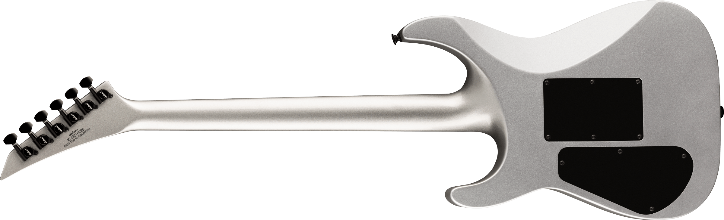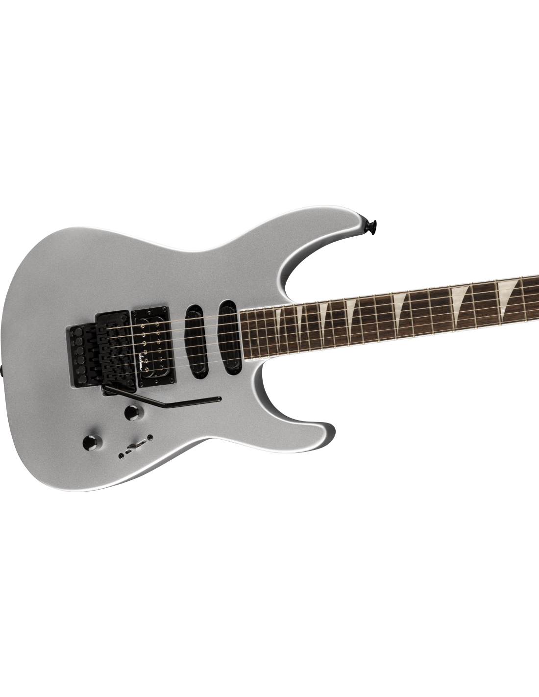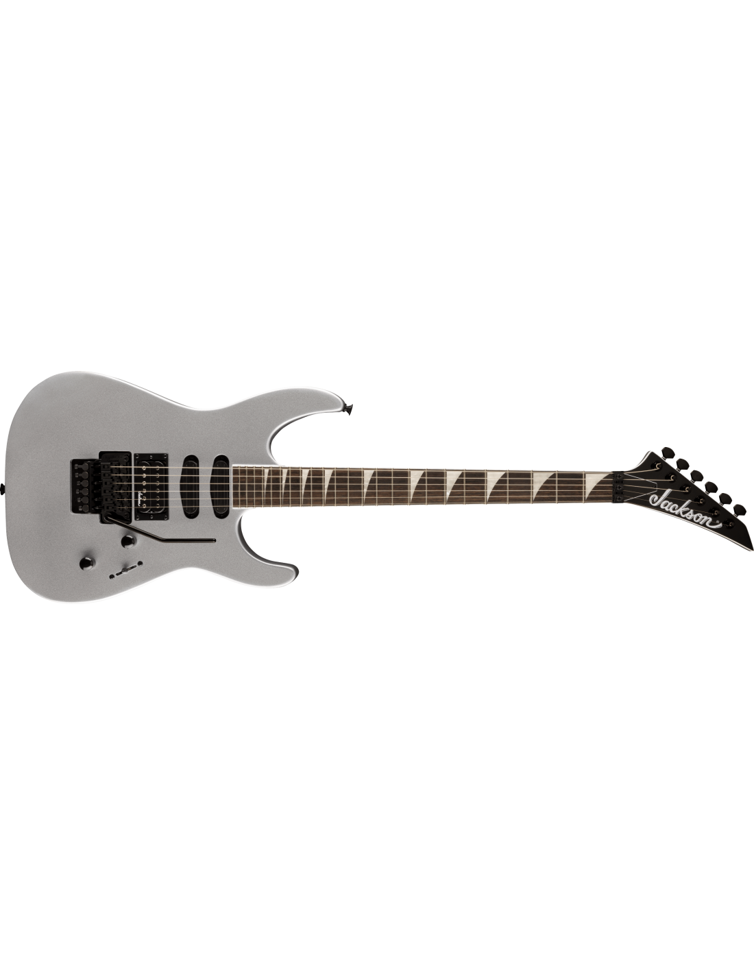 JACKSON SL3X DX QUICKSILVER est une guitare électrique Solid Body de la série Jackson X Series Soloist SL3X DX avec un corps en peuplier, un manche en érable Neck-Through-Body avec renfort en graphite et Scarf Joint, un doigté en laurier à rayon composite 12"-16" avec 24 frettes Jumbo et des incrustations en forme de nageoire de requin en nacre, un sillet Floyd Rose Special Locking, un matériel chromé noir, des mécaniques moulées scellées et un pont Floyd Rose Special Double-Locking Tremolo. L'électronique se compose d'un micro Duncan Designed HB-103B Humbucker à haut rendement au pont et de 2 micros Duncan Designed HR-101 Hot Rails Humbucker au centre et au manche, avec des contrôles de volume, de tonalité et un sélecteur de micro à 5 voies.