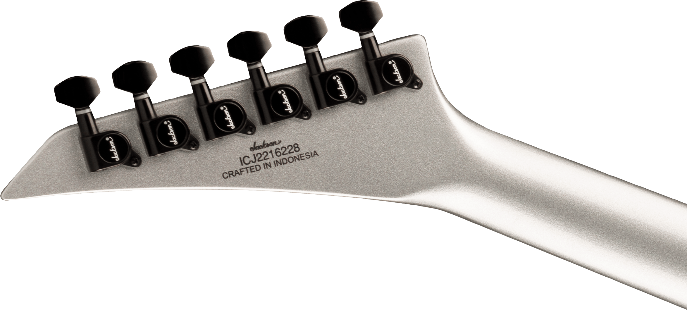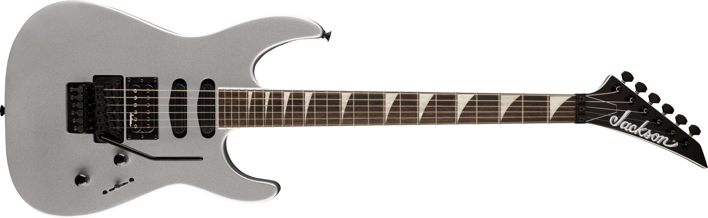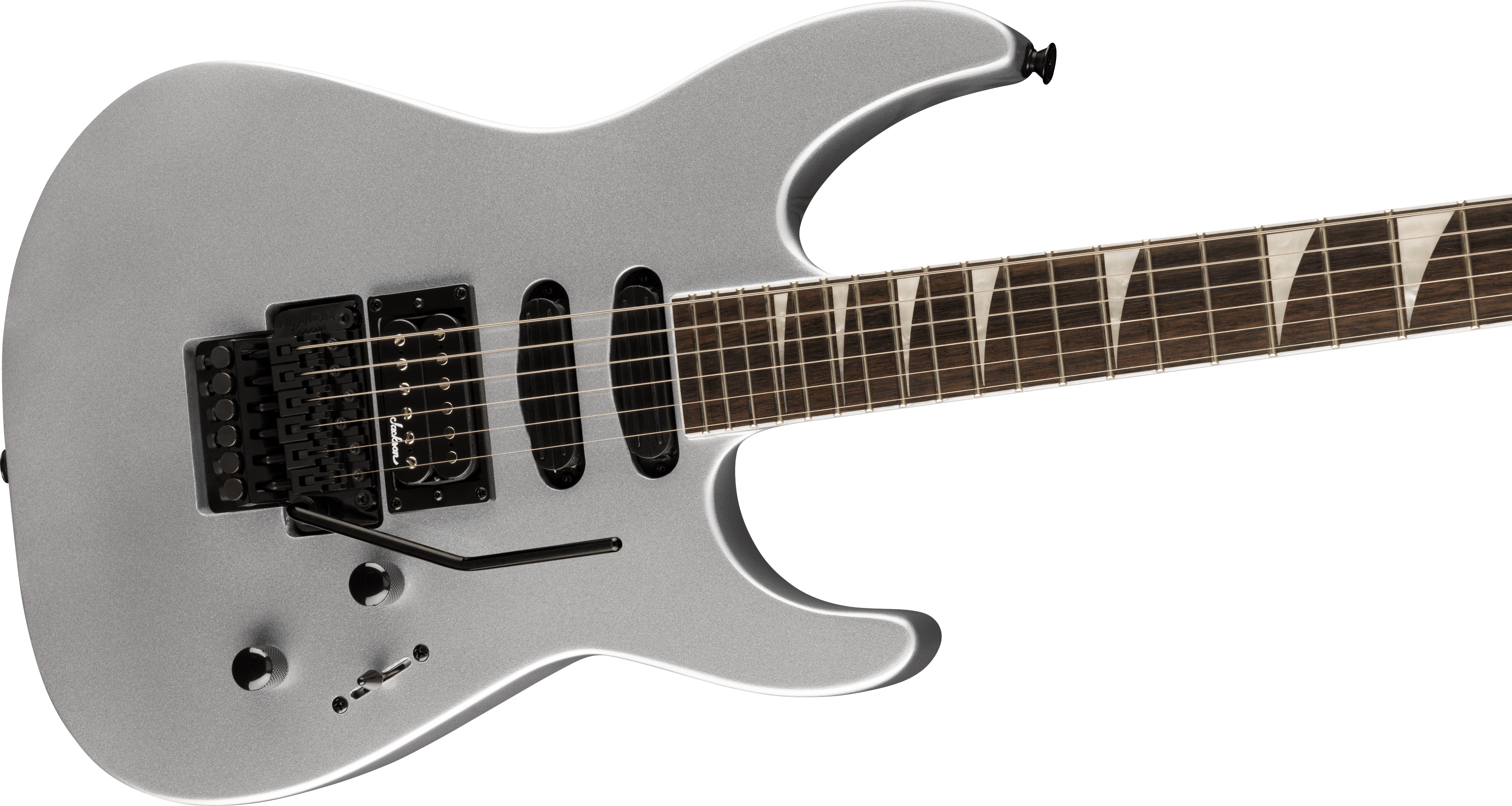 JACKSON SL3X DX QUICKSILVER est une guitare électrique Solid Body de la série Jackson X Series Soloist SL3X DX avec un corps en peuplier, un manche en érable Neck-Through-Body avec renfort en graphite et Scarf Joint, un doigté en laurier à rayon composite 12"-16" avec 24 frettes Jumbo et des incrustations en forme de nageoire de requin en nacre, un sillet Floyd Rose Special Locking, un matériel chromé noir, des mécaniques moulées scellées et un pont Floyd Rose Special Double-Locking Tremolo. L'électronique se compose d'un micro Duncan Designed HB-103B Humbucker à haut rendement au pont et de 2 micros Duncan Designed HR-101 Hot Rails Humbucker au centre et au manche, avec des contrôles de volume, de tonalité et un sélecteur de micro à 5 voies.