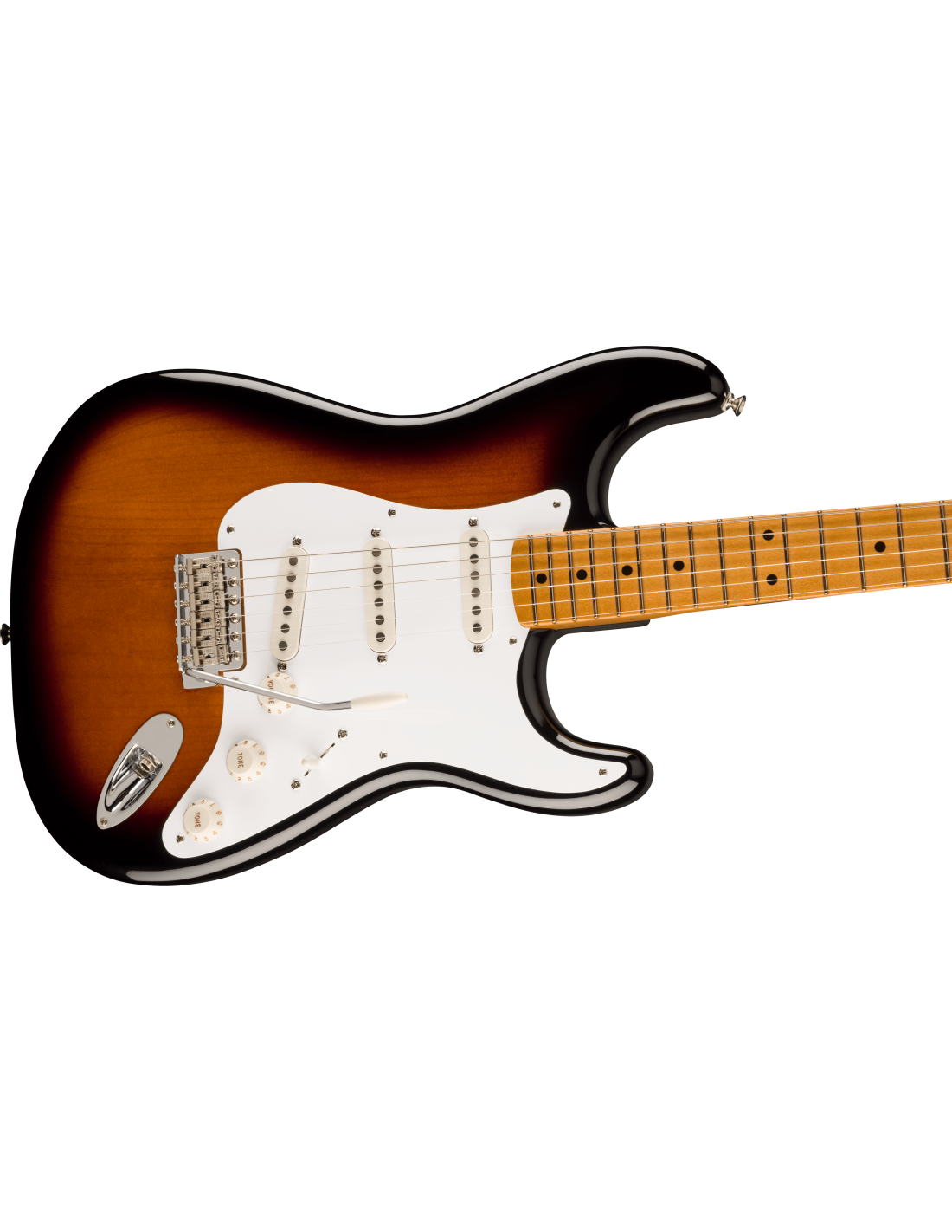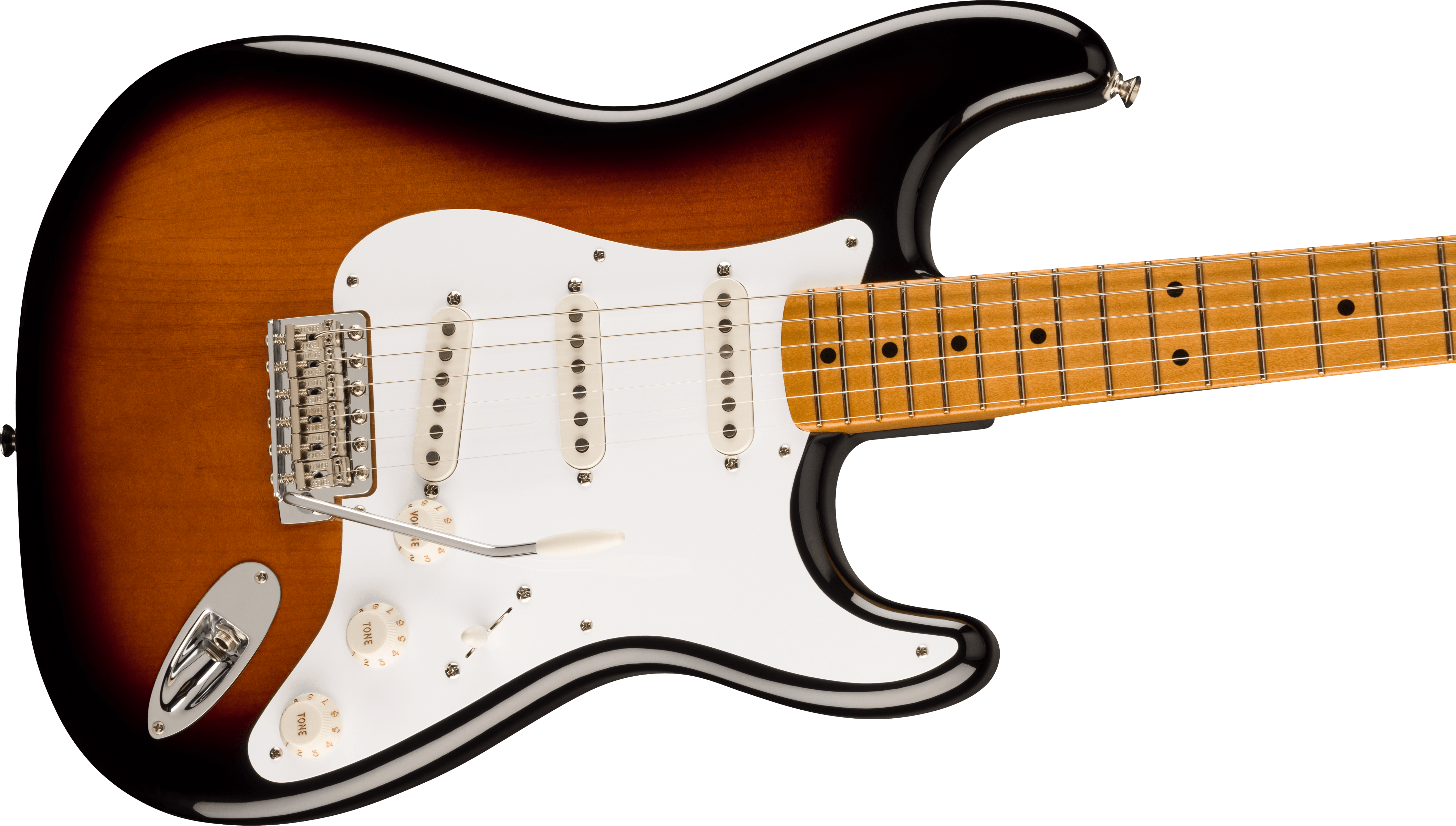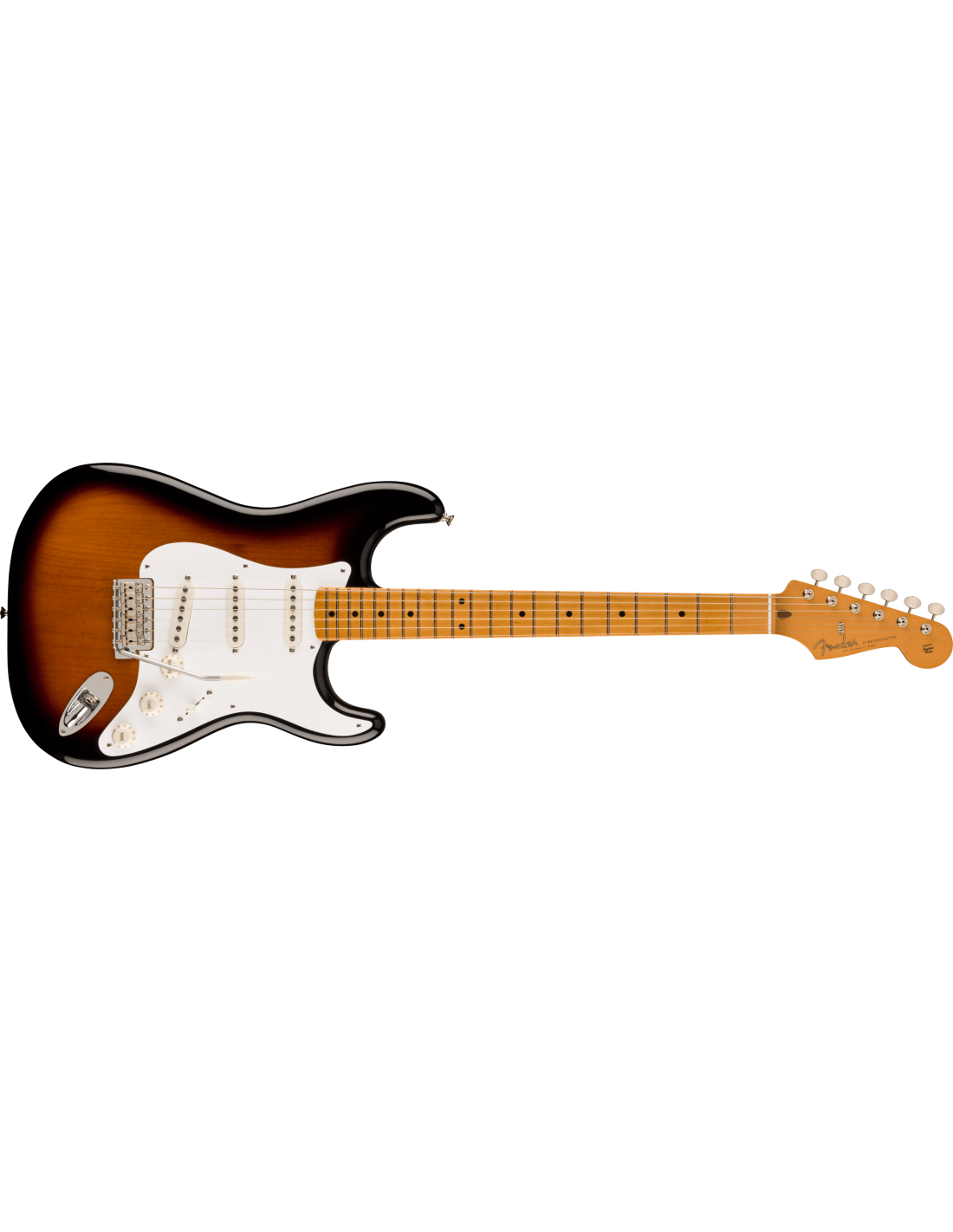FENDER VINTERA II 50S STRAT MN 2TS est une guitare électrique Solid Body de la série Fender Vintera II 50s Stratocaster fabriquée au Mexique avec un corps en tilleul, un manche en érable au profil Mid '50s Soft "V" Shape, un doigté en érable à rayon 7,25" avec 21 frettes Vintage Tall et des incrustations Black Dots, un sillet en os, un matériel chromé, des mécaniques Fender American Vintage Style et un pont tremolo synchronisé 6-sellettes Vintage-Style avec des sellettes en acier. L'électronique à configuration SSS se compose de 3 micros Vintage-Style '50s Single-Coil Strat avec des contrôles de volume, de tonalité et un sélecteur de micros à 5 voies. Inclut un étui Fender Deluxe Gig Bag