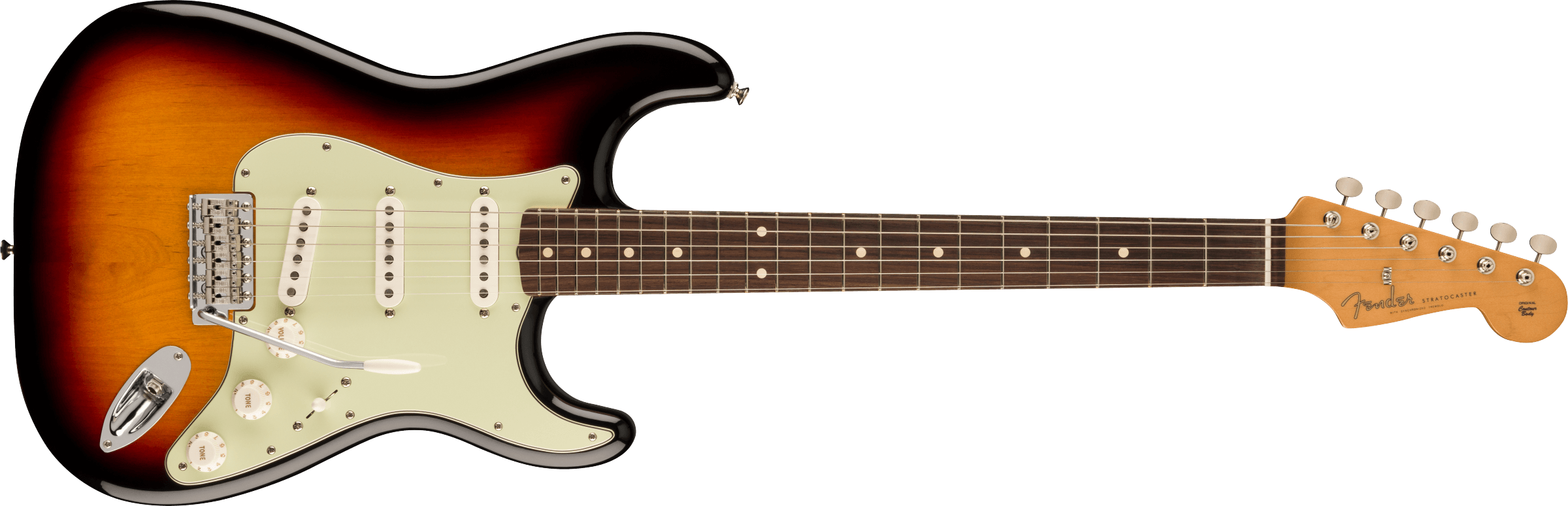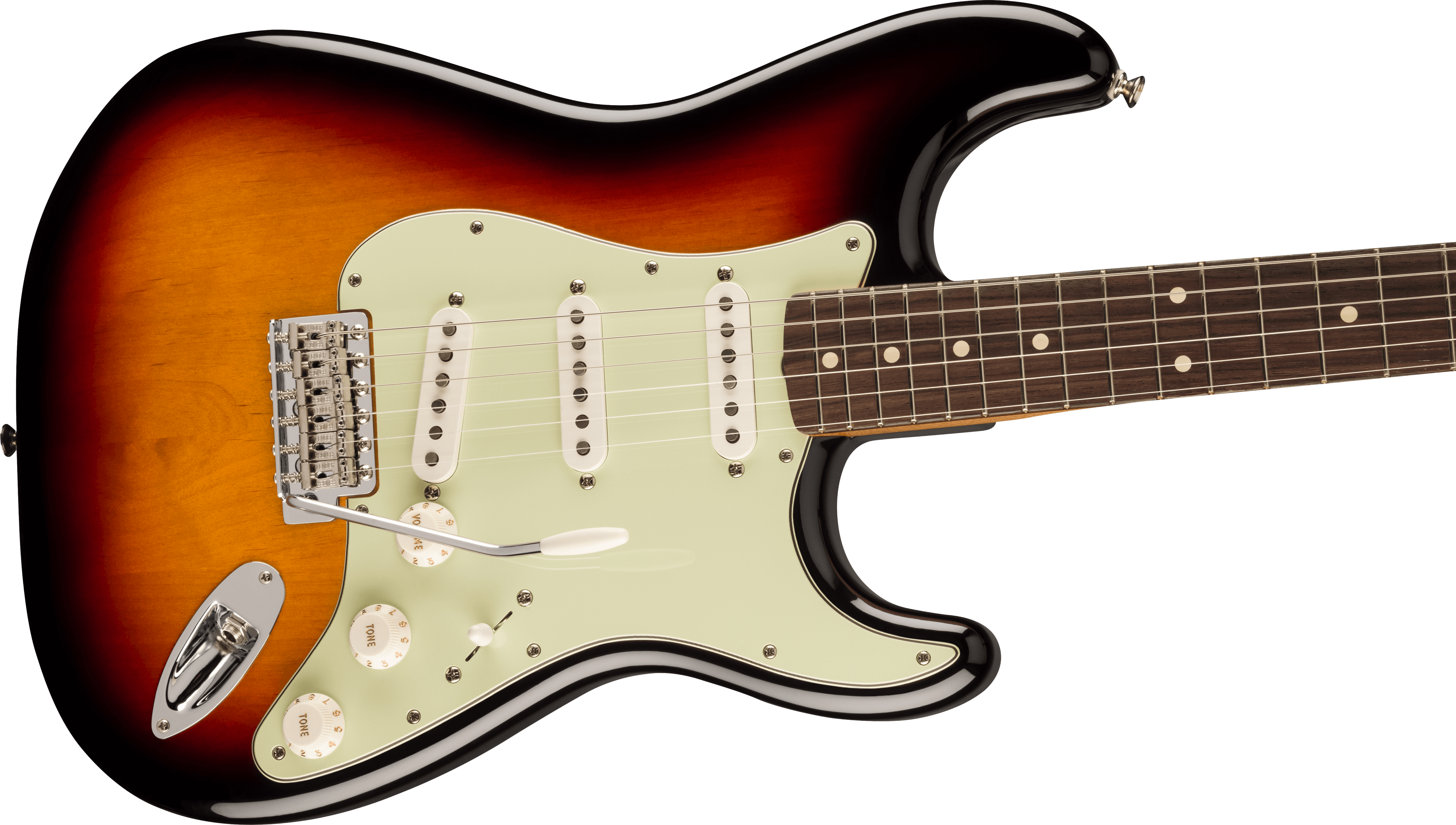 FENDER VINTERA II 60S STRAT RW 3TS est une guitare électrique Solid Body de la série Fender Vintera II 60s Stratocaster fabriquée au Mexique avec un corps en tilleul, un manche en érable profil '60 C Shape, un doigté en palissandre à rayon 7,25" avec 21 frettes Vintage Tall et des incrustations white Dots, un sillet en os, un matériel chromé, des mécaniques Fender American Vintage Style et un pont tremolo synchronisé 6-sellettes Vintage-Style avec des selles en acier. L'électronique en configuration SSS se compose de 3 micros Vintage-Style '60s Single-Coil Strat avec des contrôles de volume, de tonalité et un sélecteur de micro à 5 voies. Inclut un étui Fender Deluxe Gig Bag