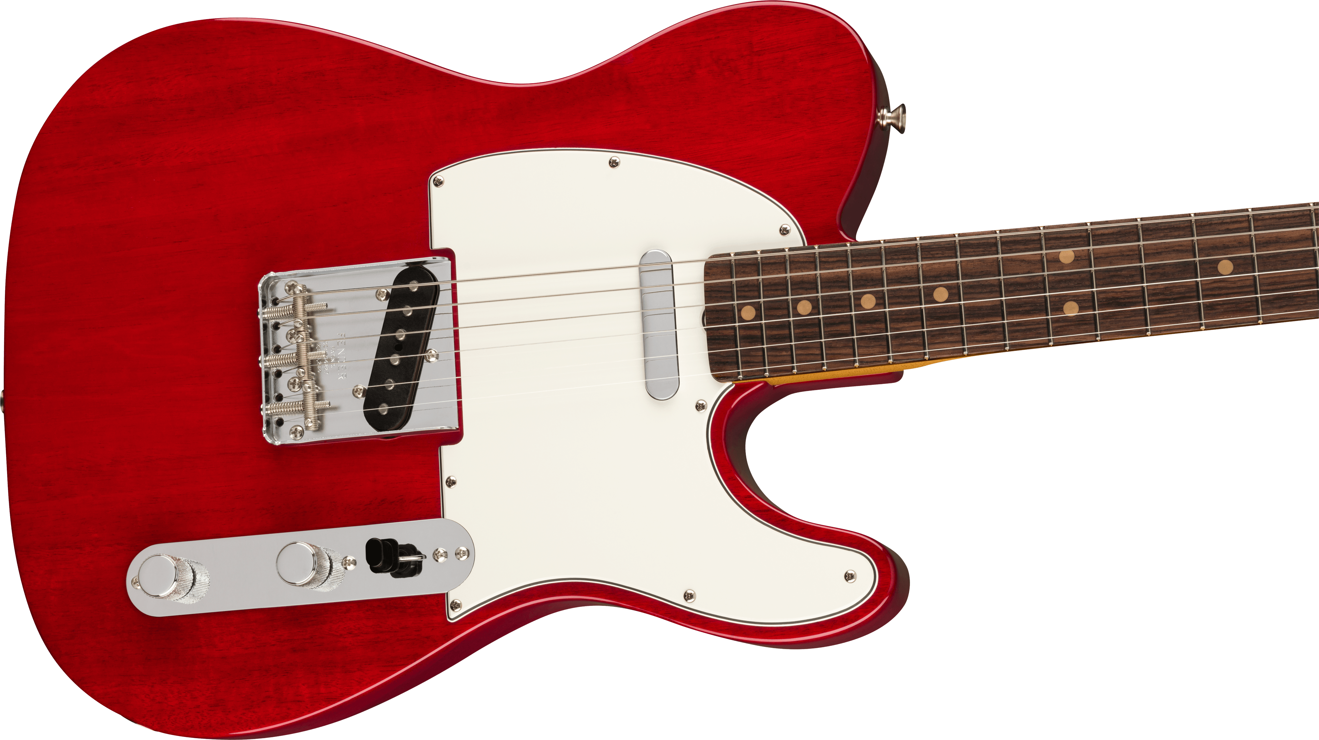 FENDER AM VINTAGE II 63 TELE CRIMSON RED TRASP. est une guitare électrique solid body de la série Fender American Vintage II avec un corps en aulne, un manche en érable canadien profil U '63 Shape, un doigté en palissandre laminé avec des profils arrondis à rayon 7,25" avec 21 frettes Vintage Tall et des incrustations Dot Clay, un sillet en os, du matériel chromé, des mécaniques Fender Deluxe Pure Vintage et un pont Tele Pure Vintage à 3 sellette avec des sellettes filetées en acier. L'électronique se compose de 2 micros Pure Vintage '63 Single-Coil Tele avec contrôle du volume, tonalité et sélecteur de micro à 3 voies. Comprend un étui Fender Deluxe.