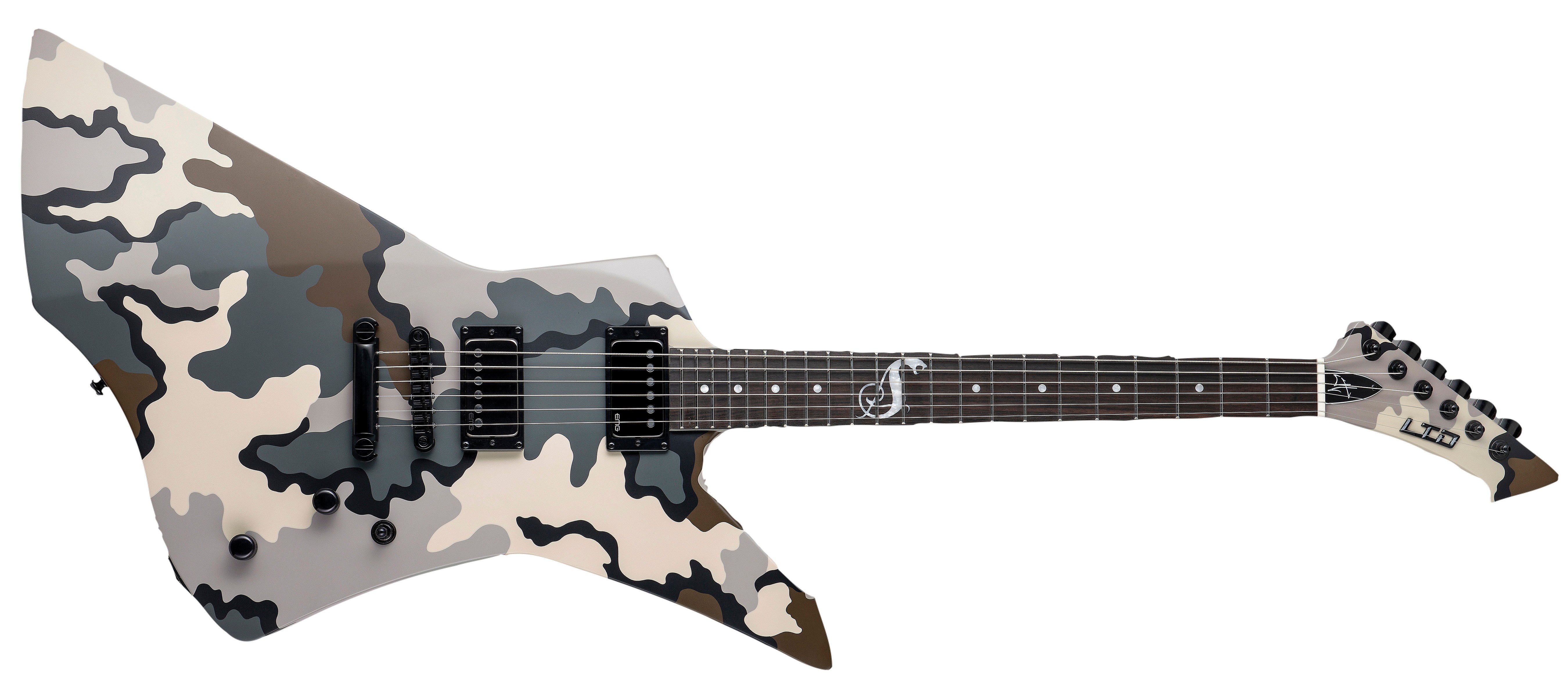 Construction set-neck - Échelle 24,75'' - Corps en acajou - Manche en acajou 3 pièces avec profil "Thin U" - Touche en ébène Macassar avec radius de 14'' - 22 frettes extra jumbo - Sillet de 42 mm - Matériel noir - Pont Tonepros Locking TOM & Chevalet - Mécaniques LTD Locking - Pickup EMG JH ''HET'' SET - Cordes D'Addario XL110 (.010/.013/.017/.026/.036/.046) - Étui Form Fit Snakebyte Camo inclus