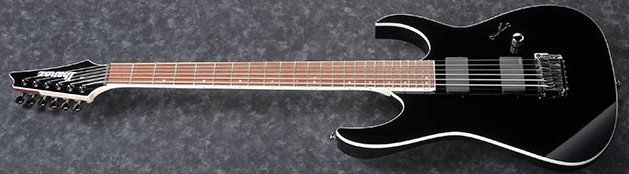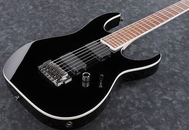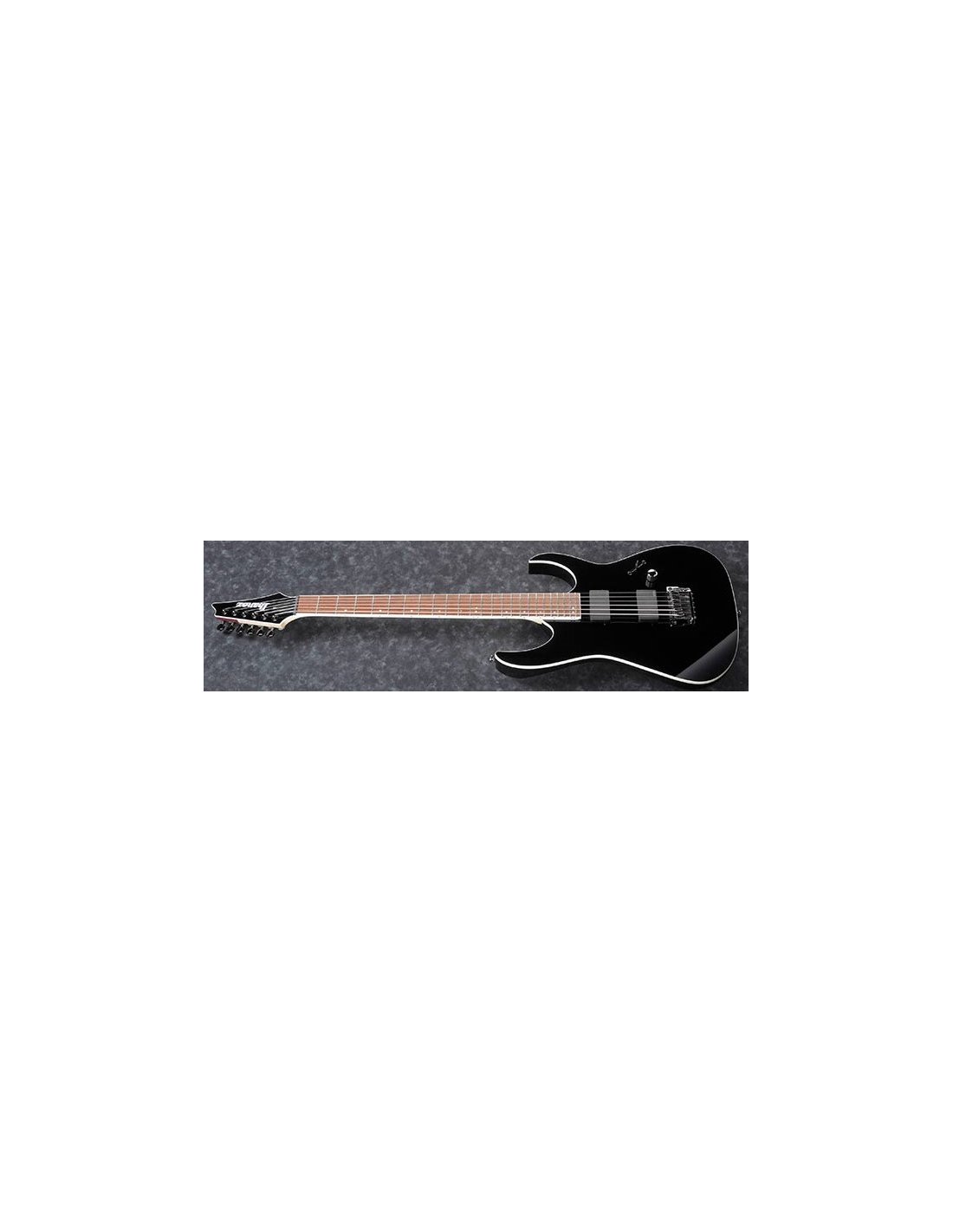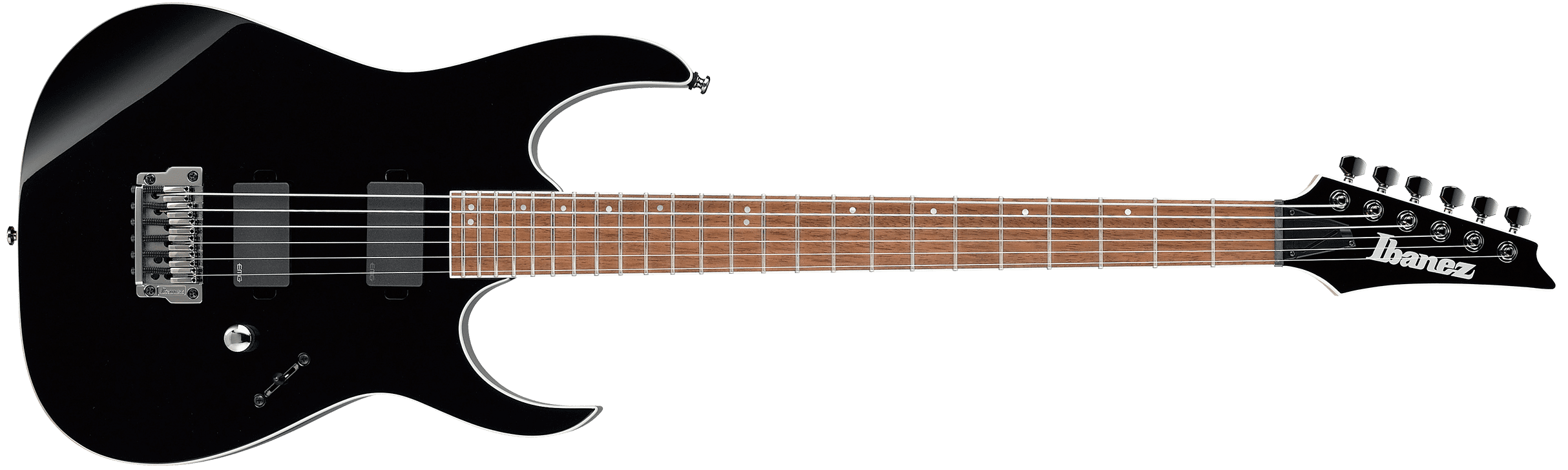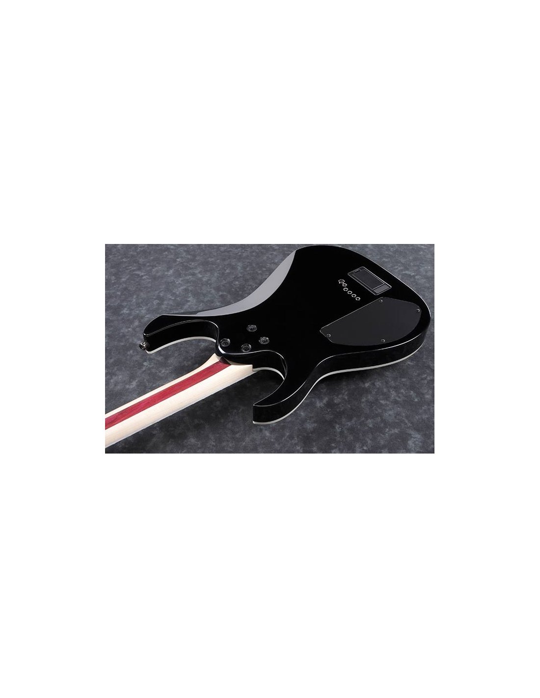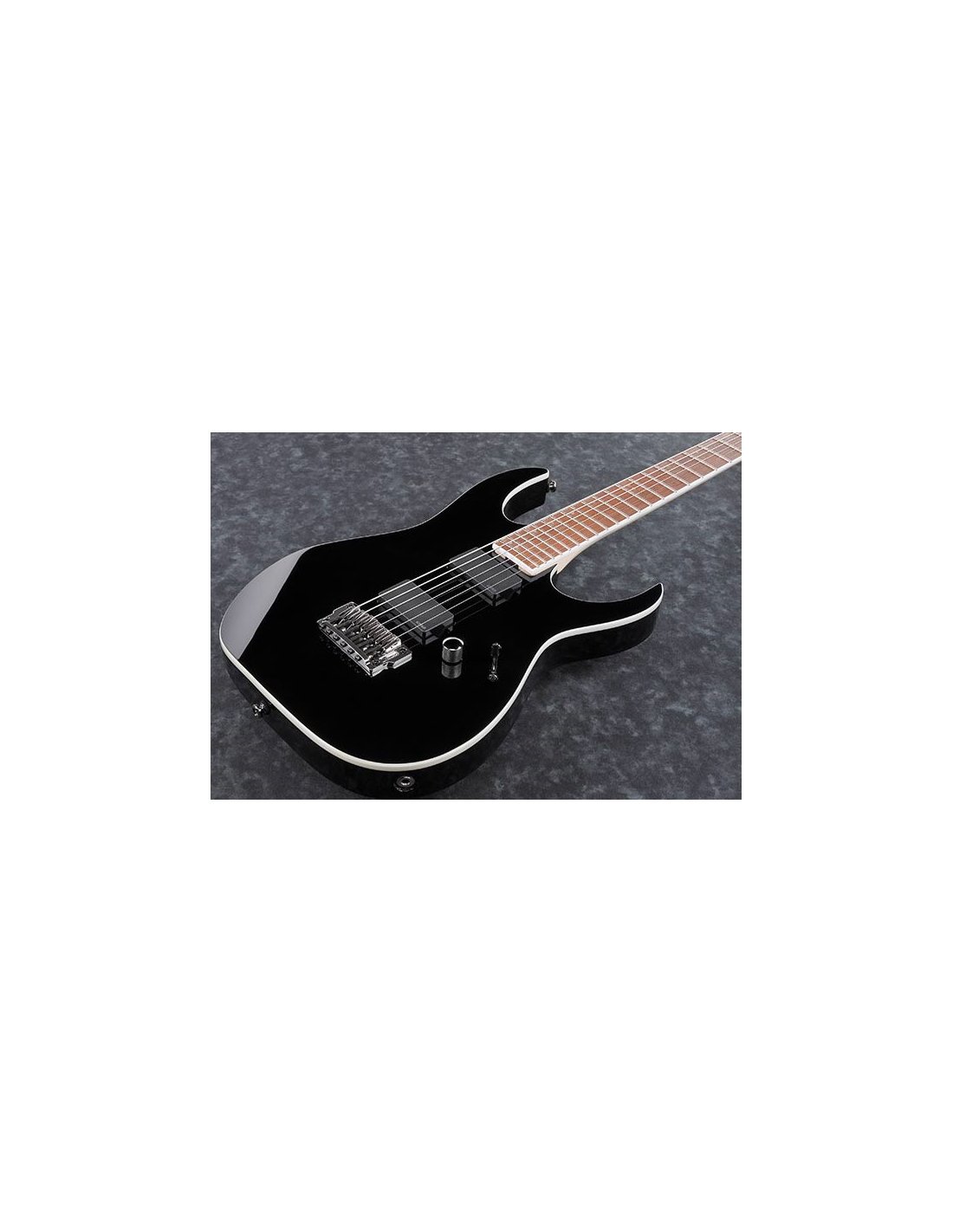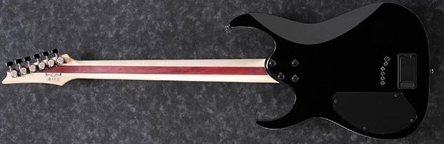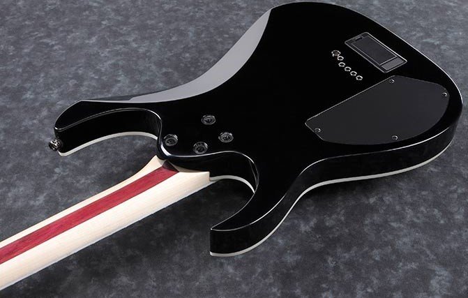IBANEZ RGIB21-BK est une guitare électrique solid body baritone, modèle Ibanez RG Standard IB21, avec un corps en Nyato, un manche en Acajou/Bubinga 3 pièces à profil Nitro Baritone, un doigté en Palissandre à rayon 16" avec 24 frettes Jumbo et des incrustations White dot inlay Off-set avec des points latéraux Luminescents, un sillet en PPS R400 de 45 mm, un matériel Noir, des mécaniques Gotoh MG-T locking et un pont fixe Gibraltar Standard II bridge. L'électronique active à configuration HH, consiste en 1 pickup Humbucker EMG 81 Active/Céramique au pont et 1 EMG 60 Active/Céramique au manche avec contrôle Master Volume et sélecteur de pickup à 3 voies.