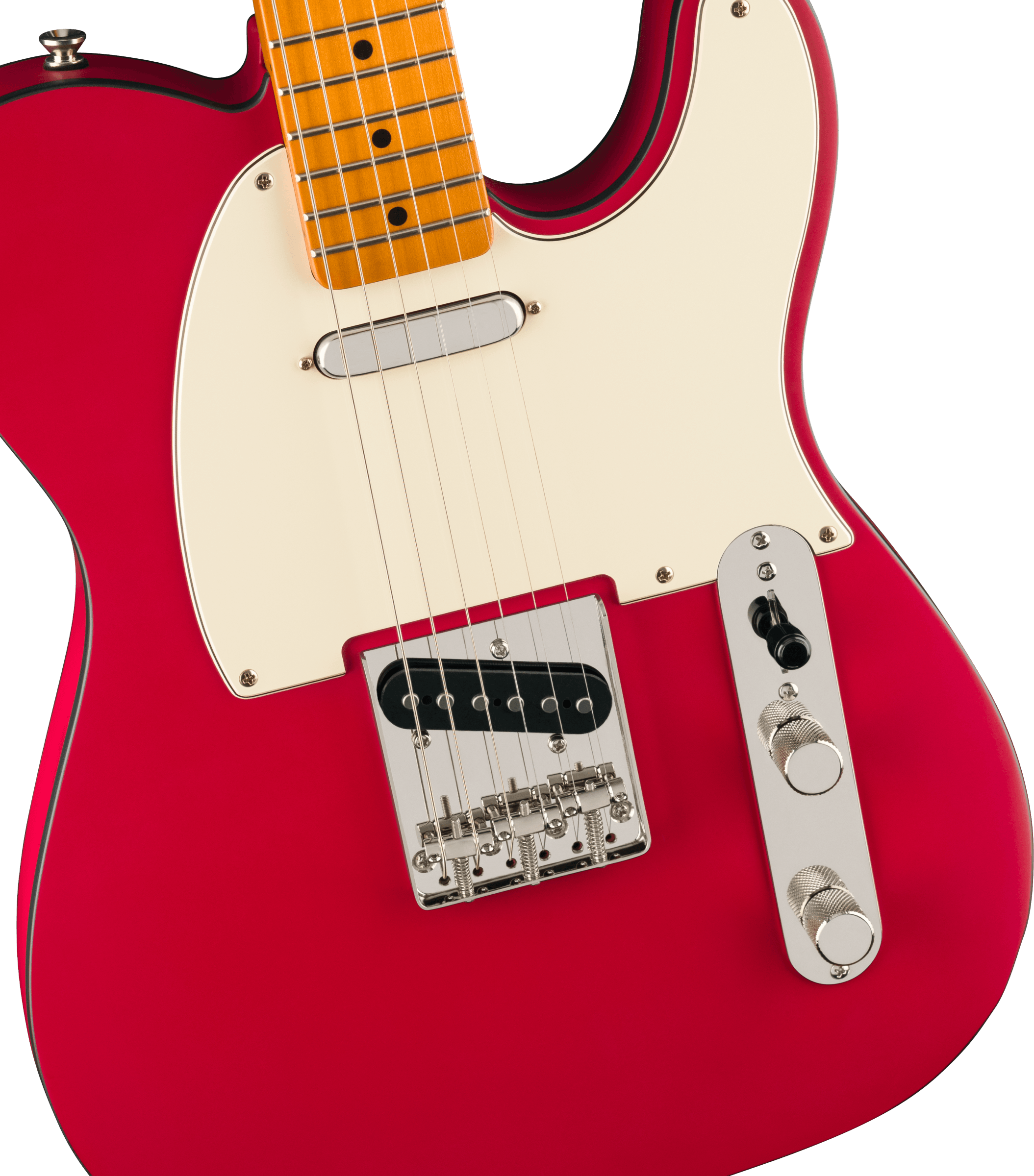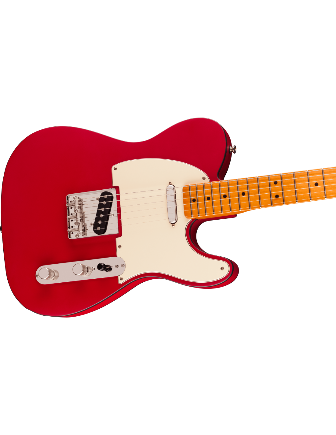 SQUIER LTD CV TELE CUSTOM 60S SATIN DAKOTA RED est une guitare électrique solid body, modèle Limited Edition Classic Vibe '60s Custom Telecaster, avec un corps en peuplier et une finition Satin Urethane, un manche en érable à profil "C" shape, un fingerboard en érable à rayon 9,5" avec 21 frettes Narrow Tall et des incrustations Black Dot avec des points latéraux noirs, un pickguard 3-Ply Parchment, un Truss Rod Standard Head Adjust, un sillet en os synthétique, un matériel nickelé, des mécaniques Vintage Style, un abaisse-cordes Dual Wing et un pont Strings-Through-Body Tele à 3 sellette. L'électronique à configuration SS consiste en 2 micros Fender Designed Alnico Single-Coil avec un couvre-micro nickelé au pont et noir au manche, des contrôles Master Volume, Master Tone et un sélecteur de micro à 3 voies.