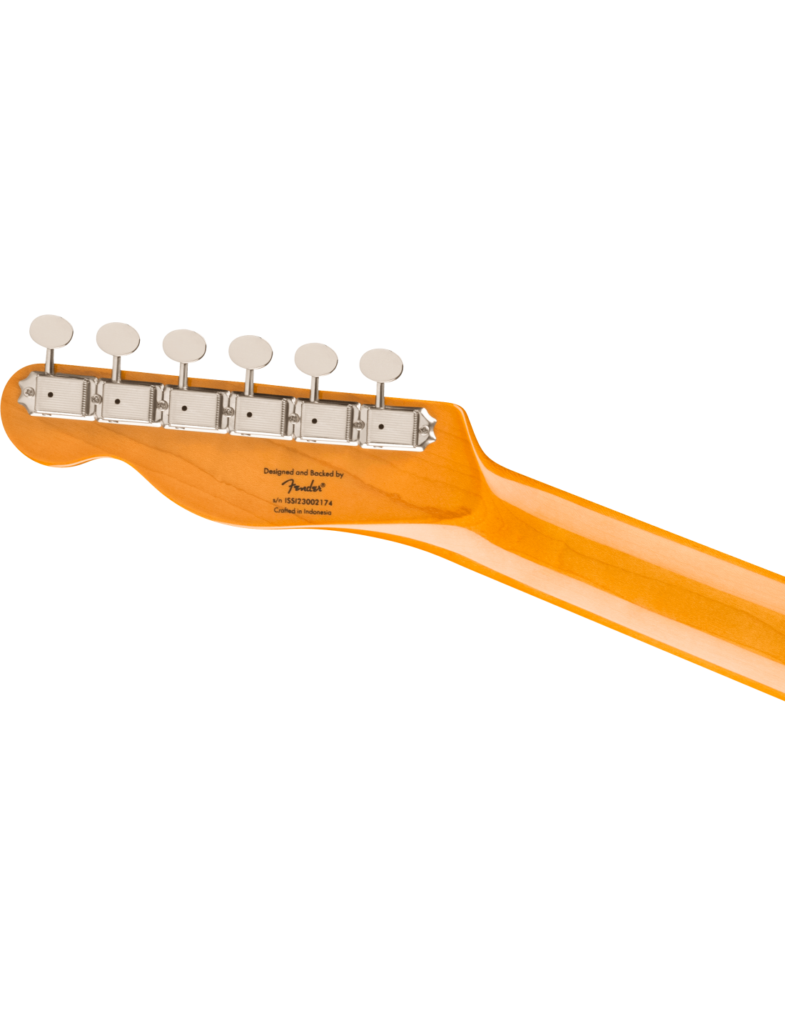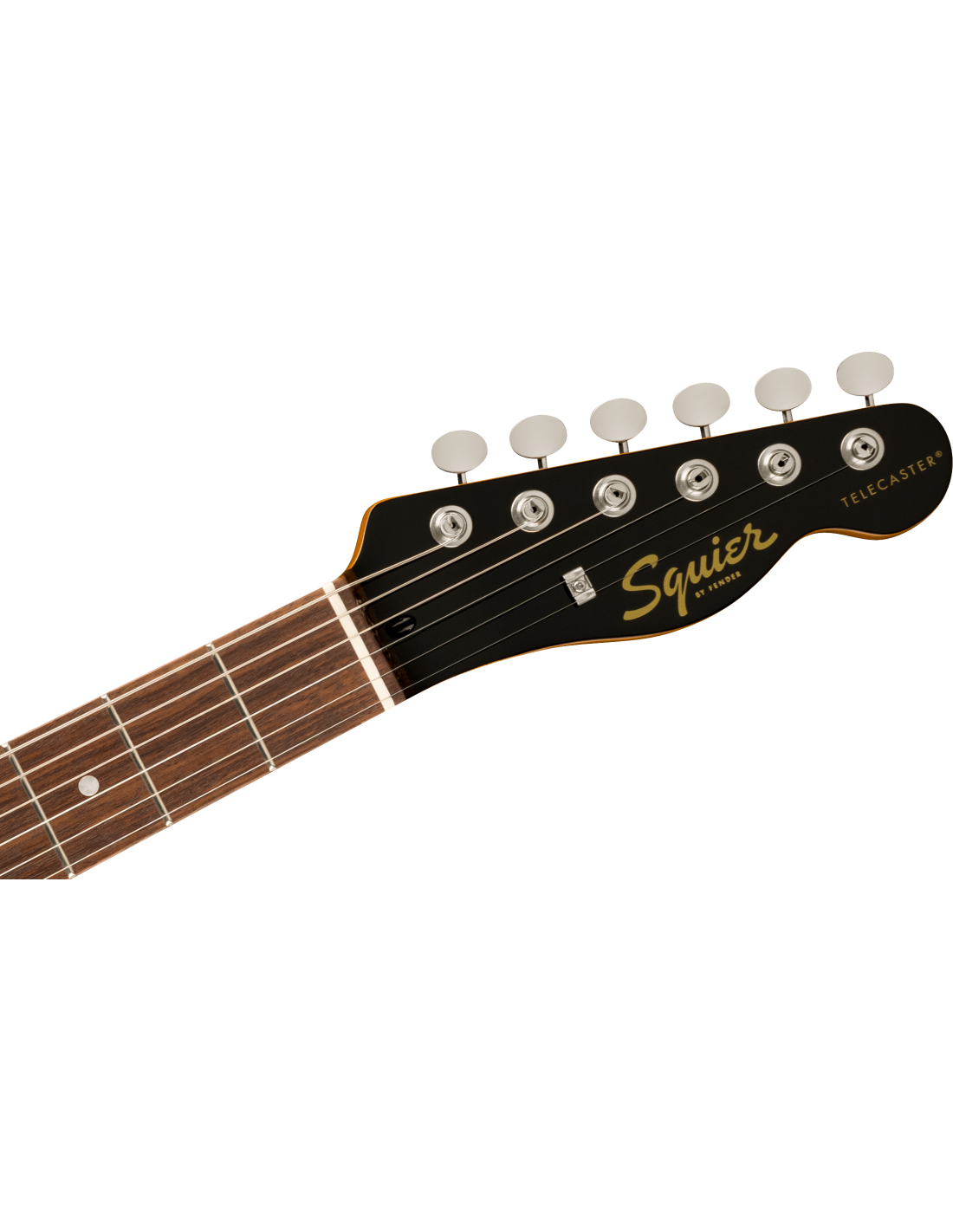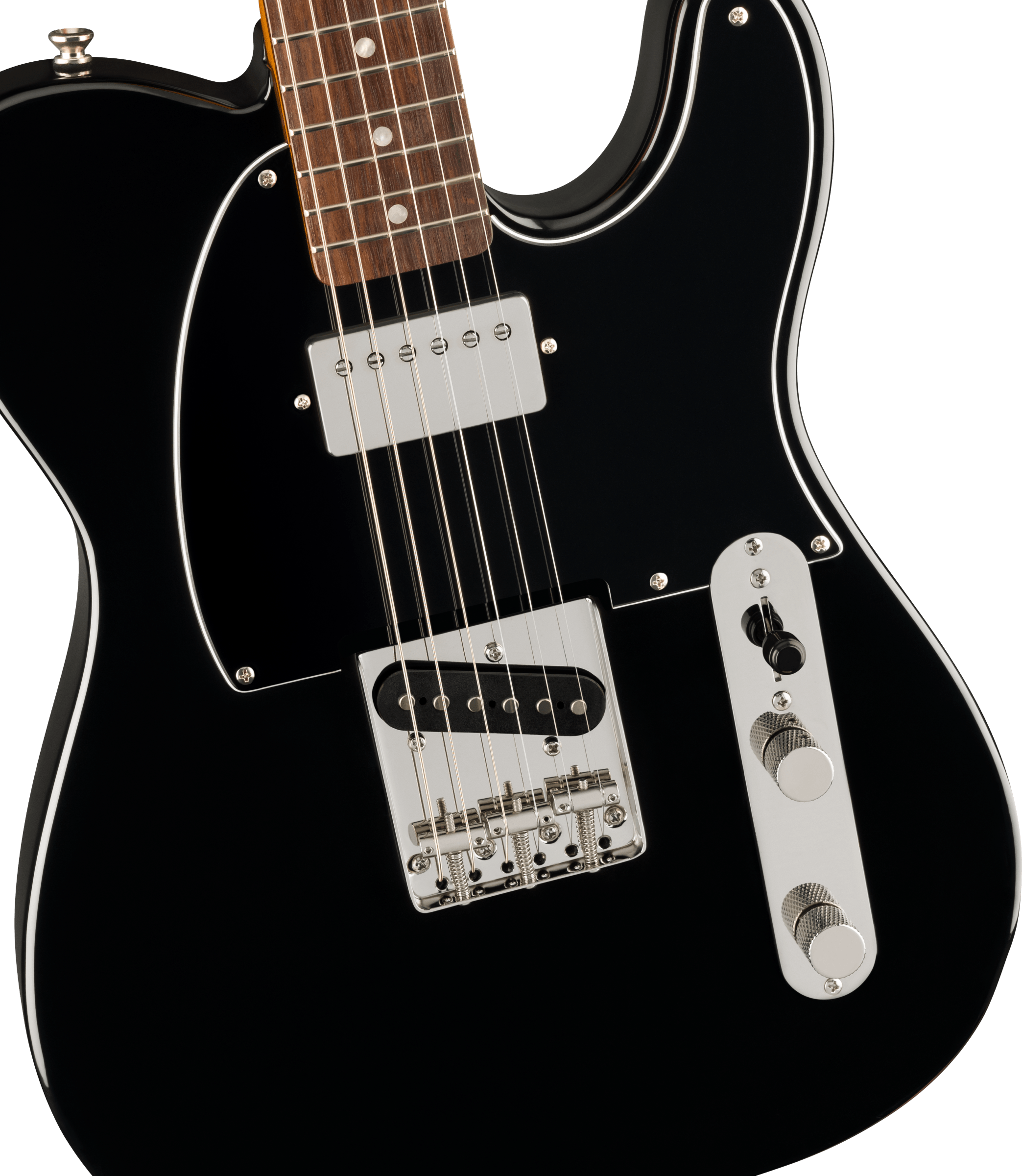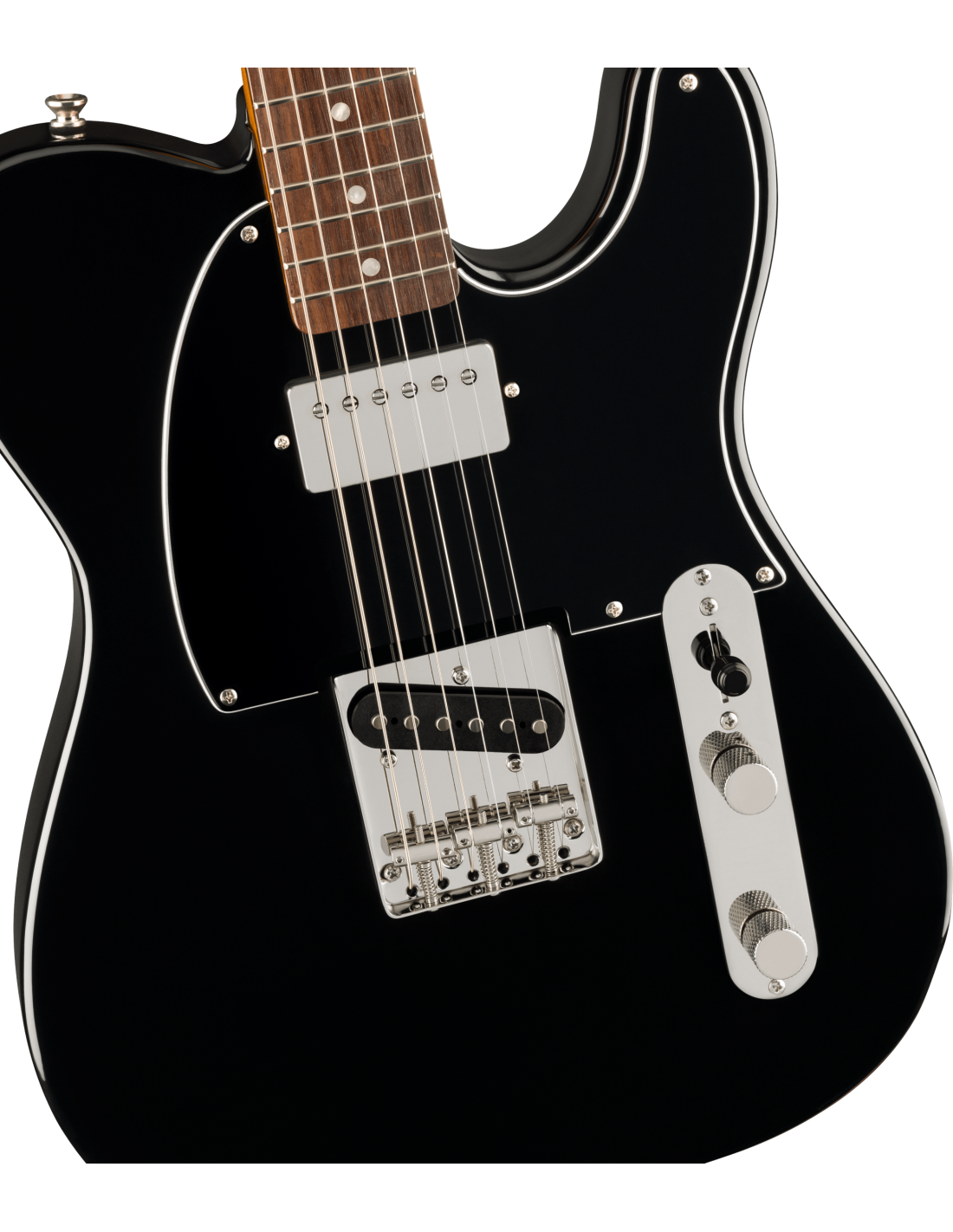 SQUIER LTD CV TELE 60S SH BLACK est une guitare électrique solid body, modèle Limited Edition Classic Vibe '60s Telecaster SH, avec un corps en peuplier et une finition en polyuréthane brillant, un manche en érable en forme de profil "C", un doigté en laurier indien avec un rayon de 9,5" avec 21 frettes Narrow Tall et des incrustations en Perloid Dot avec des points latéraux blancs, un pickguard 3-Ply Black, un Truss Rod Standard Head Adjust, un sillet en os synthétique, un matériel nickelé, des mécaniques Vintage Style, un abaisse-cordes Dual Wing et un pont Strings-Through-Body Tele à 3 sellette. L'électronique en configuration SH consiste en 1 micro Fender Designed Alnico Single-Coil au pont et 1 Fender Designed Alnico Humbucking au manche avec des contrôles Master Volume, Master Tone et un sélecteur de micro à 3 voies.