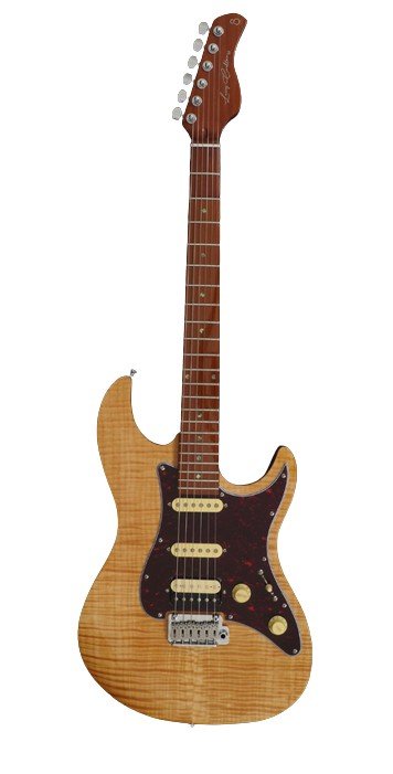 Guitare électrique Larry Carlton en forme de S. Corps en aulne. Table en érable flammé 5A. Manche en érable torréfié. Finition satinée du manche. Touche bolt-on en érable torréfié avec bord laminé. Ensemble de micros HSS Sire Super-ST. Contrôles de volume et de tonalité (push-pull). Switch à 5 positions. Mécaniques Sire Premium Locking. Pont Modern Tremolo Bridge (type à 2 poteaux).