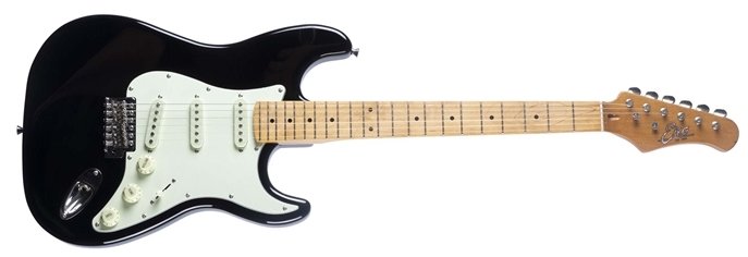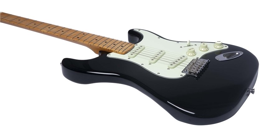 La ST-401 Black est la guitare électrique de la série "Tribute 400" de la maison Eko Guitars. Elle présente un corps en Pawlonia, un manche en Érable Américain et une touche de 22 frettes en Érable. Elle est équipée de trois micros Single-coil, de contrôles de Volume et de deux Tons, ainsi que d'un sélecteur à 5 positions.