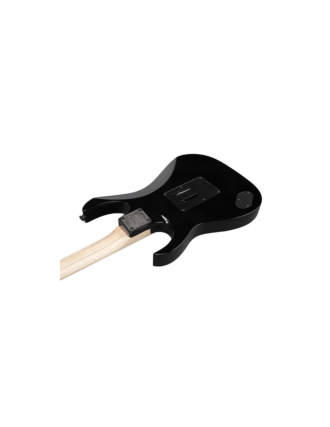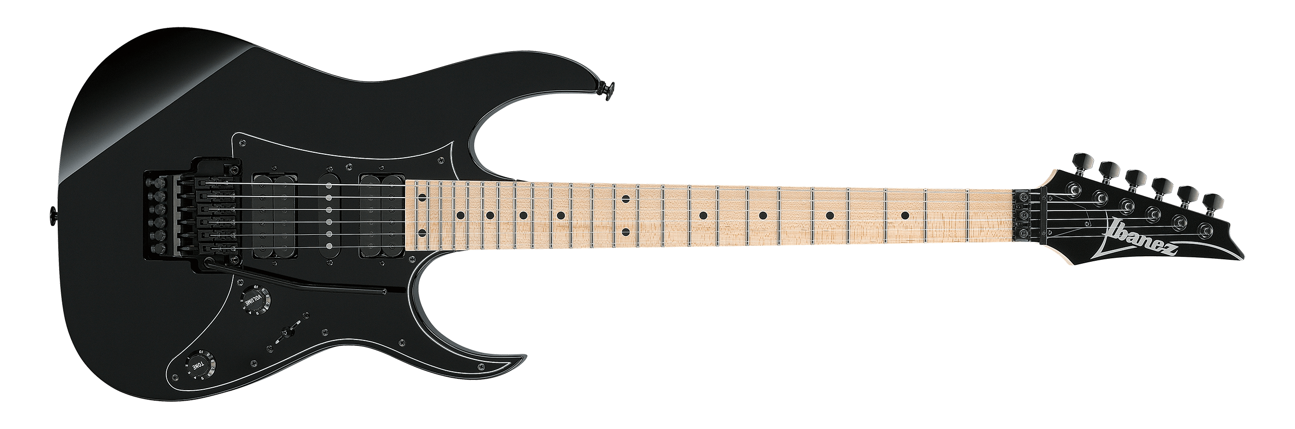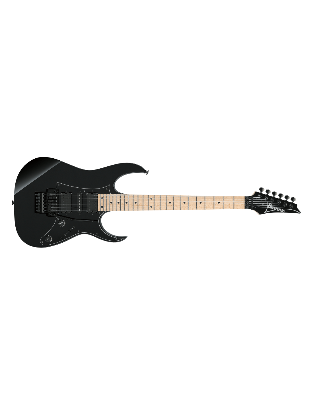 IBANEZ RG550-BK est une guitare électrique solid body, modèle Ibanez Genesis Collection Made in Japan RG550, avec un corps en Basswood (Tilleul), un manche en 5 pièces Érable/Noyer à profil Super Wizard HP, un touche en Érable à rayon 16,9" avec 24 frettes Jumbo et des incrustations Black dot inlay avec des points latéraux Black, un sillet de tête Locking R430, du matériel Black, des mécaniques Locking Gotoh SG381 Black et un pont Tremolo Ibanez Edge. L'électronique en configuration HSH, consiste en 1 micro Humbucker Vintage 8 Passive/Alnico au pont, 1 micro Single-Coil Super 1 Passive/Alnico au centre et 1 micro Humbucker Vintage 7 Passive/Céramique au manche avec des contrôles Master Volume, contrôle Master Tone, et un sélecteur de micro à 5 voies.