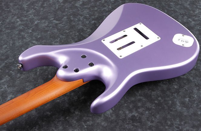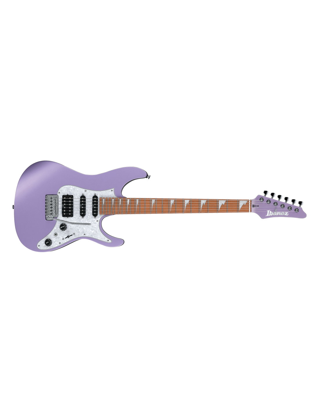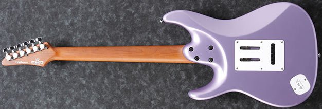 IBANEZ MAR10-LMM est une guitare électrique solid body, modèle Mario Camarena Signature Ibanez MAR10, avec un corps en Basswood (tilleul) américain, un manche en Érable Rôti au profil AZ Oval C, un touche en Érable Rôti avec un rayon de 12" et 24 frettes Jumbo en Acier Inoxydable et des incrustations Sharktooth Inlay avec des points latéraux Luminescents, un sillet de 42mm en Graph Tech, du matériel Chrome, des mécaniques Gotoh MG-T Locking et un pont Gotoh T1502 tremolo bridge. L'électronique en configuration HSS, consiste en 1 micro Humbucker Seymour Duncan Hyperion Passive/Alnico au pont et 2 Seymour Duncan Hyperion Single-Coil Passive/Alnico au centre et au manche avec un contrôle Master Volume, un contrôle Master Tone, un interrupteur Alter pour activer le système de commutation dyna-MIX9 pour des variations sonores et un sélecteur de micro à 5 voies. Inclut un Ibanez Gig Bag