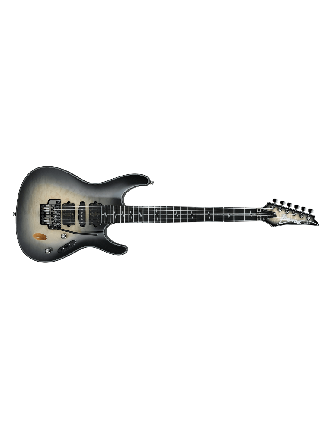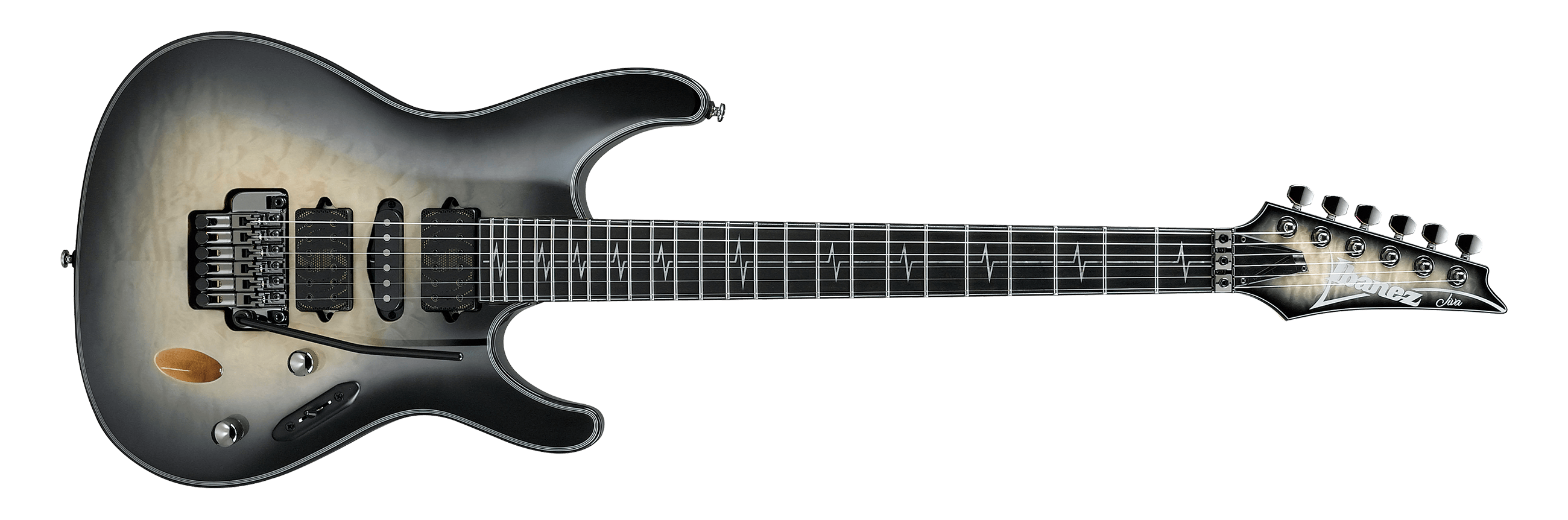 IBANEZ JIVA 10 DEEP SPACE BLONDE est une guitare électrique solid body, modèle Nita Strauss Signature Ibanez Jiva10, avec un corps en Acajou Africain et un dessus en Érable Quilté, un manche en 3 pièces en Érable/Purpleheart au profil Wizard III, un touche en Ébène à rayon 16" avec 24 frettes Jumbo et des incrustations Beaten Path avec points latéraux Luminlay, un sillet de tête Locking de 43mm R430, quincaillerie Cosmo Black, mécaniques Ibanez fermées sous pression et un pont Tremolo Edge-Zero II. L'électronique en configuration HSH se compose de 2 micros Humbucker DiMarzio Pandemonium (H) micros passifs/céramiques au pont et au manche et 1 micro Single-Coil DiMarzio True Velvet (S) micro passif/Alnico au centre avec contrôle Master Volume, contrôle Master Tone et sélecteur de micros à 5 voies. Inclut un Hardshell Case