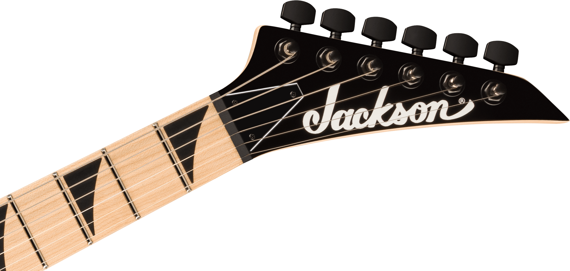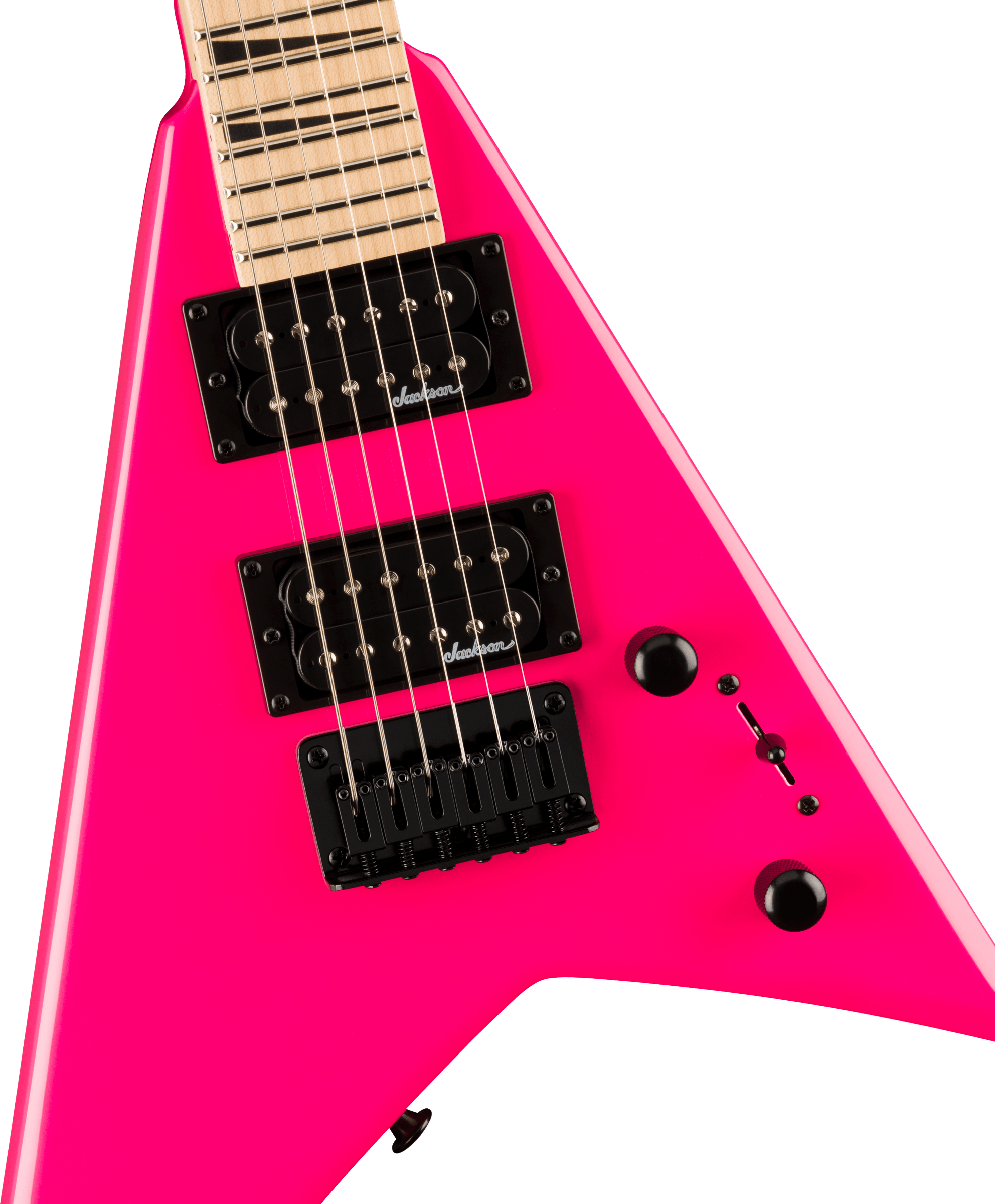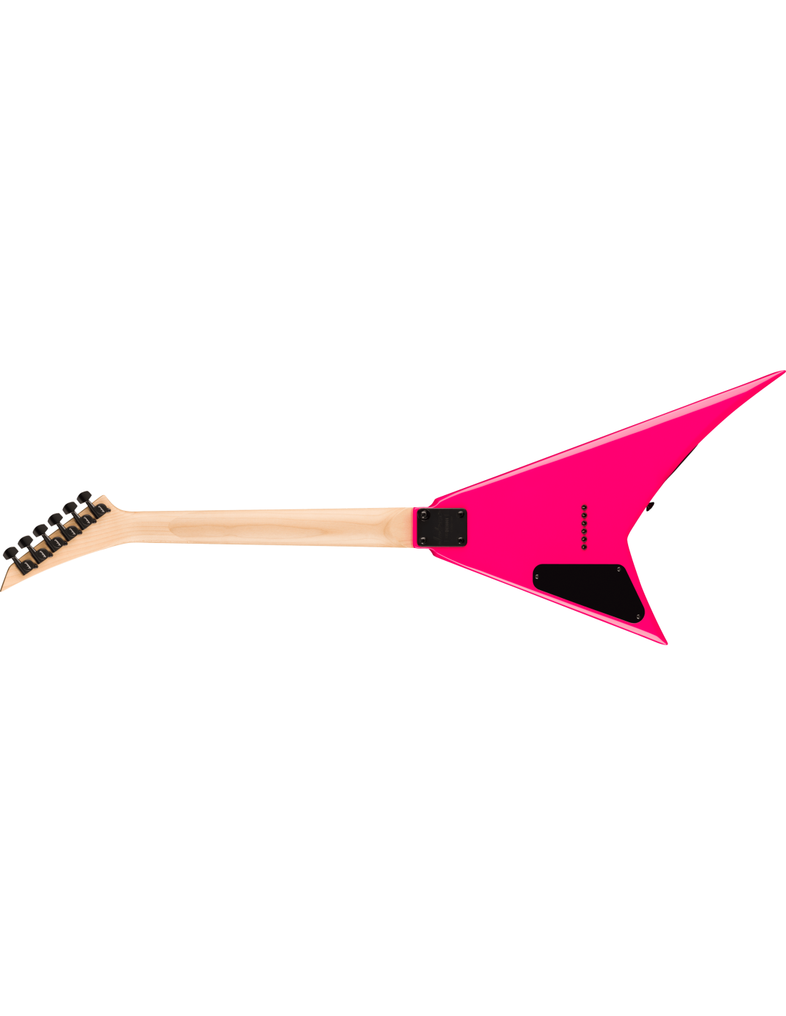 JACKSON JS1X RR MINION NEON PINK est une guitare électrique solid body, série JS, modèle Rhoads Minion JS1X avec un corps en peuplier et une finition brillante, un manche en érable bolt-on avec des renforts en graphite, un doigté en érable à rayon de 12" avec 24 frettes Jumbo et des incrustations Black Sharkfin, un sillet en plastique noir, un matériel noir, des mécaniques Jackson scellées die-cast et un pont String-Through-Body Hardtail à 6 selles Block. L'électronique à configuration HH consiste en 2 micros Jackson High-Output Humbucking, avec un contrôle de volume principal, un contrôle de tonalité principal et un sélecteur de micros à 3 voies.