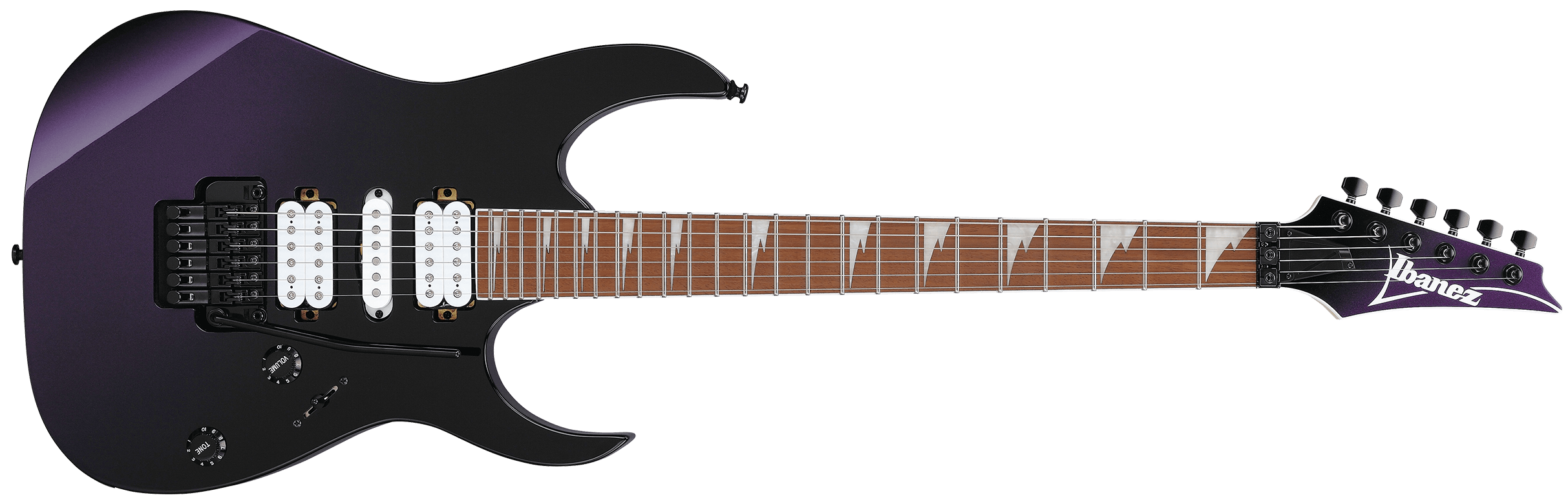IBANEZ RG470DX-TMN est une guitare électrique solid body, série Ibanez RG modèle Ibanez RG470DX, avec un corps en Meranti, un manche Wizard III en Érable, un doigté en Jatoba à rayon 16" avec 24 frettes Jumbo et des incrustations Sharktooth, un sillet de tête Locking de 43mm, un matériel noir, des mécaniques en ligne en métal noir et un pont tremolo Edge-Zero II. L'électronique à configuration HSH se compose de 2 micros Humbucker Ibanez Quantum Passive/Céramique au chevalet et au manche et d'un micro Single Coil Ibanez Quantum Passive/Alnico au centre, avec un contrôle de volume principal, un ton principal et un sélecteur de micros à 5 positions.