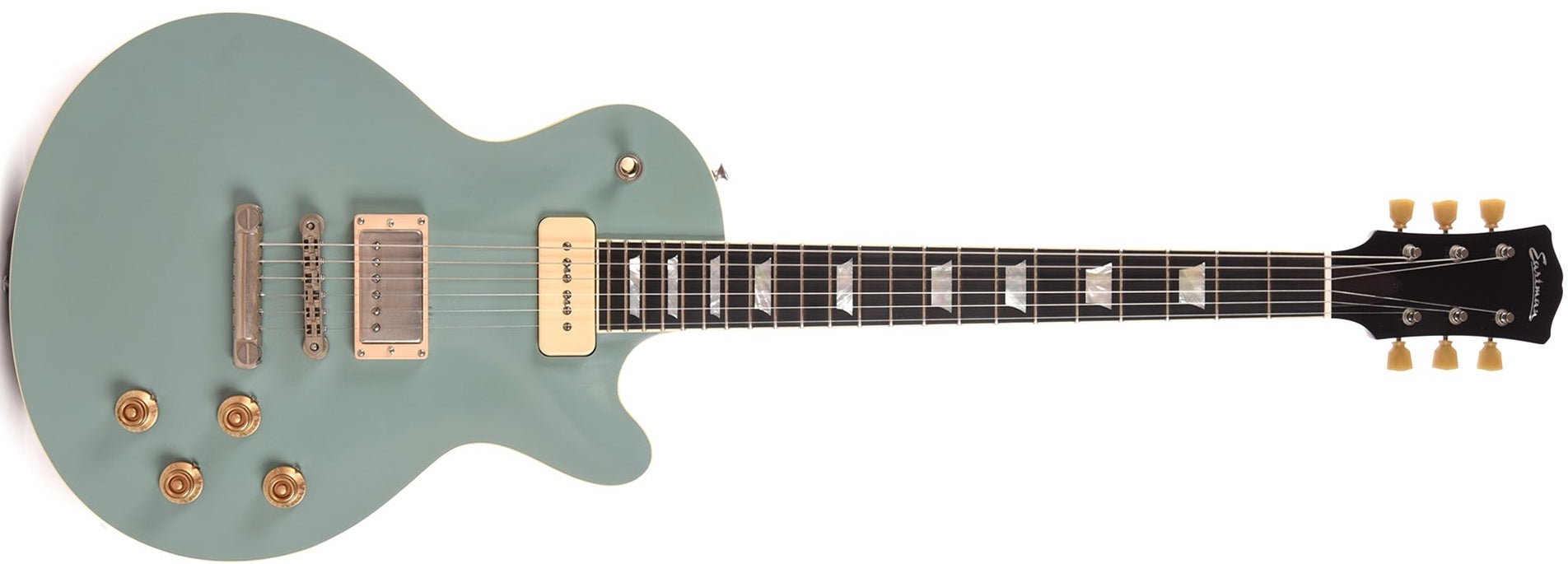 EASTMAN SB58/TV-LTD-FB W/CASE est une guitare électrique solid body "Les Paul Style", série SB58/TV Édition Limitée avec un corps en Okoumé monopièce, un top en érable massif sculpté, un manche en Okoumé monopièce, une touche en ébène à rayon 12" avec 22 frettes Jescar-FW47104-P et des incrustations en couronnes de perles, un sillet en os, un matériel en nickel antique, un Truss Rod à double action, des mécaniques Gotoh SD90 Relic et un pont Gotoh GE-104B-NI Relic avec une selle Gotoh GE101A-NI Relic. L'électronique se compose d'un micro Lollar Custom Aged/Wound Imperial Humbucker au pont, et d'un micro Lollar Custom Aged/Wound Soapbar P90 au manche, avec 2 contrôles de Volume et de Tonalité, un sélecteur de micro à 3 voies Switchcraft 12120X, des condensateurs .022 Sprague Orange Drop et des potentiomètres CTS 500K Audio Taper. Inclut un étui rigide Eastman