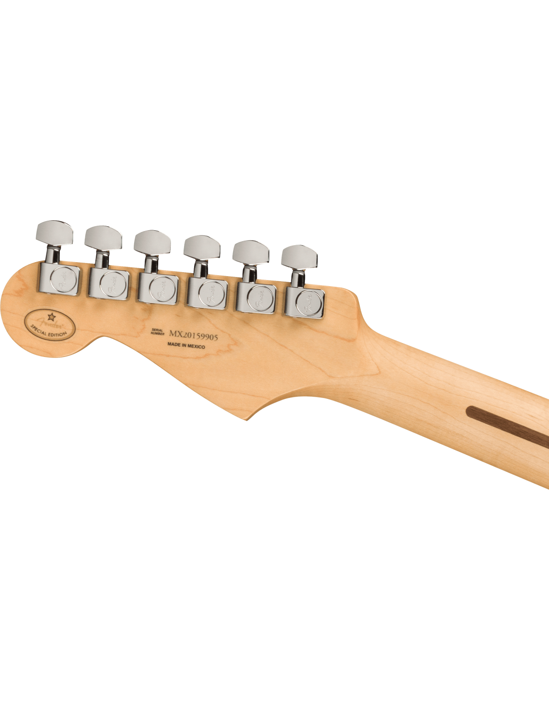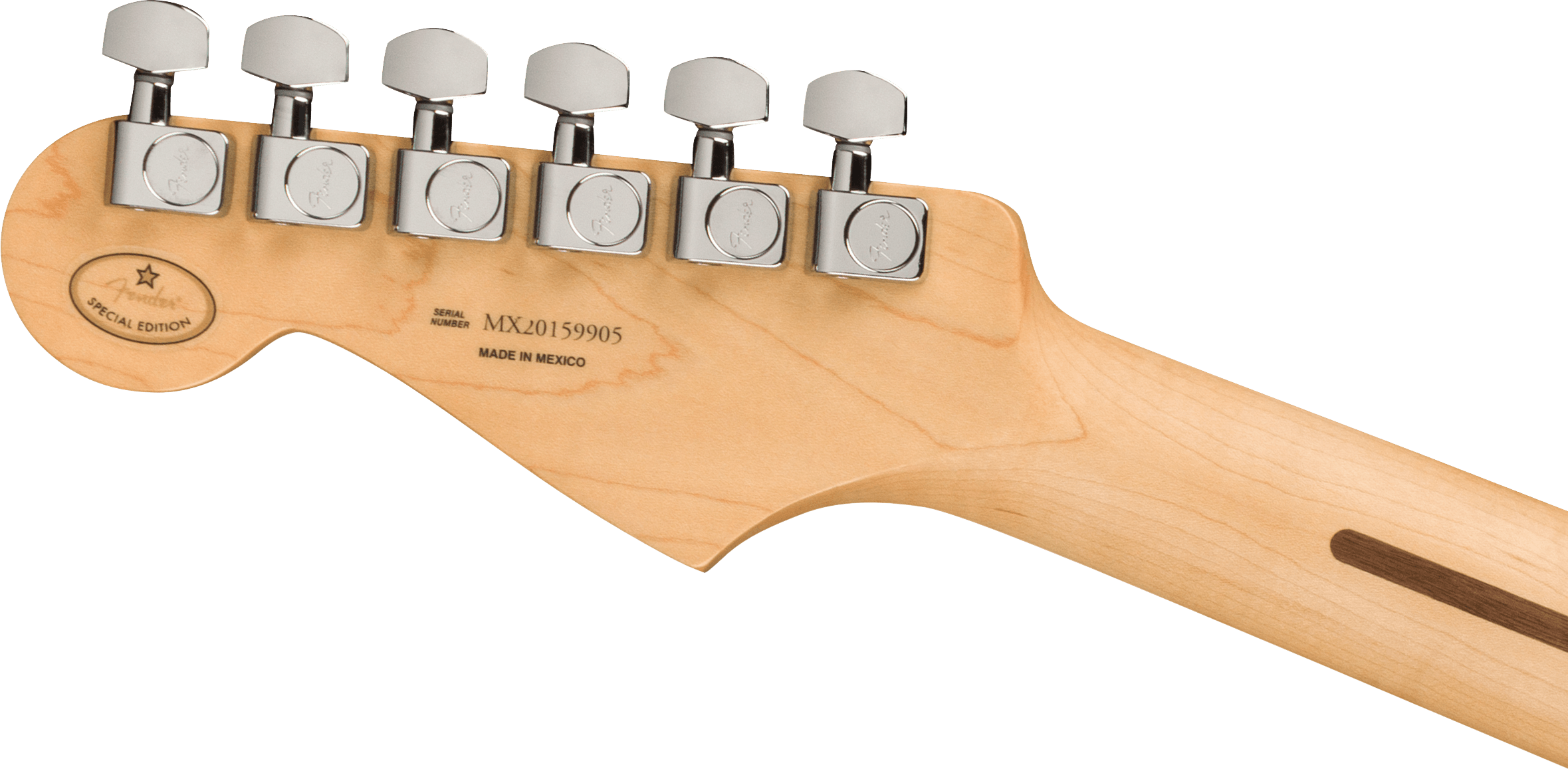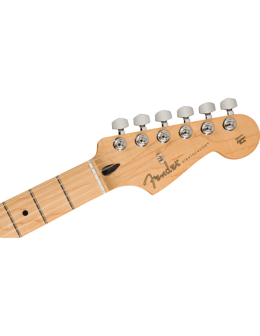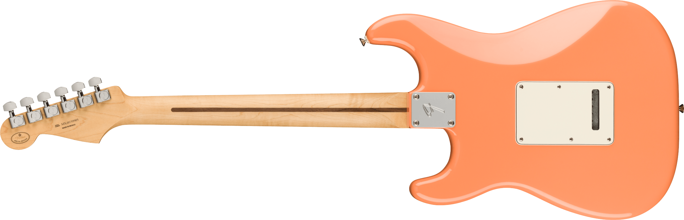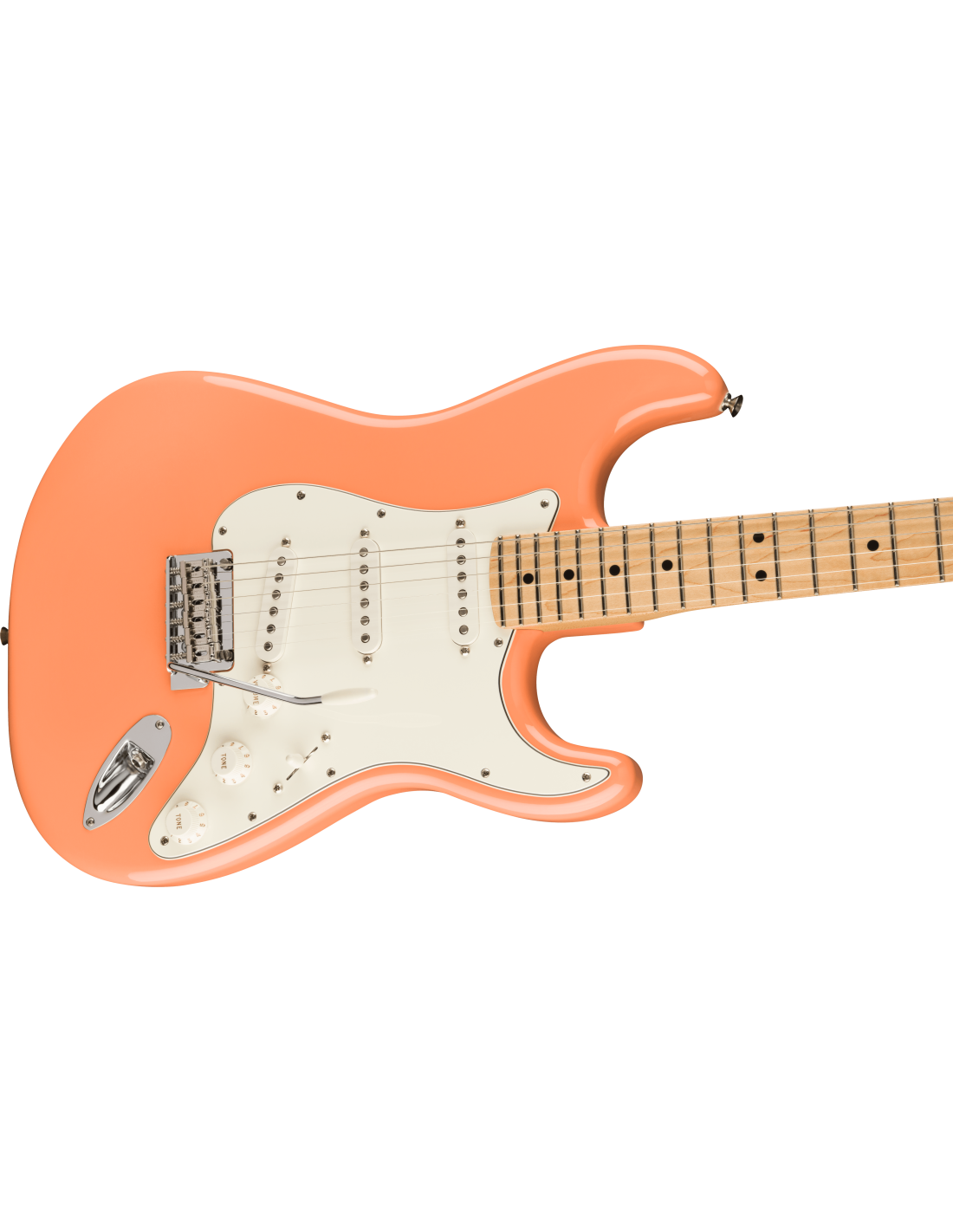 FENDER PLAYER STRAT MN PCP LTD est une guitare électrique solid body, modèle Limited Edition Player Stratocaster, avec un corps en Alder (Ontano) et une finition Gloss Polyester, un manche en érable au profil Modern C-profile, un doigté en érable avec un rayon de 9,5" et 22 frettes Medium Jumbo et des incrustations Black Dots, un sillet en os synthétique, un matériel chromé, Truss Rod Single Action Head Adjust, mécaniques Fender Standard Cast/Sealed avec des alésages de cordes Dual-Wing, un pont Tremolo synchronisé en 2 points avec 6 selles en acier plié et un pickguard 3-Ply Parchment. L'électronique en configuration SSS consiste en 3 micros Single-Coil Player Series Alnico 5 Strat avec un contrôle Master Volume, 2 contrôles Master Tone et un sélecteur de micros à 5 voies.