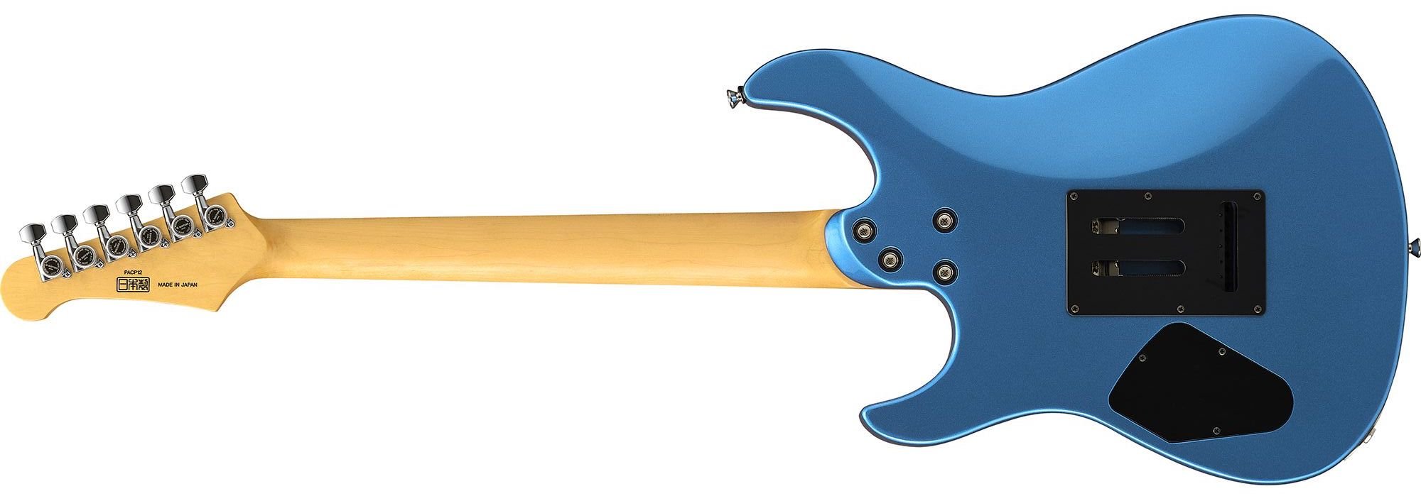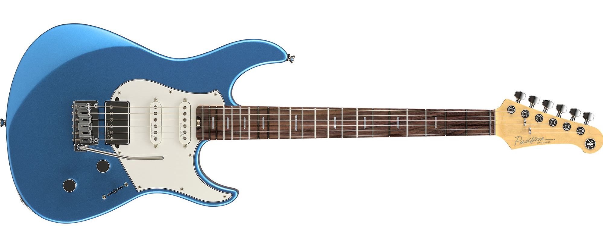 YAMAHA PACIFICA PROFESSIONAL SPARKLE BLUE est une guitare électrique solid body de style strat, série Made in Japan Yamaha Pacifica Professional, avec un corps en tilleul Acoustic Design technology à finition Gloss Polyurethane, un manche vissé en érable à profil Slim C-shape, un touche à rayon composite 10"-14" en Palissandre avec 22 frettes Medium Stainless Steel et des incrustations Slim Blocks, un sillet de 42mm en GraphTech Tusq, des mécaniques Gotoh Locking Tuners et un pont Tremolo Gotoh 510T avec cordier FE-1. L'électronique à configuration HSS réalisée en collaboration avec Rupert Neve Designs, consiste en un pickup Humbucker Rupert Neve Reflectone HH7B au pont et 2 pickups Single-Coil Rupert Neve Reflectone HS7N au centre et au manche, avec des contrôles Master Volume, Master Tono avec push/pull coil-split et sélecteur de pickup à 5 voies. Inclut un Hardshell Case.