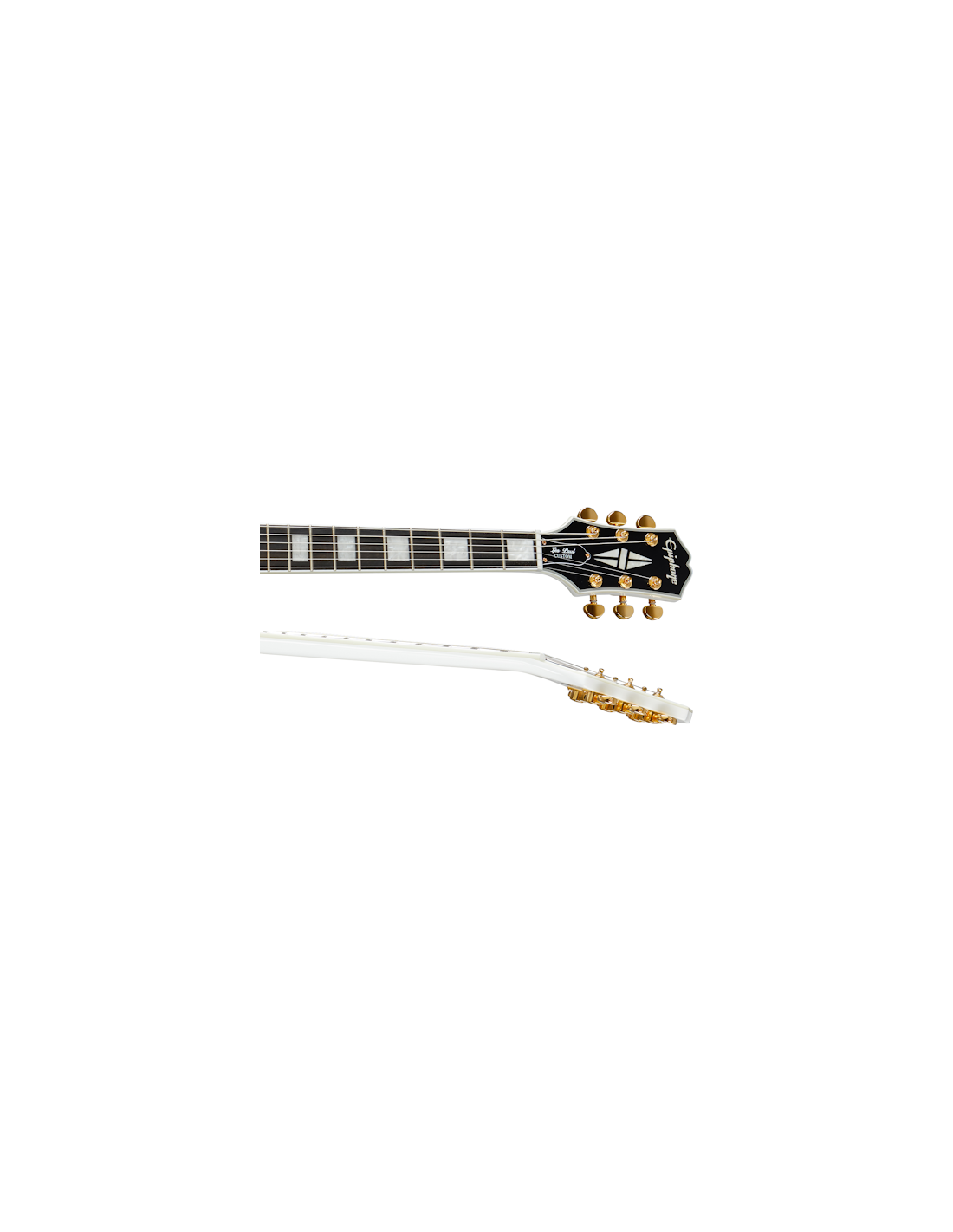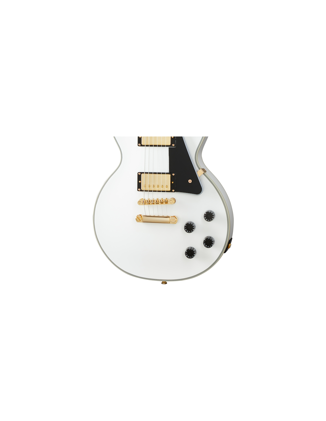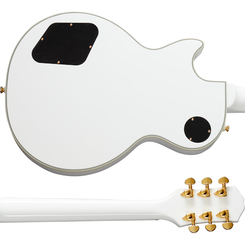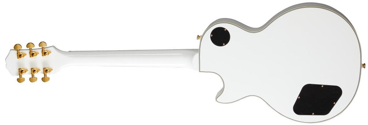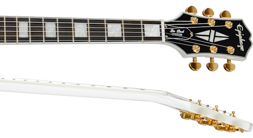 EPIPHONE LES PAUL CUSTOM ALPINE WHITE W/CASE est une guitare électrique solid body de la série Epiphone Les Paul inspirée par Gibson Custom, avec un corps en acajou relié Custom, un manche en acajou au profil 50s Rounded Medium "C", une table en ébène à rayon 12" avec 22 frettes Medium Jumbo et des incrustations en bloc de nacre, un sillet en Graph Tech NuBone, du matériel doré, des mécaniques Grover Rotomatic 18:1 et un pont Epiphone LockTone Tune-O-Matic avec une cordière Epiphone LockTone Stopbar. L'électronique à configuration HH consiste en 1 micro humbucker Gibson 498T au pont et un micro humbucker Gibson 490R au manche, avec 2 contrôles de Volume et de Tonalité, un sélecteur de micro à 3 voies Switchcraft, des potentiomètres CTS et des condensateurs Mallory. Inclut un étui rigide Epiphone.