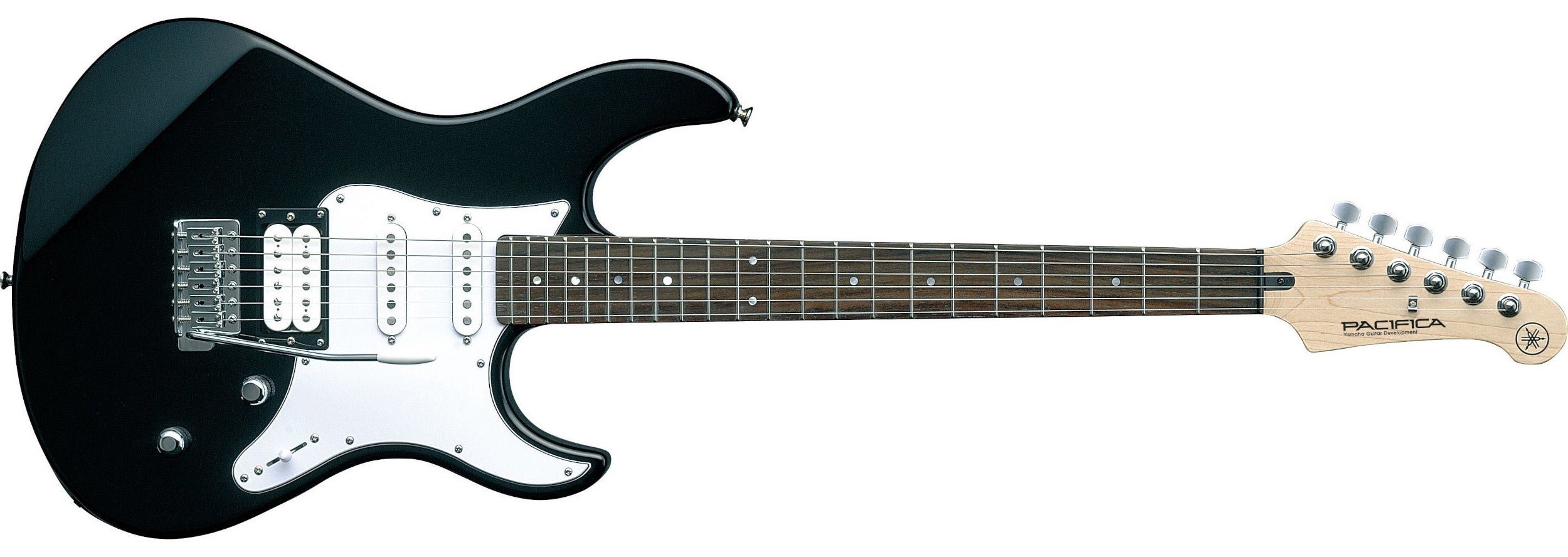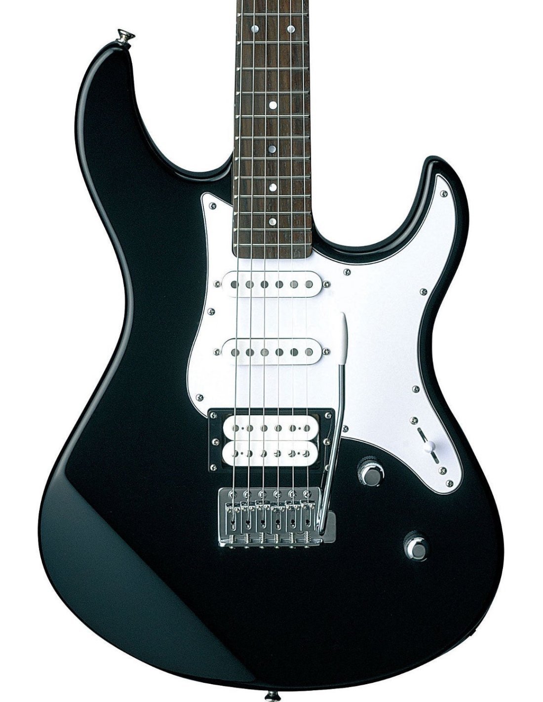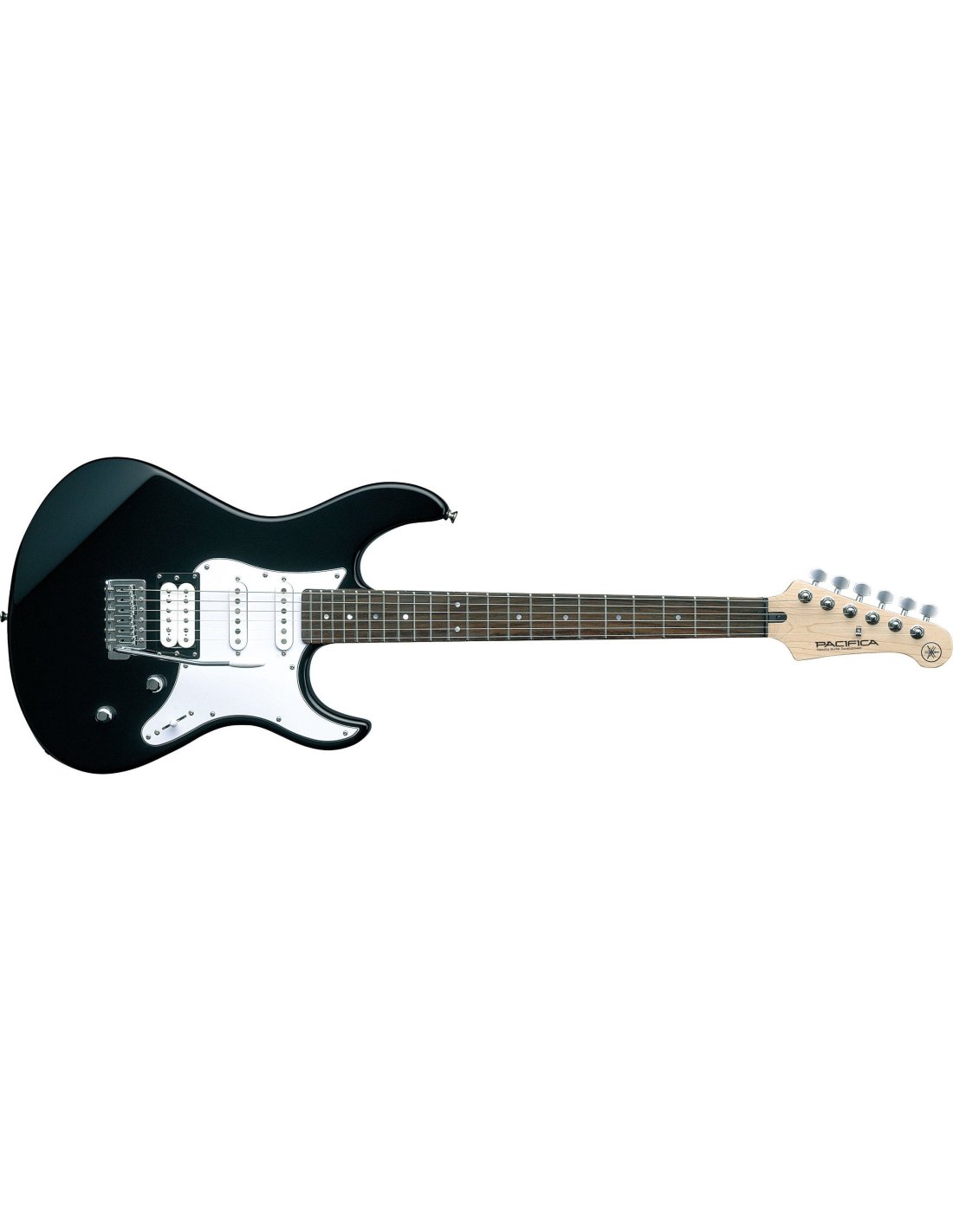 YAMAHA PACIFICA 112V BLACK est une guitare électrique solid body de style Strat, avec un corps en aulne, un manche en érable bolt-on, une touche en palissandre avec 22 frettes Medium-Jumbo et des repères en point, matériel chromé, un pont vibrato de style vintage avec des selles pleines. L'électronique en configuration HSS se compose de 1 micro Humbucker et 2 micros Single-Coil avec des aimants Alnico V et un contrôle de volume principal, un contrôle de tonalité principal, un sélecteur de micro à 5 positions et un sélecteur push-pull ("coil-split").