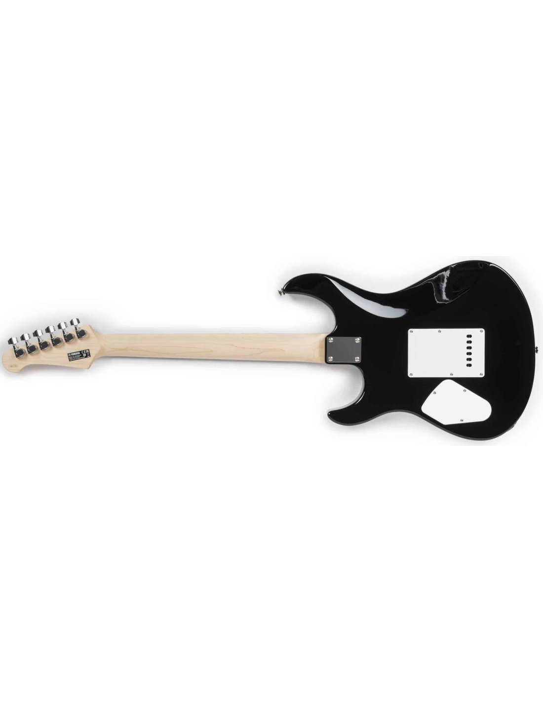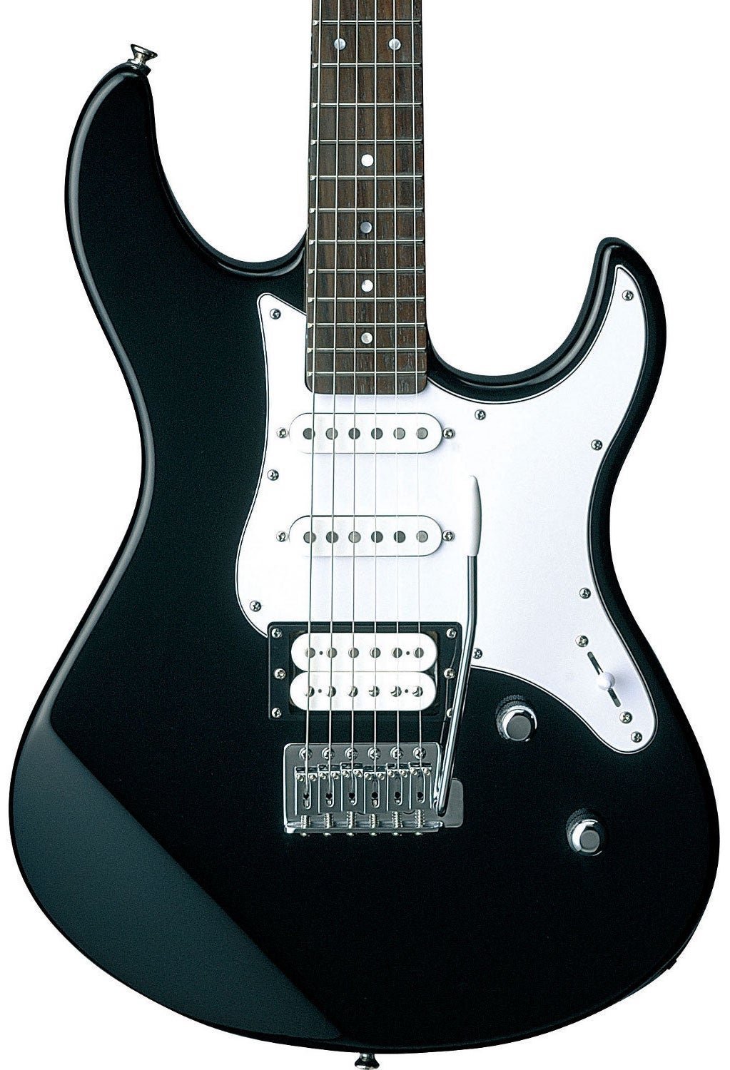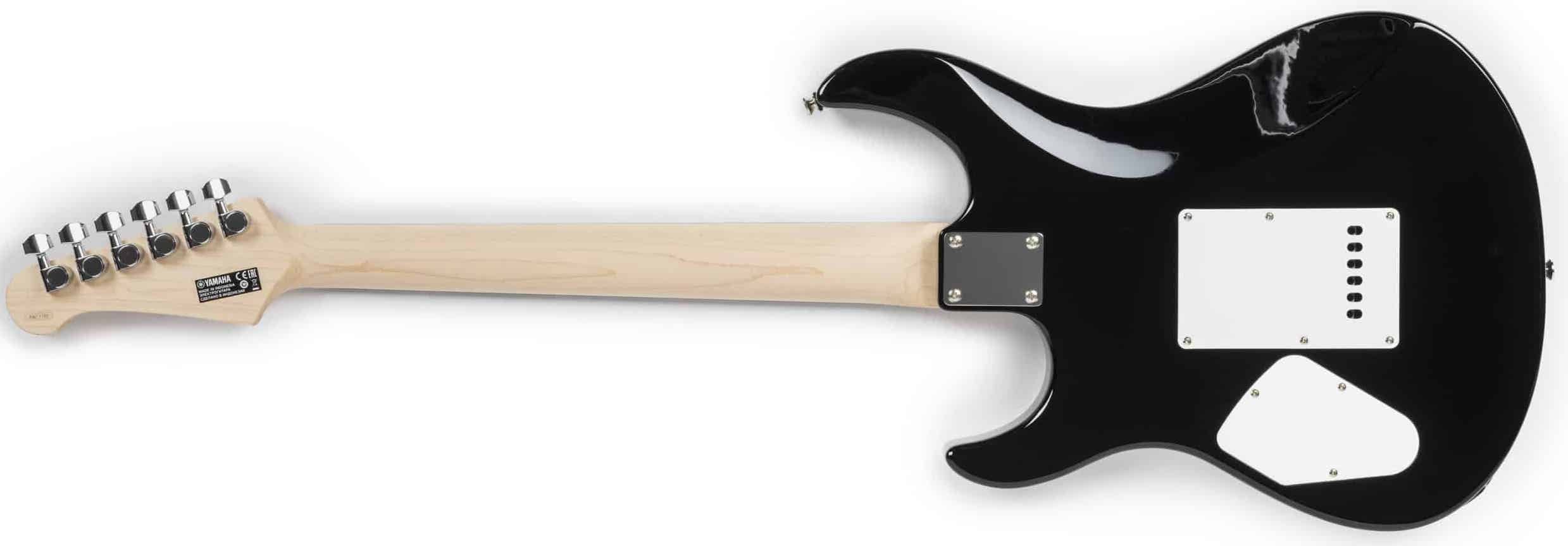 YAMAHA PACIFICA 112V BLACK est une guitare électrique solid body de style Strat, avec un corps en aulne, un manche en érable bolt-on, une touche en palissandre avec 22 frettes Medium-Jumbo et des repères en point, matériel chromé, un pont vibrato de style vintage avec des selles pleines. L'électronique en configuration HSS se compose de 1 micro Humbucker et 2 micros Single-Coil avec des aimants Alnico V et un contrôle de volume principal, un contrôle de tonalité principal, un sélecteur de micro à 5 positions et un sélecteur push-pull ("coil-split").