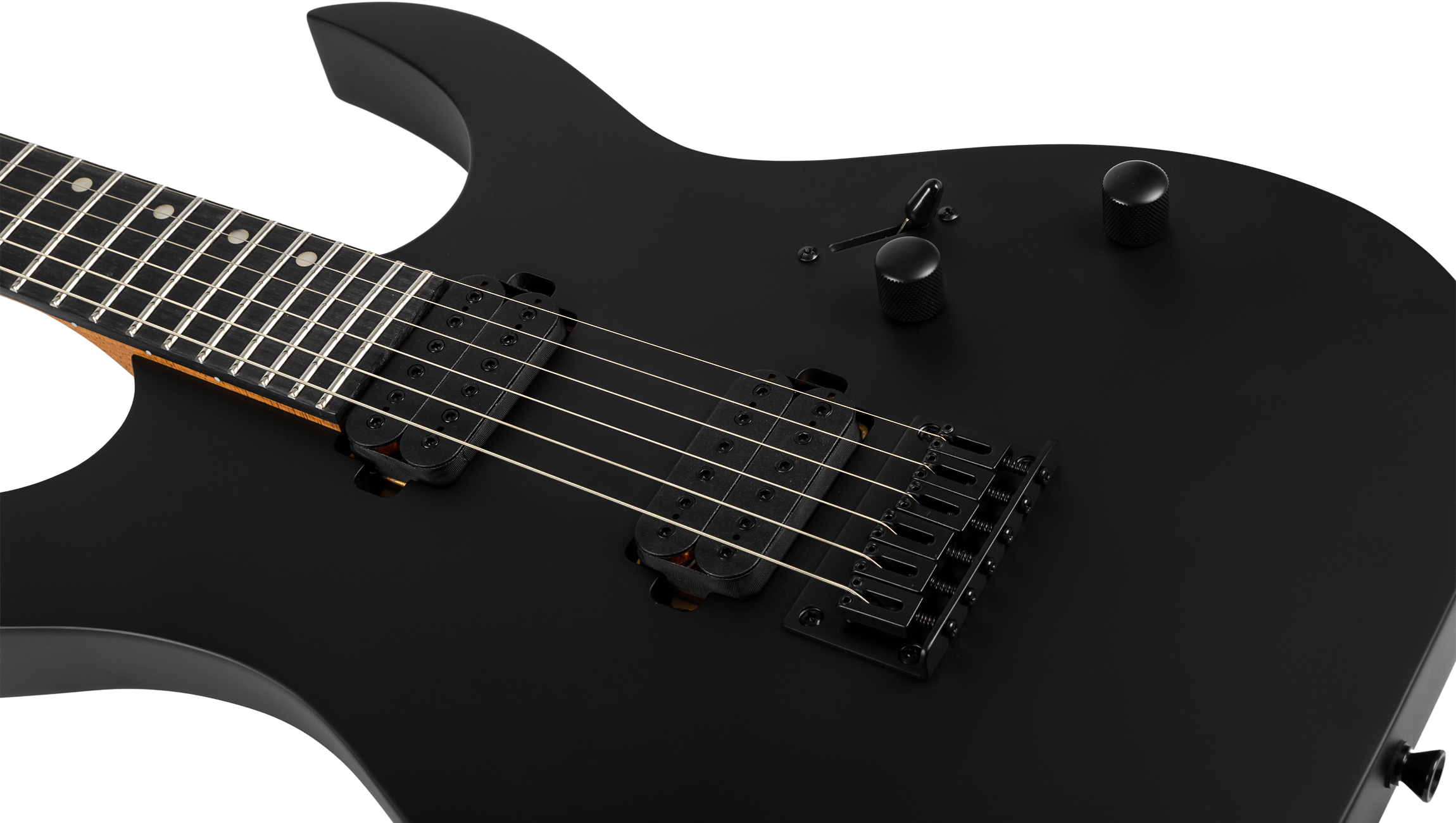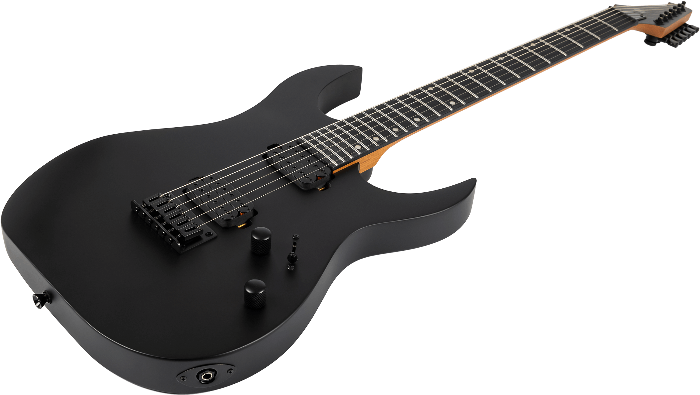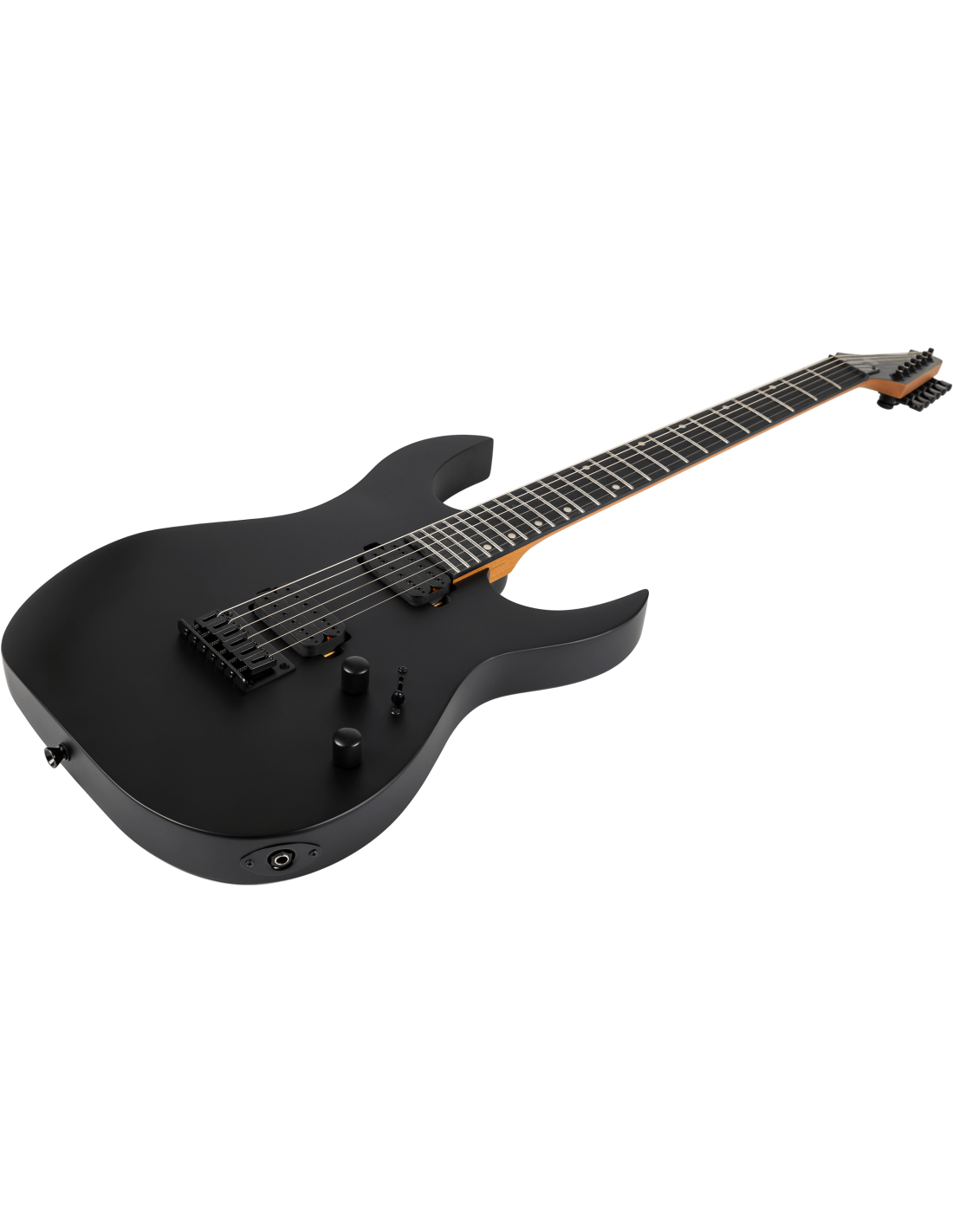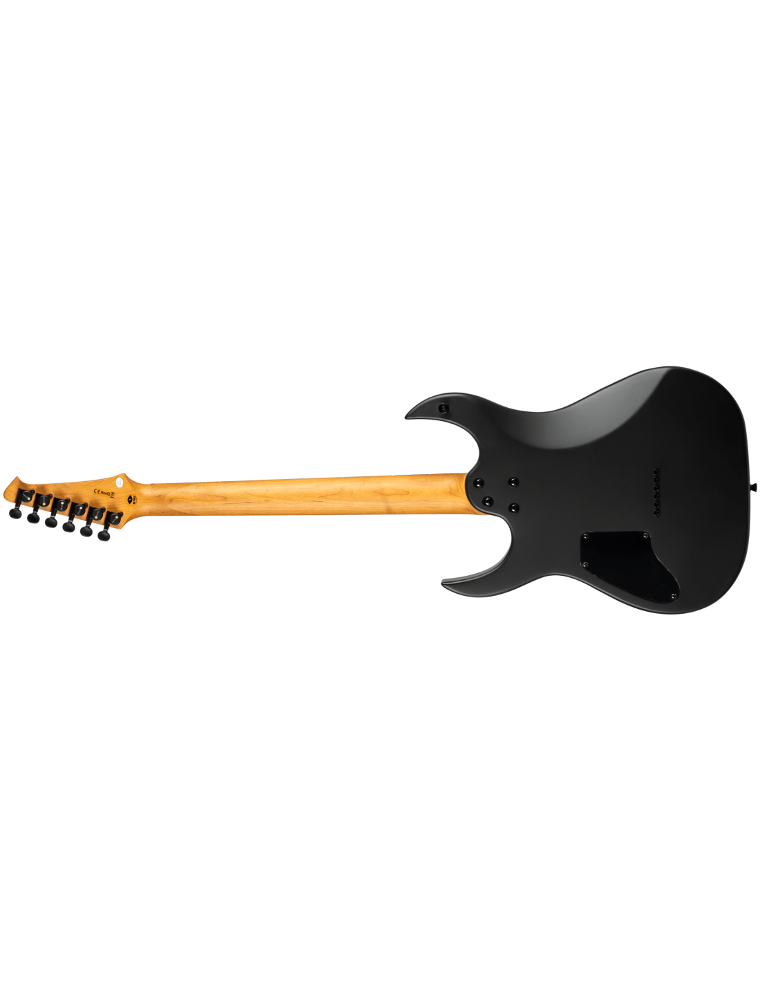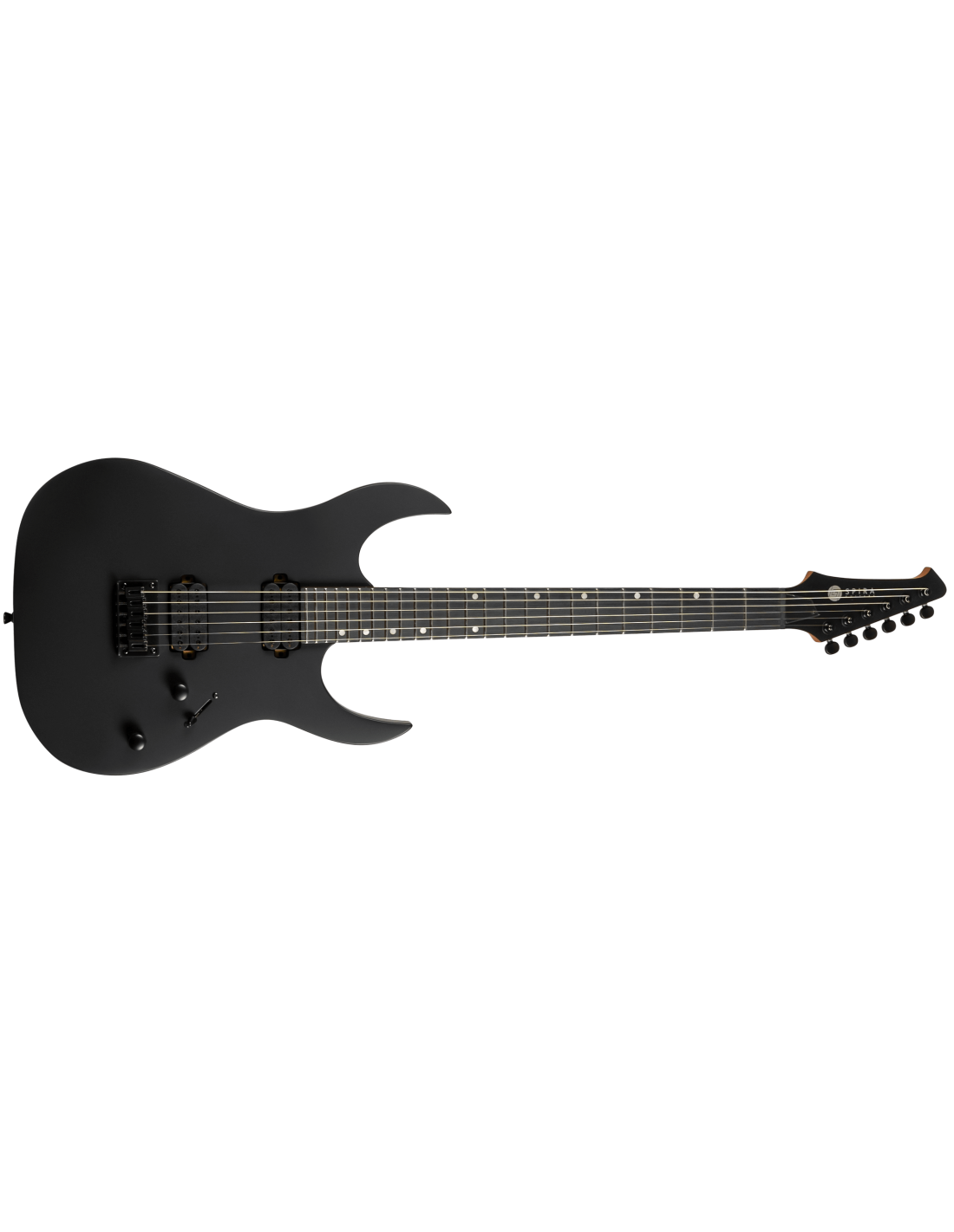 SPIRA S-400 MBK HH SATIN BLACK est une guitare électrique solid body, série S-400 avec un corps en peuplier rôti, un manche en érable rôti canadien au profil Modern D, un doigté en Ébène Tech de haute qualité avec un rayon de 14" et 24 frettes Jumbo et des incrustations de points blancs, un sillet en os synthétique, du matériel noir, un Truss Rod Double Action, une tête inversée, des mécaniques Locking Black et un pont fixe. L'électronique à configuration HH se compose de 2 micros Humbucker Spira Villain Custom Made Ceramic Magnet avec contrôle du volume et du ton et un sélecteur de micros à 3 voies.