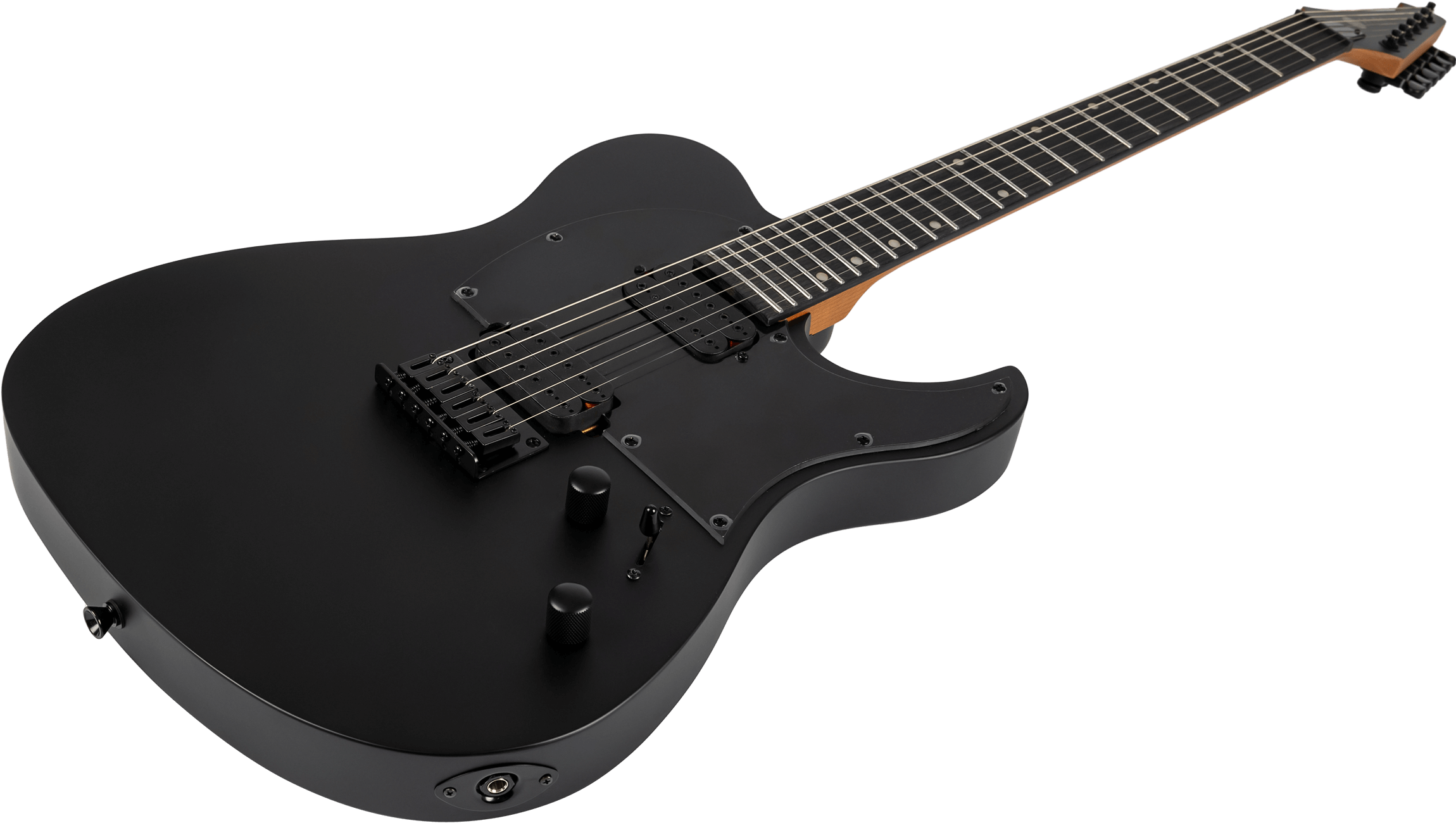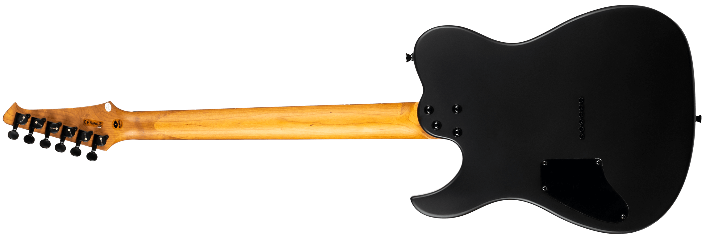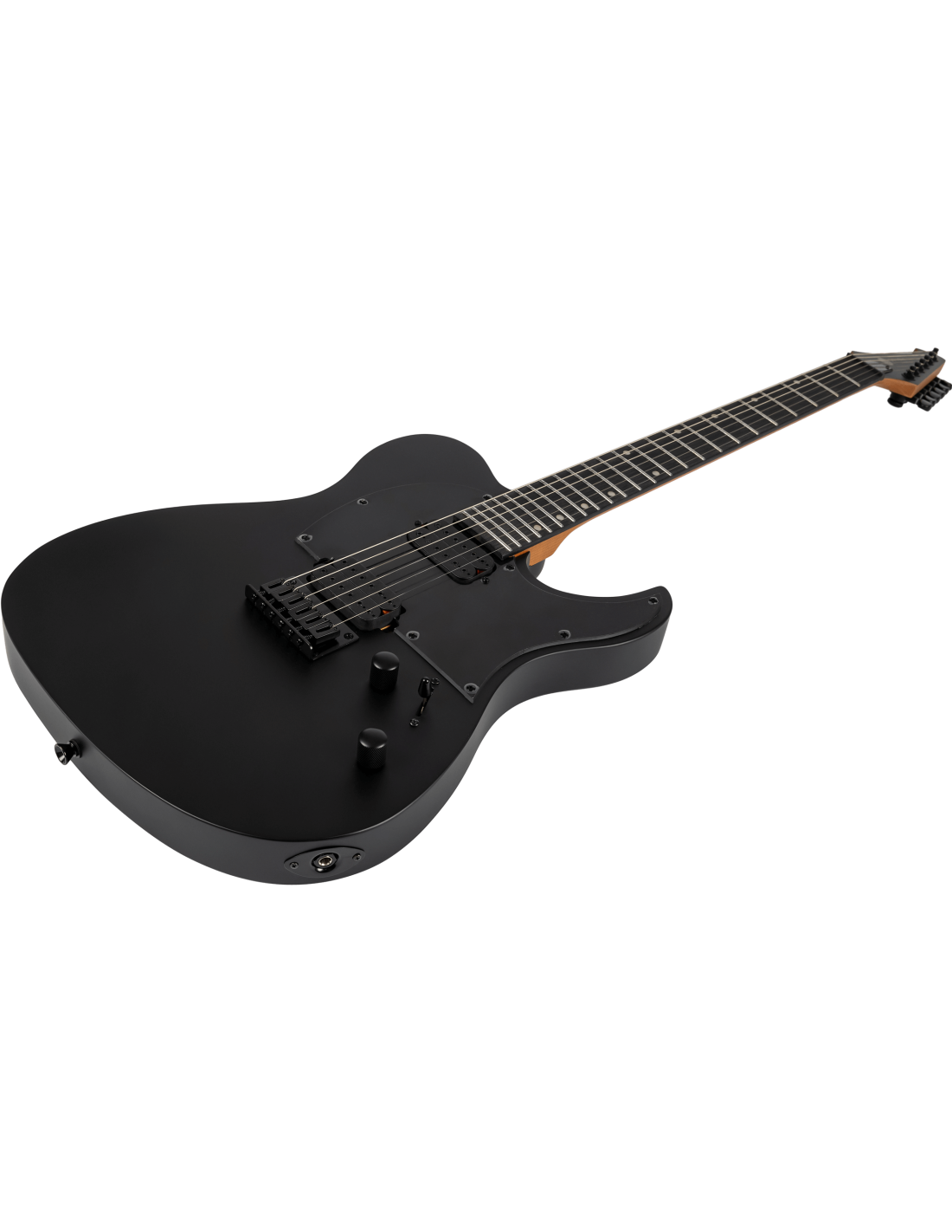 SPIRA T-400 MBK HH SATIN BLACK est une guitare électrique solid body de style T, série T-400 avec un corps en peuplier rôti, un manche en érable rôti canadien au profil Modern D, une touche en Ébène Tech de haute qualité avec un rayon de 14" et 24 frettes Jumbo et des incrustations de points blancs, un sillet en os synthétique, du matériel noir, un Truss Rod à double action, une tête inversée, des mécaniques Locking Black et un pont fixe. L'électronique à configuration HH se compose de 2 pickups Humbucker Spira Villain Custom Made Ceramic Magnet avec contrôle du volume et du ton et sélecteur de pickup à 3 voies.