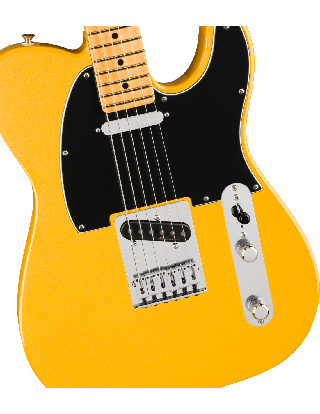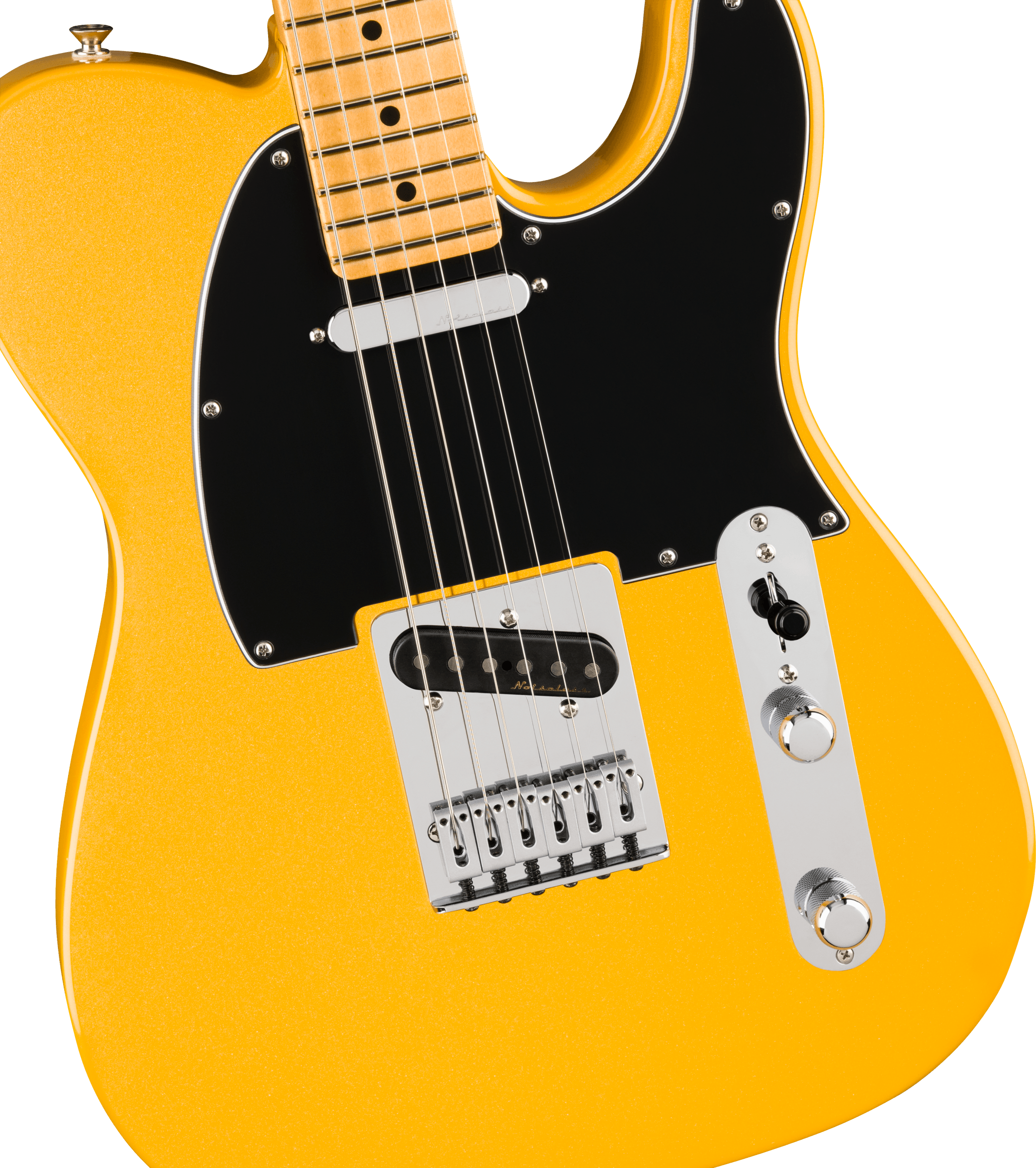 FENDER PLAYER II MOD TELE MN SSY est une guitare électrique solid body, modèle Player II Modified Telecaster, avec un corps en Ontano à finition Gloss Polyester, un manche en érable à profil Modern "C", un doigté en érable à rayon 9,5" avec bords arrondis, 22 frettes Medium Jumbo et incrustations Black Dot, Truss Rod à action unique avec réglage en tête, un sillet en TUSQ, matériel en nickel/chrome, mécaniques Fender Deluxe fermées sous pression avec abaisse-cordes Modern Dual-Wing et un pont Modern Tele String-Through-Body avec des blocs en laiton. L'électronique se compose de 2 micros Player II Noiseless Tele, avec contrôle Master Volume avec Treble Bleed, contrôle Master Tone, sélecteur de micros à 3 positions et Push/Pull sur le Tone pour activer le câblage en série des micros. Inclus : Fender Deluxe Gig Bag.