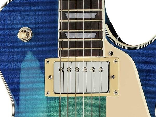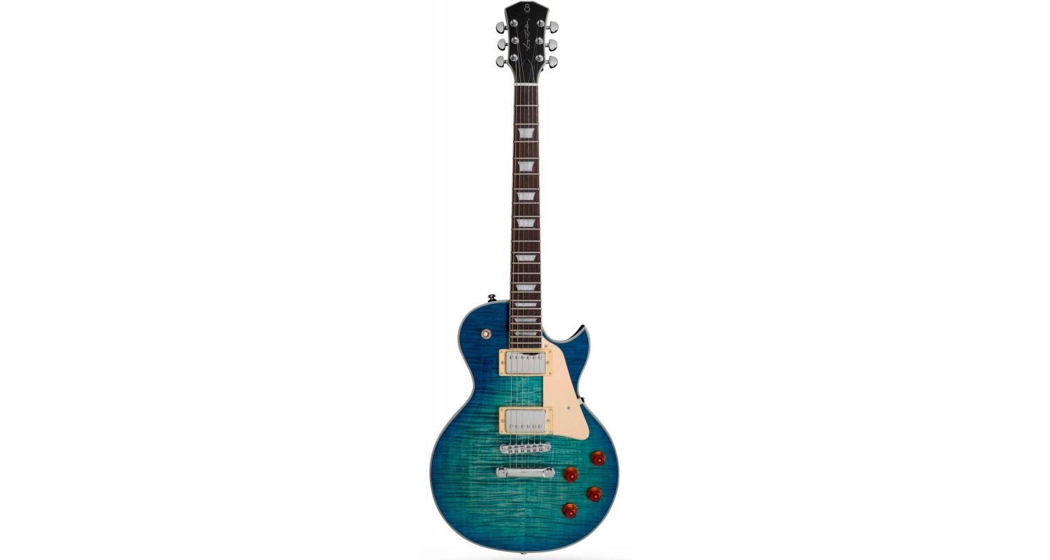 Guitare électrique Larry Carlton Singlecut. Corps en acajou. Table en érable flammé 5A. Manche en acajou. Touche en ébène set-neck, avec bord laminé. 2 Humbucker (Alnico 5) avec couverture chromée. Contrôles de tonalité (2x) et de volume (2x). Interrupteur à 3 positions. Mécaniques Sire Premium. Chevalet Tune-O-Matic avec stop-tail en aluminium.