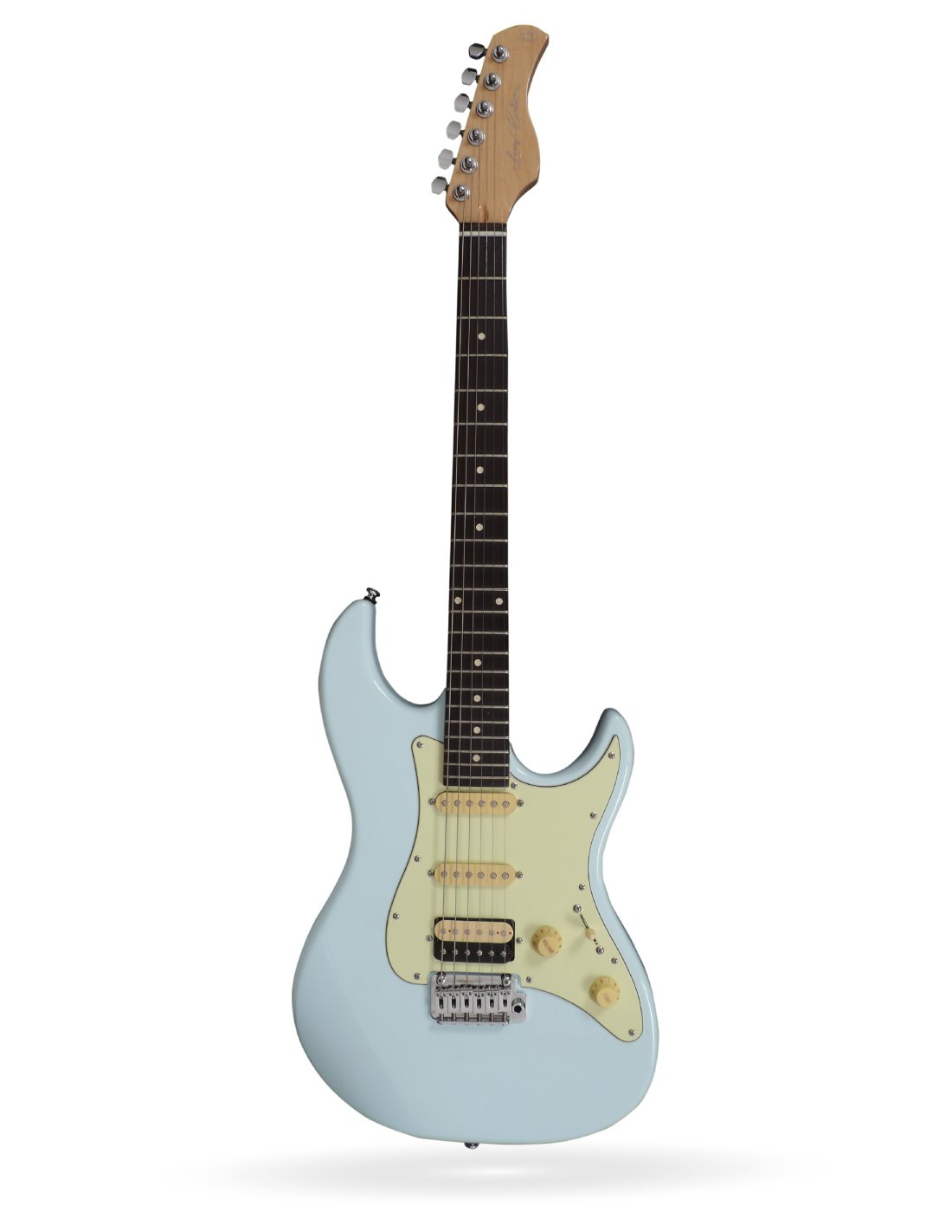Guitare électrique Larry Carlton en forme de S. Corps en acajou. Manche en érable. Finition satinée du manche. Touche en palissandre. Bolt-on avec bord laminé. Ensemble de micros HSS Sire Standard-ST. Contrôles de tonalité et de volume. Interrupteur à 5 positions. Mécaniques Sire Standard. Pont Sire Standard Tremolo.