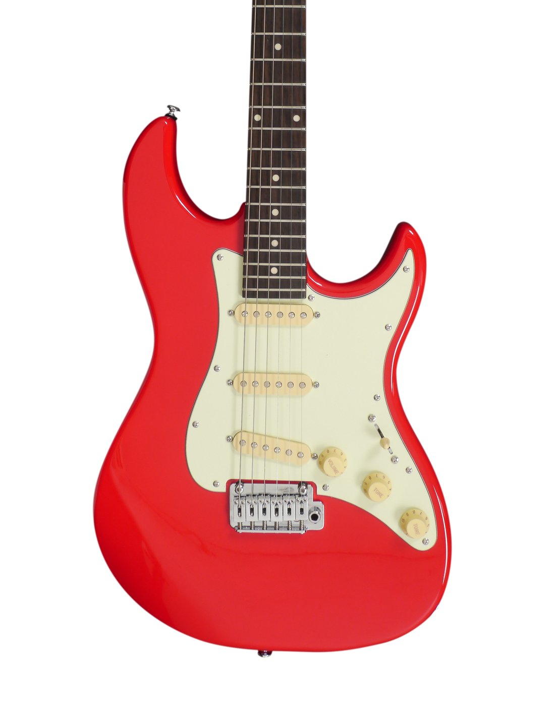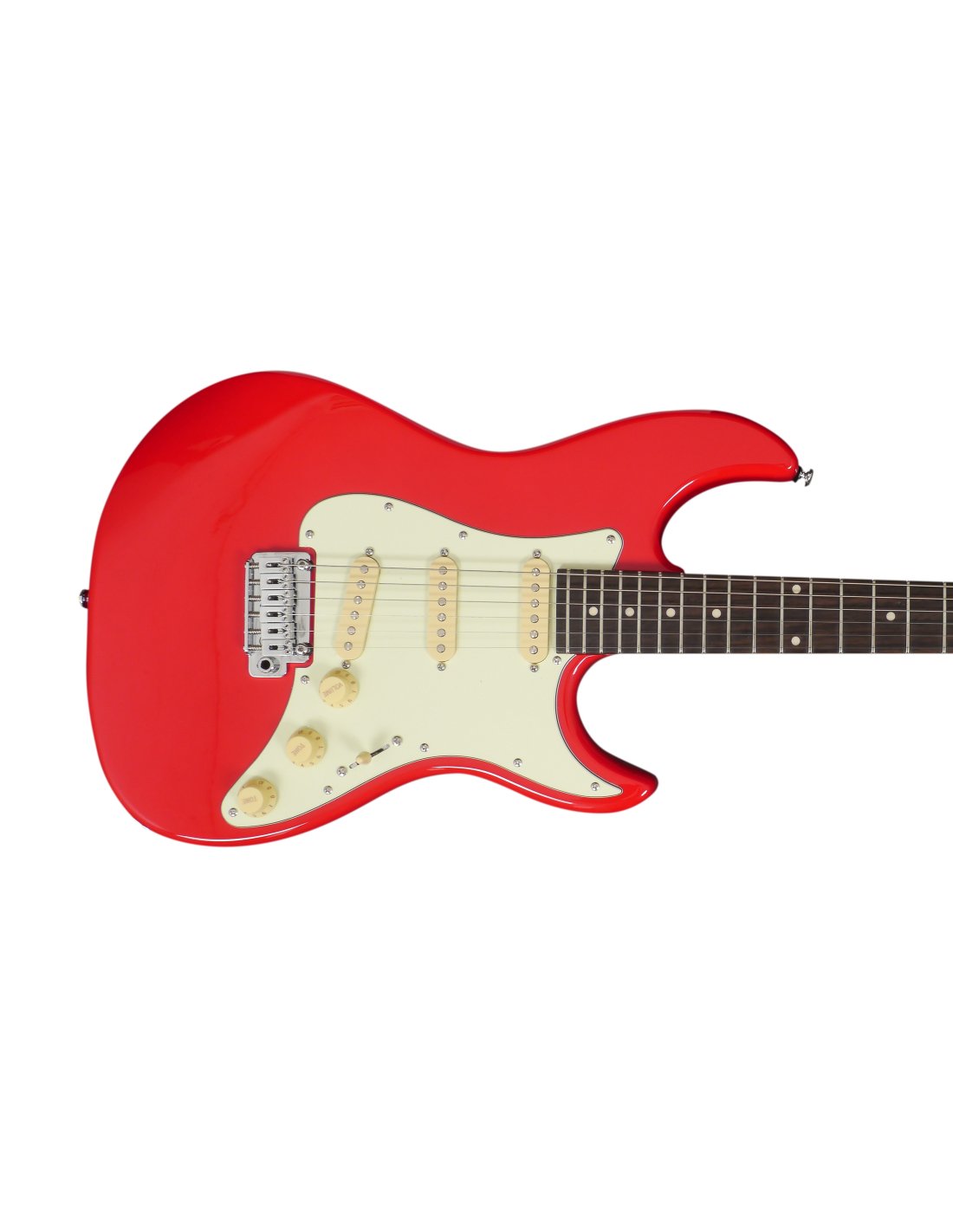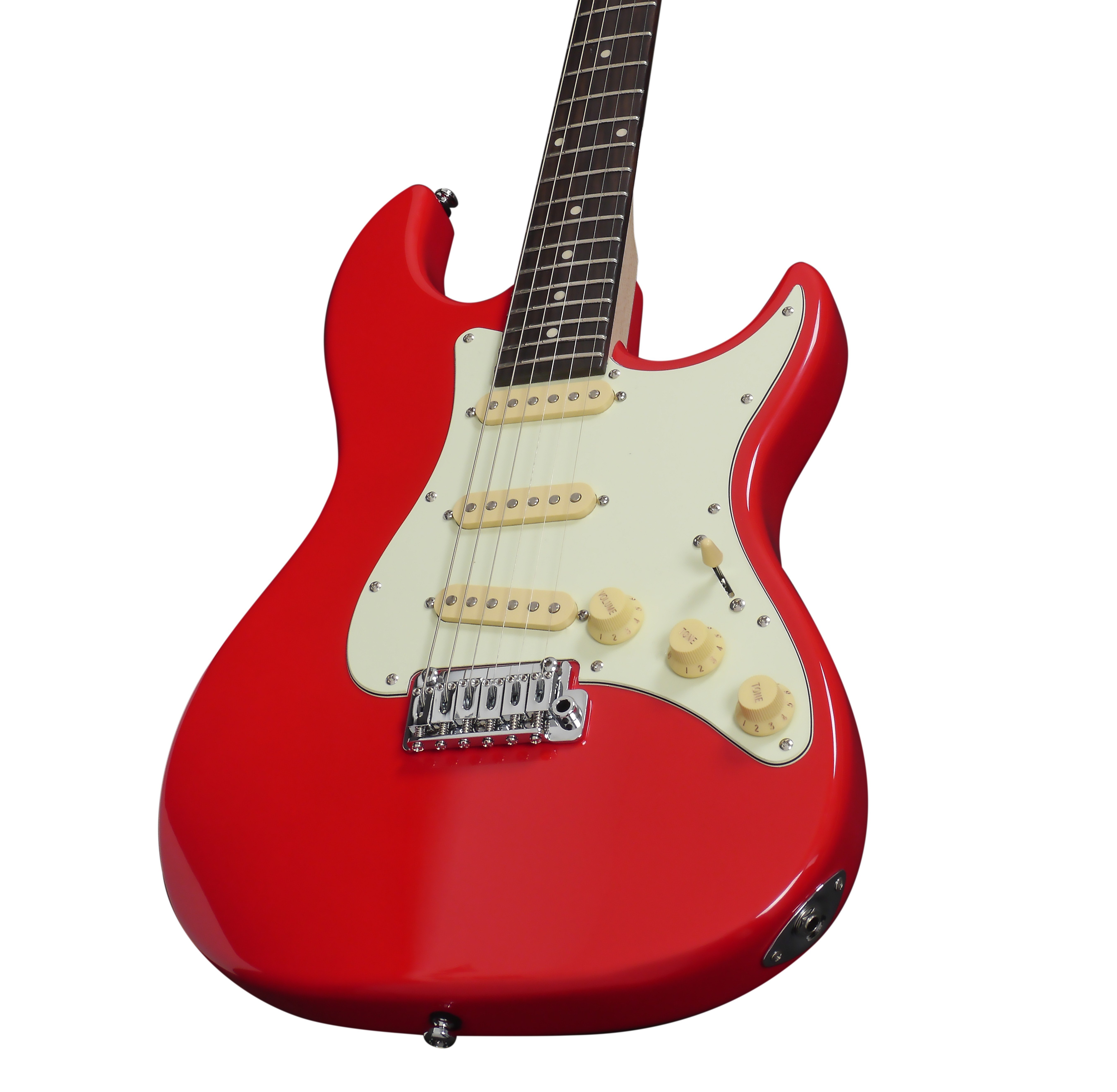 Guitare électrique Larry Carlton en forme de S. Corps en acajou. Manche en érable. Finition satinée du manche. Touche en palissandre. Bord arrondi pour plus de confort. Bolt-on. Échelle : 648 mm (25,5 ''). 22 frettes Medium Jumbo. Sillet : Bone Nut, Largeur 42 mm. Ensemble de micros SSS Sire Standard-ST. Contrôles Volume et Tone1 et Tone2. Interrupteur à 5 positions. Mécaniques Sire Standard. Pont Sire Standard Tremolo (type 2 postes). Finition des mécaniques : Chrome. Finition Dakota Red.