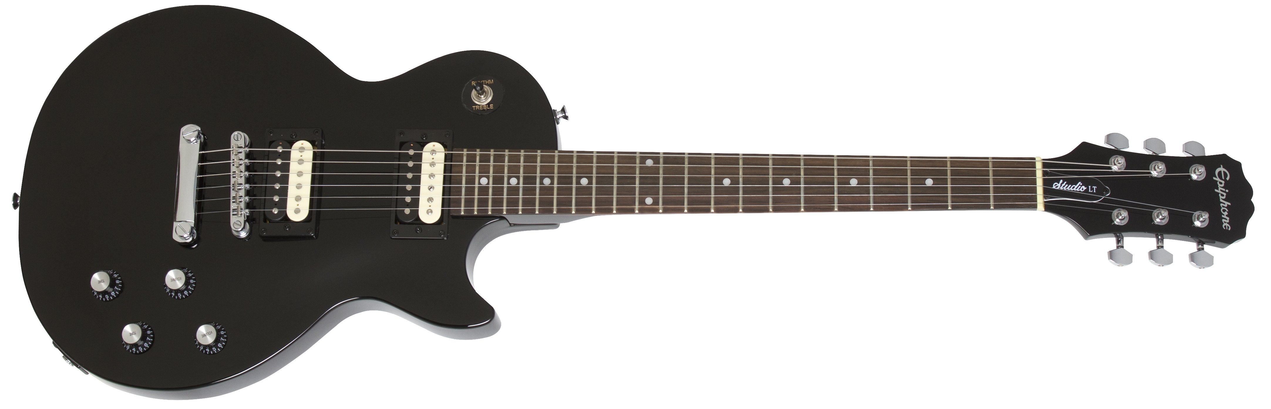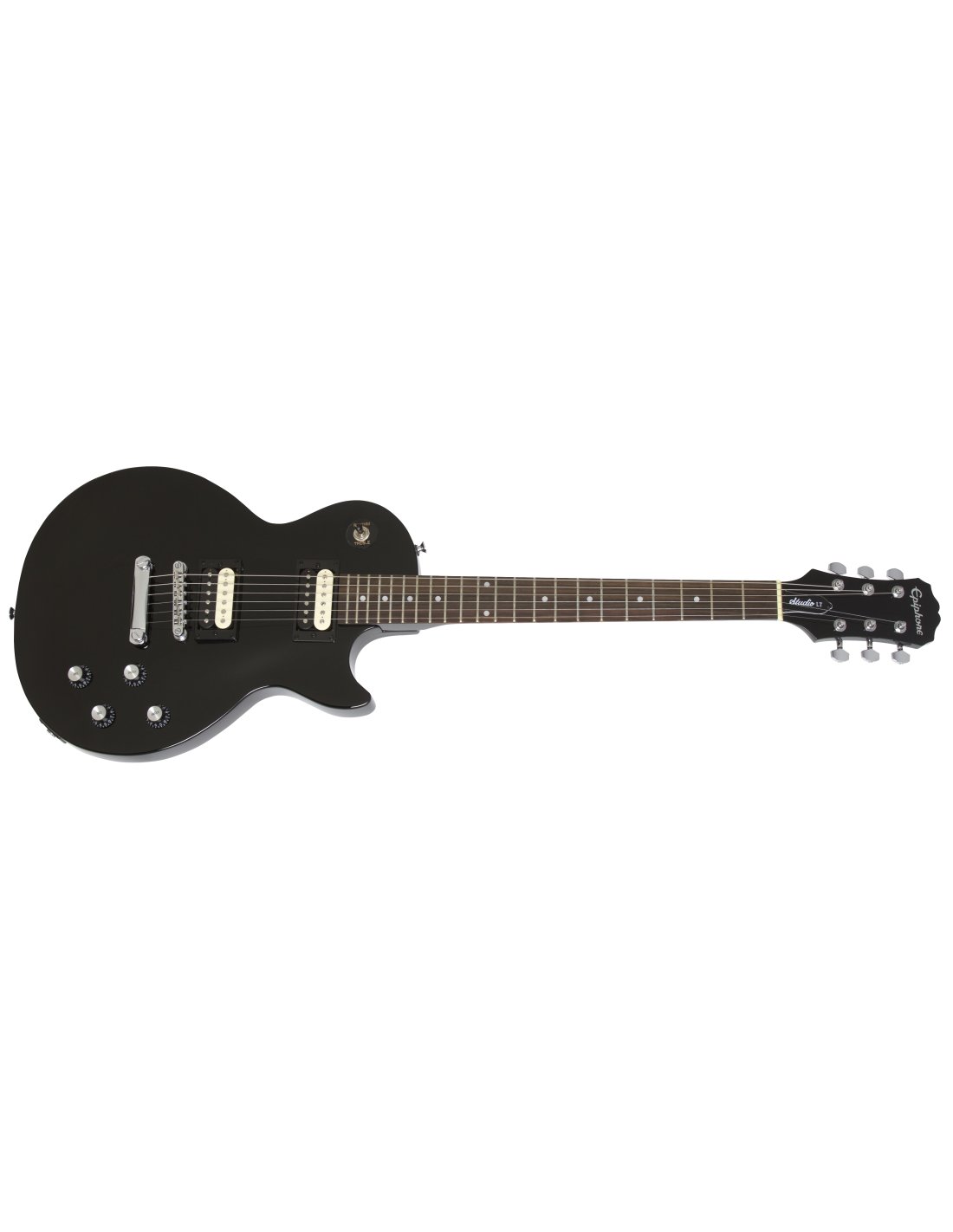 Guitare Électrique Epiphone Les Paul Studio LT couleur ÉBÈNE. L'Epiphone Les Paul Studio LT est une guitare électrique à 6 cordes. Les caractéristiques techniques incluent un corps en acajou, un manche en acajou avec un profil Slim Taper "D" des années 1960, un doigté en palissandre, 22 frettes, un micro Epiphone 650R Zebra-coil Humbucker (manche) et un Epiphone 700T Zebra-coil Humbucker (chevalet).