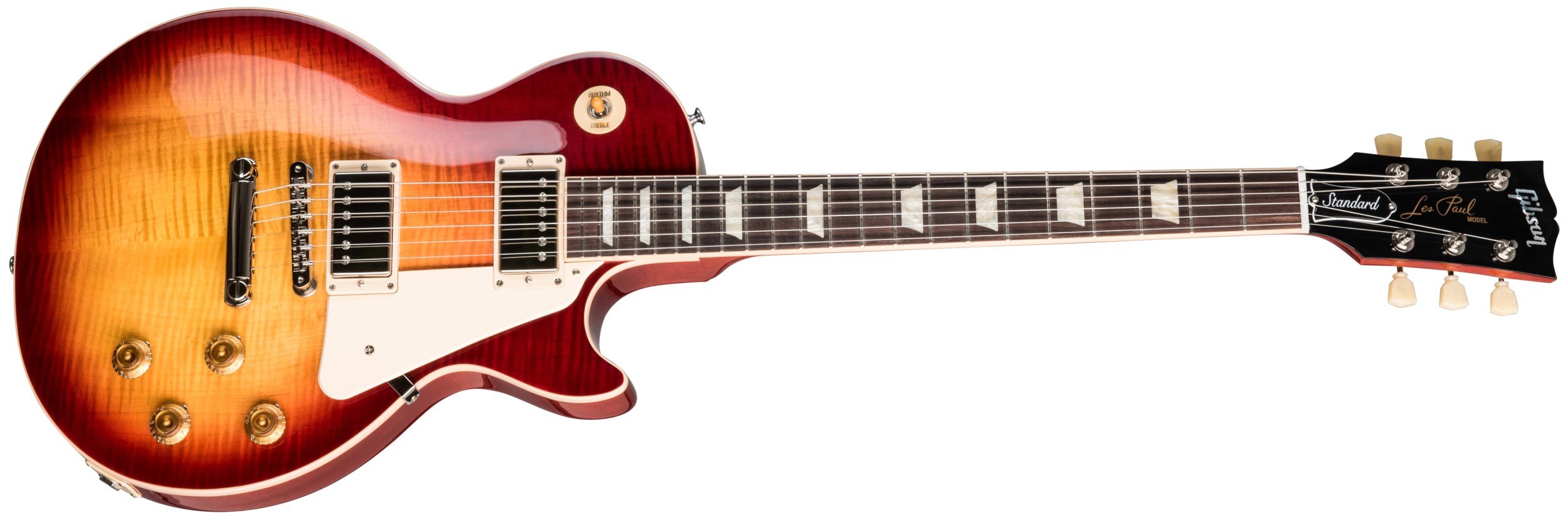 GIBSON LES PAUL STANDARD '50s HCS. Chitarra Elettrica Gibson Les Paul Standard '50s con finitura Heritage Cherry Sunburst. Le caratteristiche tecniche includono corpo in mogano, top in acero figurato AA, manico in mogano con profilo Rounded, tastiera in palissandro indiano a raggio 12" e 22 tasti Medium Jumbo, intarsi trapezioidali in nitrato di cellulosa. L'elettronica è dotata di pickup Burstbucker 61R Humbucker al manico e Burstbucker 61T Humbucker al ponte, potenziometri CTS, condensatori Bumble Bee, 2 controlli volume, 2 controlli del tono, fase e selettore a 3 vie. Presenta inoltre hardware nichelato, meccaniche Deluxe Vintage con manopole Keystone, ponte No-Wire ABR-1 Tune-o-matic con stopbar in alluminio. In dotazione custodia rigida Gibson.