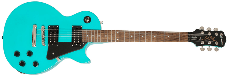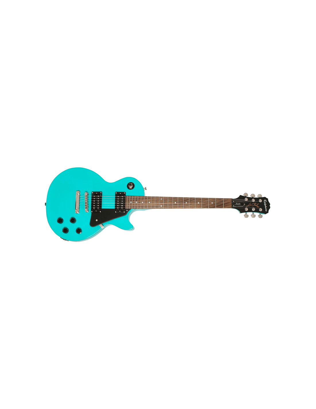 Chitarra Elettrica Epiphone Les Paul Studio colore TURQUOISE. L'Epiphone Les Paul Studio è una chitarra elettrica a 6 corde. Le caratteristiche tecniche includono corpo in mogano, top in acero, manico in mogano con profilo 1960's SlimTaper “D”, tastiera in pau ferro, radius 12”, 22 tasti medium-jumbo, pickup Epiphone Alnico Classic Humbucker (neck) ed Epiphone Alnico Classic Plus Humbucker (bridge).