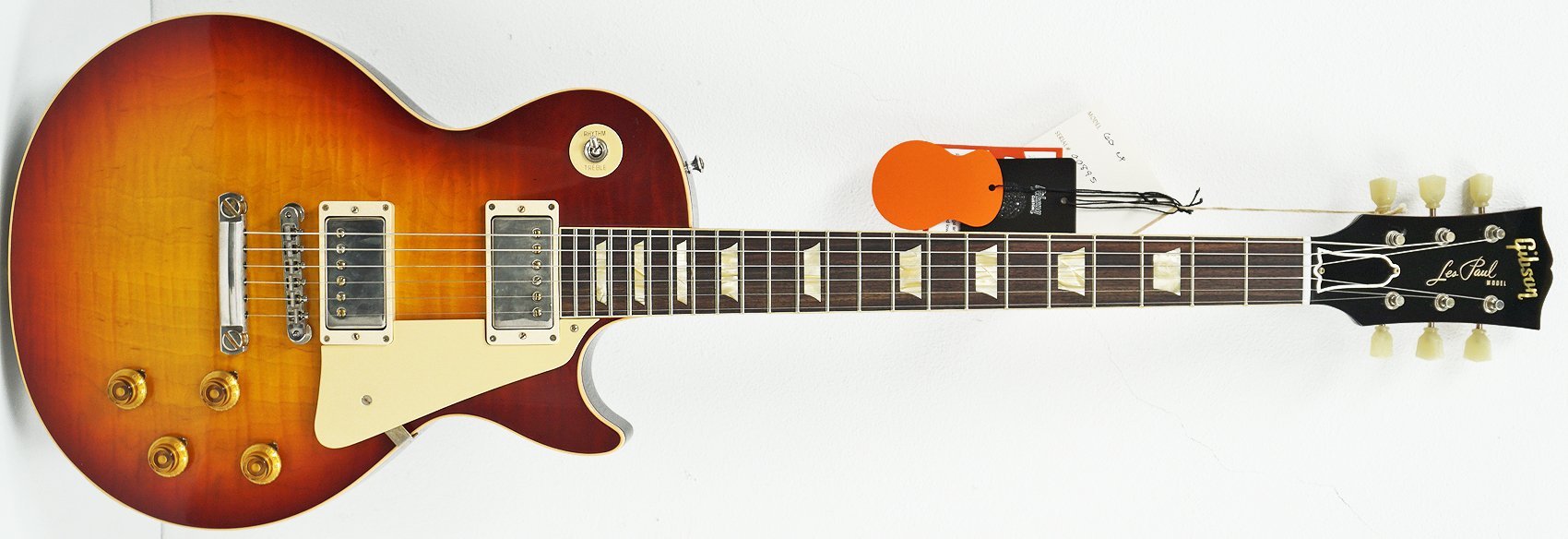 Chitarra elettrica Gibson 60TH Anniversary 1960 Les Paul Standard V1 Deep Cherry Burst. La Gibson 60TH Anniversary 1960 Les Paul Standard V2 è una chitarra elettrica 6 corde che celebra la Les Paul Standard del 1960 con grande cura dei dettagli. La V2 ha le stesse specifiche dei modelli del 1959 ma con un manico più sottile. Corpo e manico in mogano, top in acero fiammato, tastiera in palissandro indiano, pickups Custombucker Alnico III.