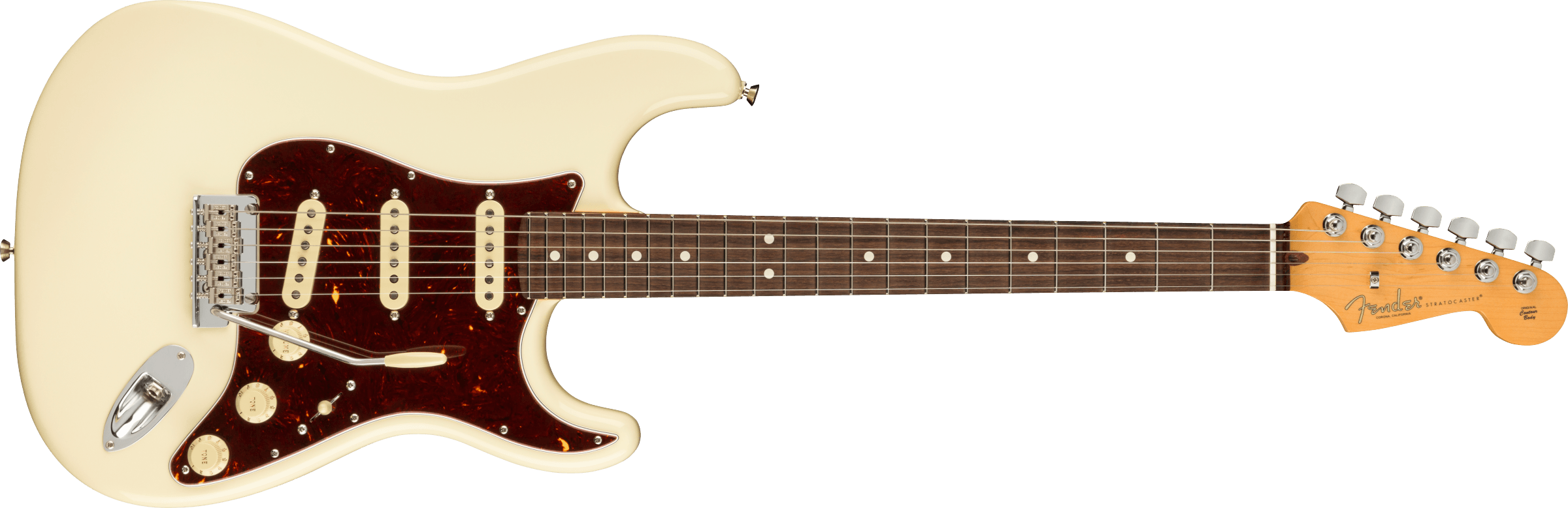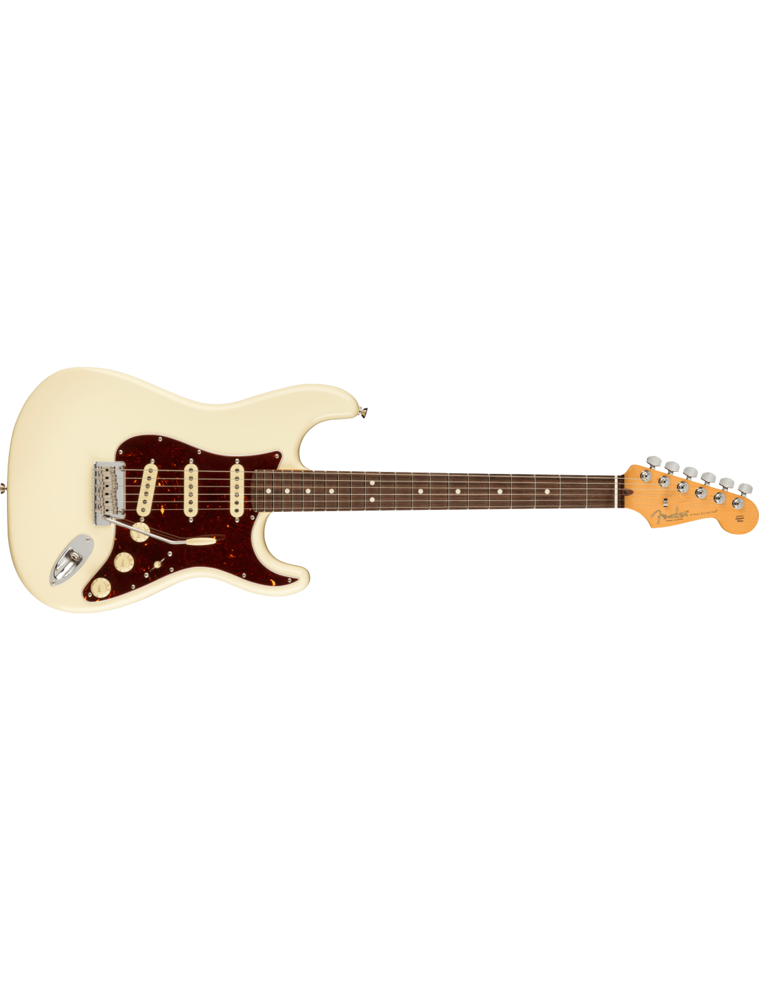 Guitare Électrique Fender Stratocaster American Professional II RW couleur Olympic White avec un manche en palissandre. La Fender Stratocaster American Professional II est une guitare électrique à 6 cordes, s'inspirant de plus de soixante ans d'innovation, d'inspiration et d'évolution pour répondre aux besoins du musicien professionnel d'aujourd'hui.