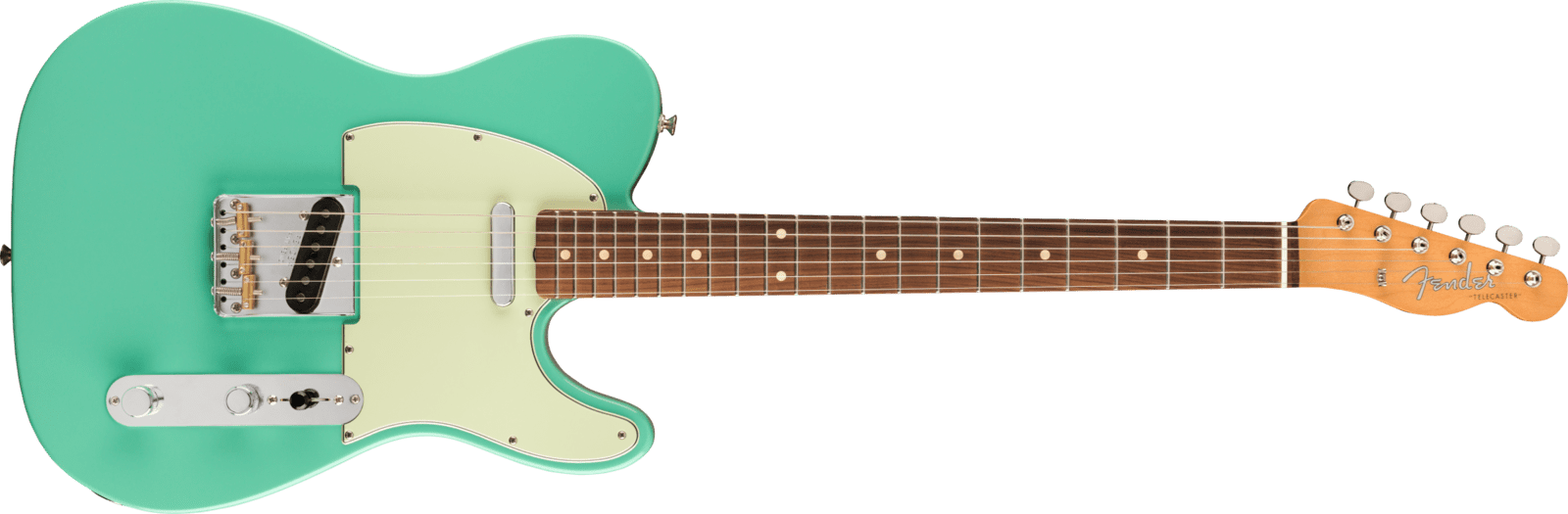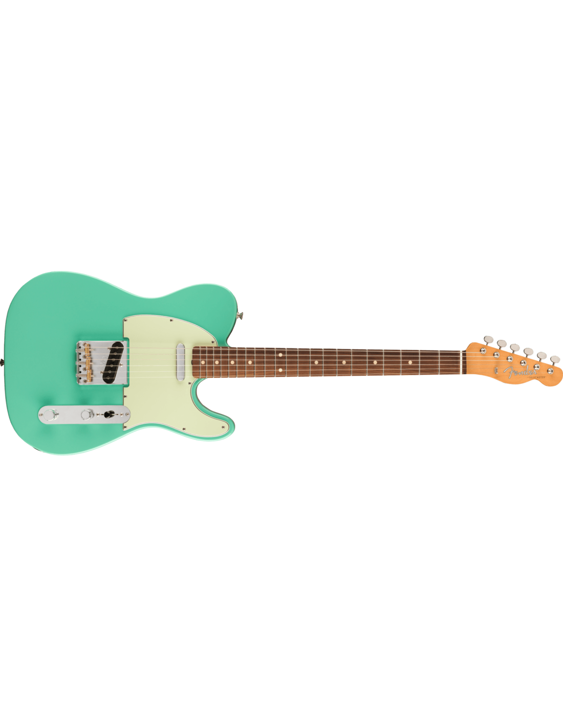 Guitare Électrique Fender Vintera 60s Tele Mod PF SFMG couleur Sea Foam Green. La Fender Vintera 60s Tele Mod PF SFMG est une guitare électrique à 6 cordes. Les caractéristiques techniques incluent un corps en tilleul, un manche en érable avec profil Thick "C", un doigté en pau ferro, un rayon de 9.5", 21 frettes medium jumbo, des micros Fender ‘60s Single-Coil Hot Tele, un sélecteur à 4 positions et un contrôle S-1 switch. Une housse douce Deluxe est fournie.