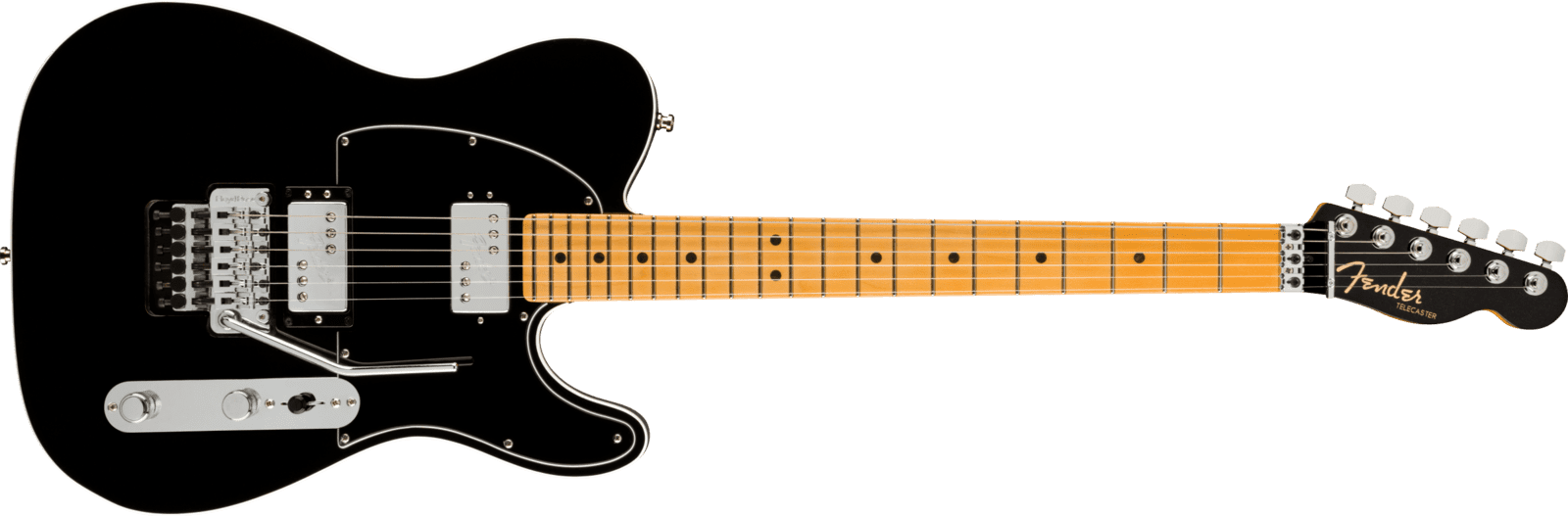 FENDER ULTRA LUXE TELE HH FR MN MBK est une guitare électrique Solid Body de la série Fender American Ultra Luxe Telecaster avec un corps en tilleul, un manche en érable profil Augmented D Shape avec bords arrondis, un doigté en érable à rayon composite 10"-14" avec 22 frettes Medium Jumbo en acier et des incrustations Black Dots, un sillet Floyd Rose Original Locking, du matériel chromé, des mécaniques Fender Deluxe Sealed Locking et un pont Fender Floyd Rose Original Double-Locking 2-Point Tremolo. L'électronique en configuration HH se compose de 2 micros humbucker Custom Double Tap avec des contrôles de volume (avec switch S-1), de tonalité et un sélecteur de micros à 3 voies. Inclut une housse rigide moulée Fender.