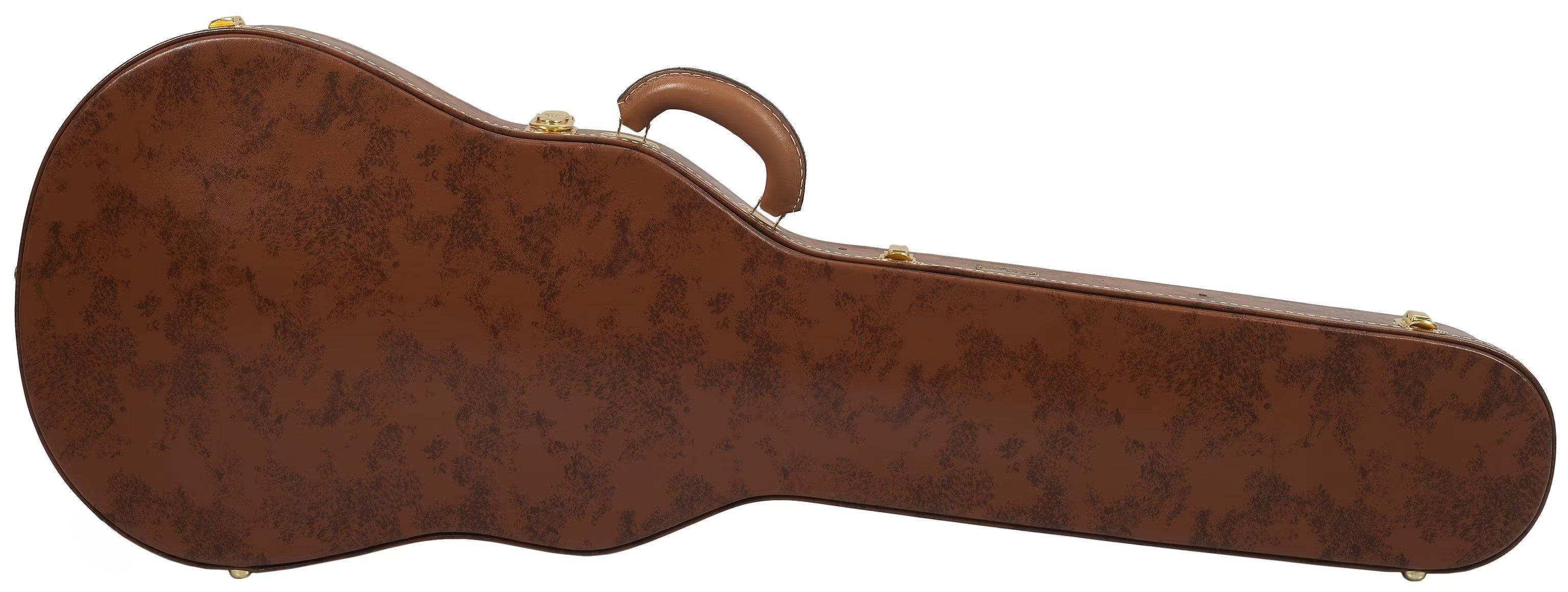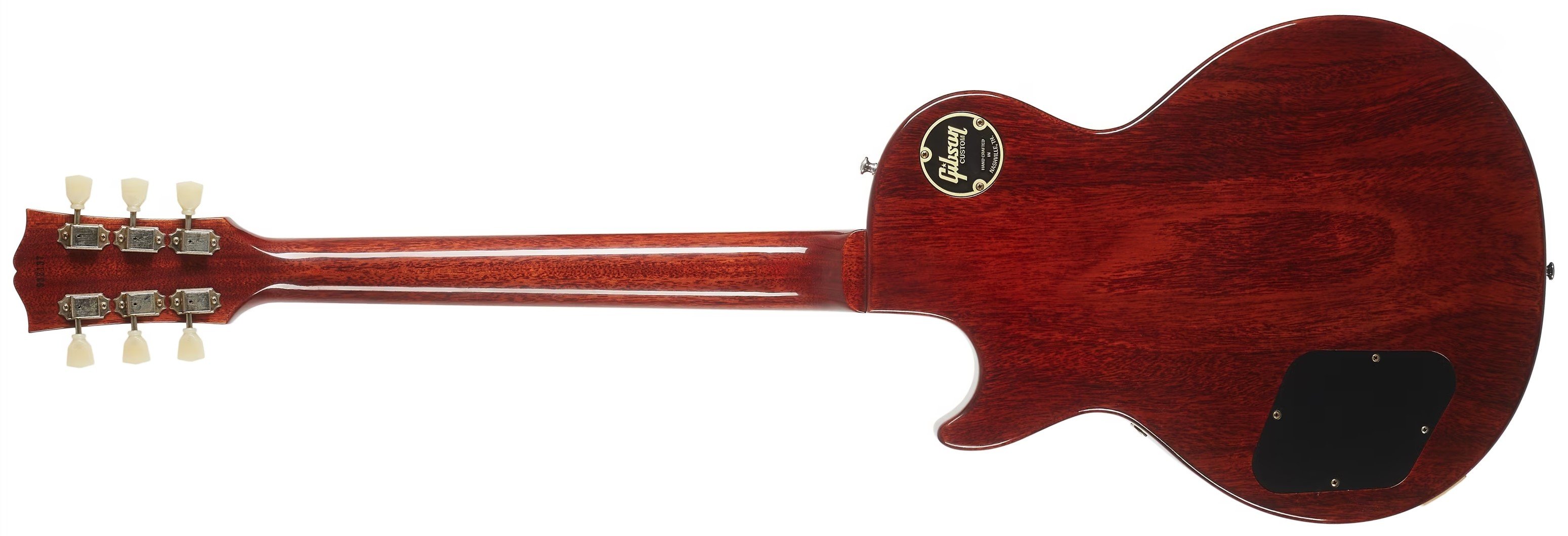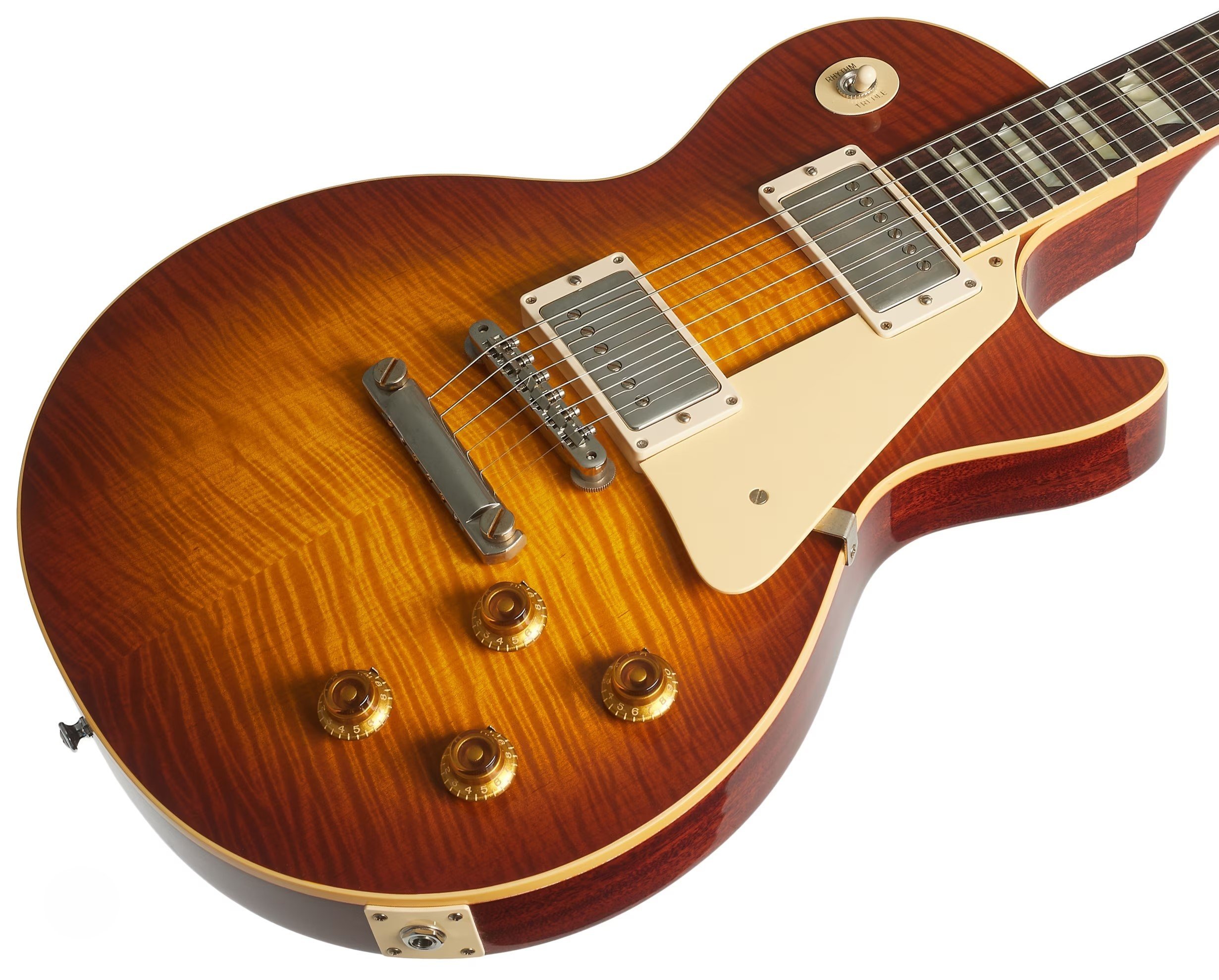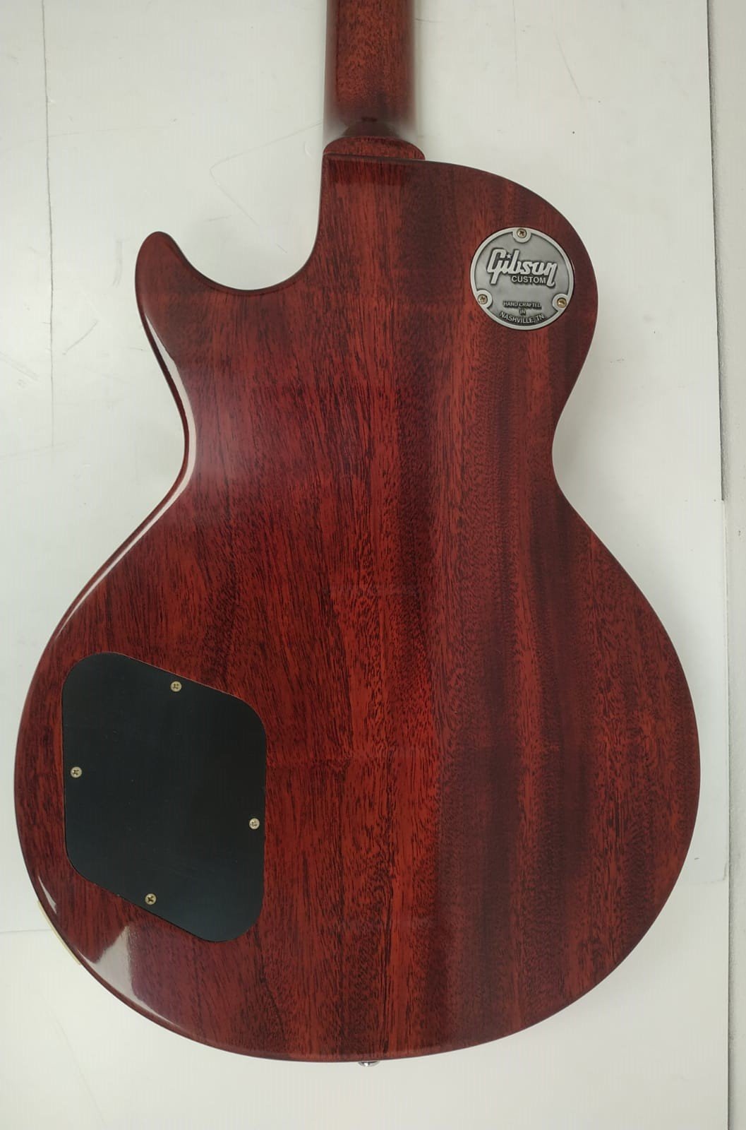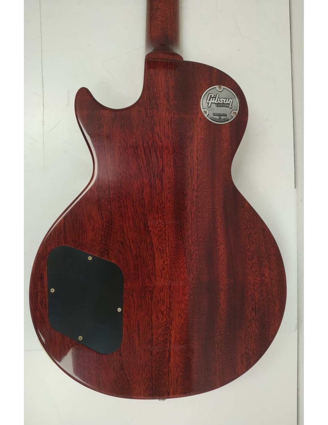 GIBSON LES PAUL '59 ICED TEA BURST VOS NH S/N 912515 è una chitarra elettrica solid body, modello Gibson Custom 1959 Les Paul Standard Reissue, con corpo in Mogano alleggerito e Top in Acero Figurato 2 pezzi a finitura Nitrocellulose VOS (Vintage Patina), manico in Mogano a profilo 50s Rounded Medium C, tastiera in Palissandro Indiano a raggio 12" con 22 tasti Historic Medium Jumbo e intarsi Cellulose Nitrate Trapezoid, capotasto in Nylon, hardware nichelato, meccaniche Kluson Single Line-Single Ring e ponte Gibson ABR-1 Tune-O-Matic con sellette in ottone e cordiera Lightweight Aluminum Stop Bar. L'elettronica a configurazione HH, consiste in 2 pickup Gibson CustomBucker Alnico III con potenziometri CTS 500K Audio Taper, condensatori carta-olio, 2 controlli Master Volume, 2 controlli Master Tone e selettore pickup a 3 vie. Include la custodia Gibson Brown Lifton 5-Latch Case e certificato di autenticità Gibson.