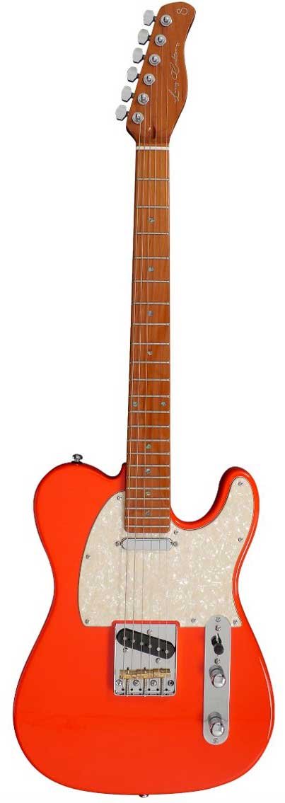 Guitare électrique SIRE LARRY CARLTON T7 couleur Fiesta Red. Les caractéristiques techniques incluent un corps en tilleul, un manche en érable torréfié avec profil en C, un touche à rayon 9,5" en érable torréfié avec 22 frettes Medium Jumbo, un pont Vintage T Bridge, des incrustations Dot en abalone, 2 micros simple bobinage Sire LC super-T, mécaniques Sire Premium Locking. Étui non inclus.