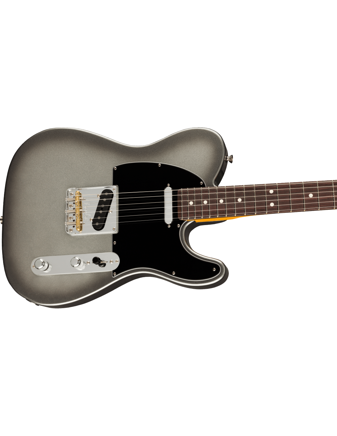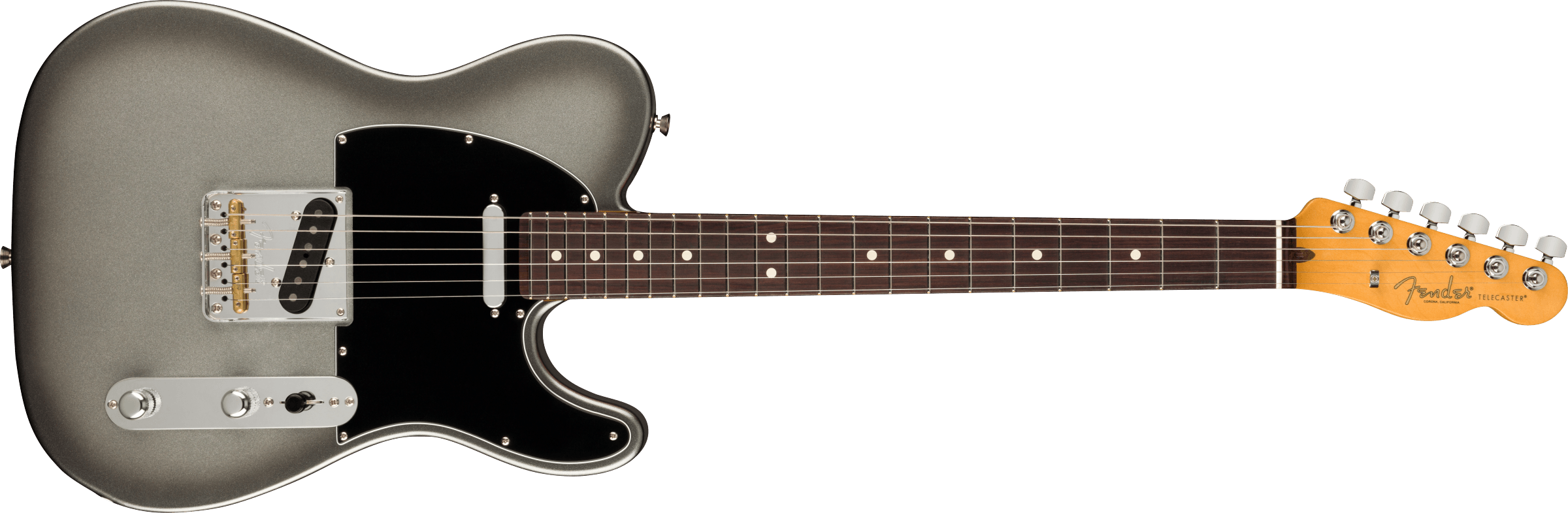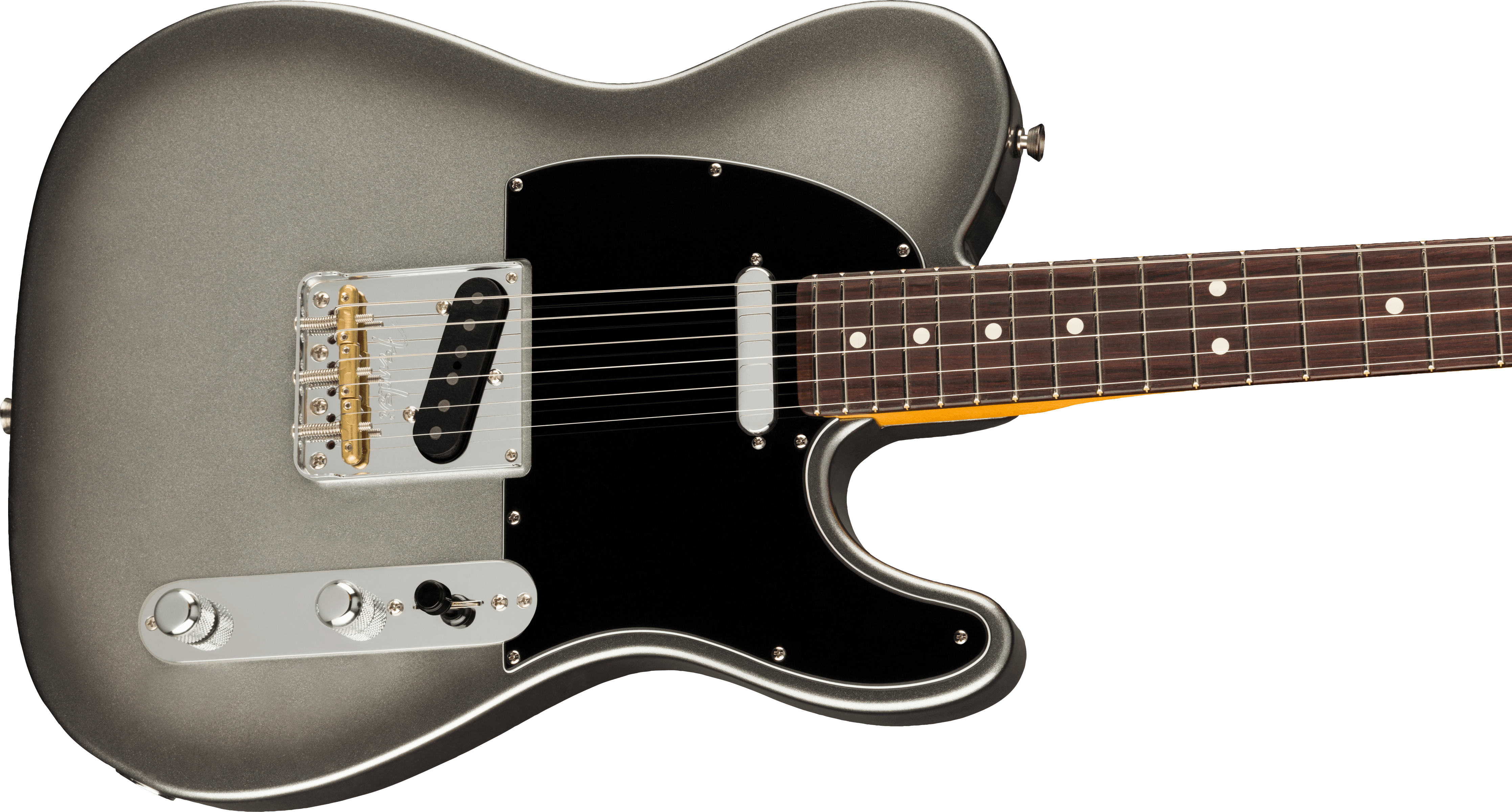 FENDER AM PRO II TELE RW MERCURY est une guitare électrique solid body, modèle American Professional II Telecaster, avec un corps en aulne et une finition en vernis uréthane, un manche en érable au profil Deep "C", un doigté en palissandre à rayon 9,5" avec 22 frettes Narrow Tall et des incrustations White Dot, un sillet en os, un matériel nickelé, des mécaniques Fender Standard Cast/Sealed Staggered avec un abaisse-cordes Single-Wing et un pont Top-Load/String-Through Tele à 3 sellets en laiton "Bullet". L'électronique à configuration SS consiste en 2 micros V-Mod II Single-Coil Tele, avec un contrôle Master Volume, un contrôle Master Tone, un sélecteur de micros à 3 voies, un circuit Treble Bleed qui préserve les fréquences aiguës en abaissant le volume, et un Push-Push sur le contrôle de Ton pour la configuration des micros en série. Inclut un étui moulé Fender Deluxe