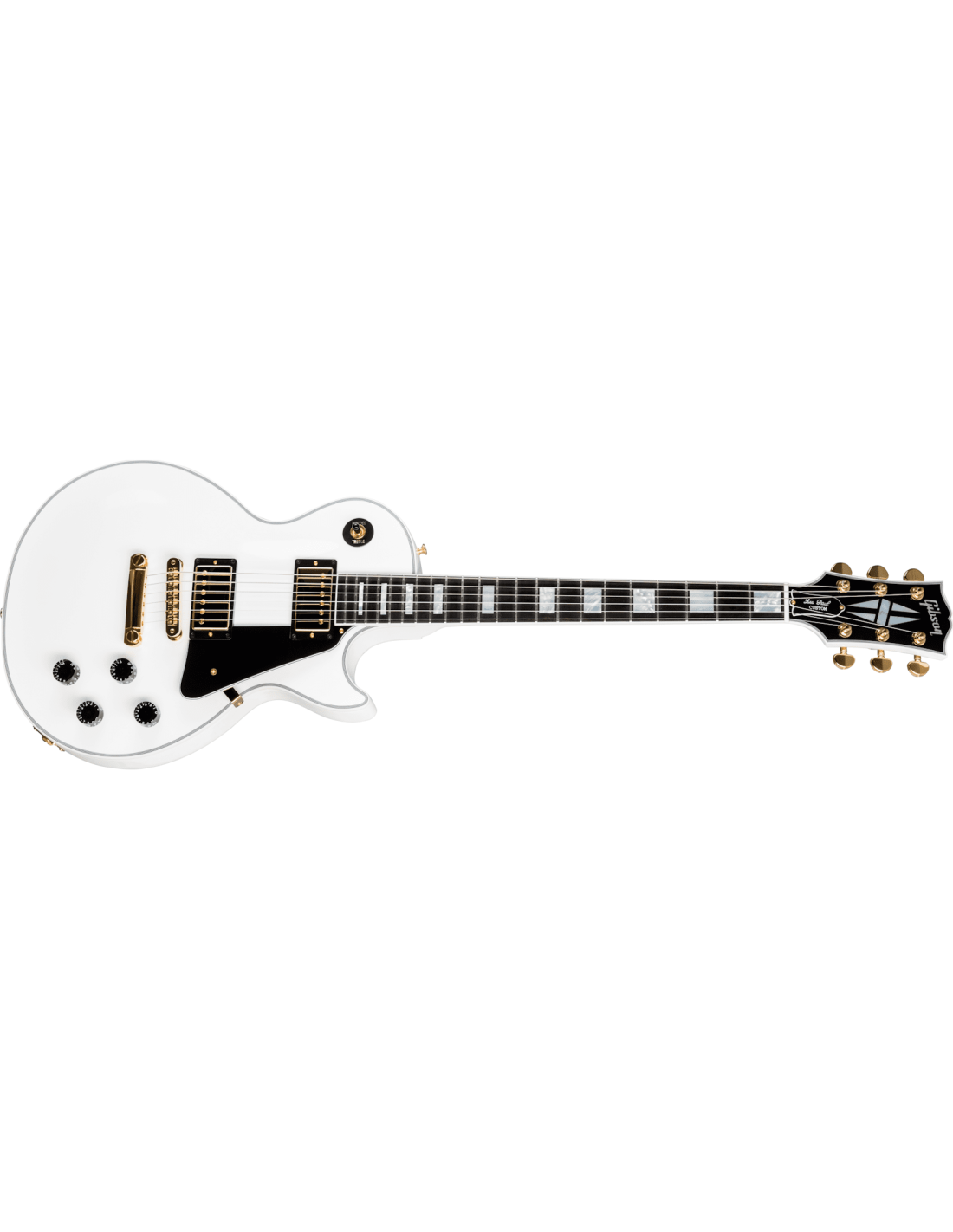 GIBSON LES PAUL CUSTOM ALPINE WHITE. Guitare électrique Solid body Gibson Les Paul Custom shop avec corps en érable figuré 2 pièces, fond en acajou léger monopièce, manche en acajou massif à profil C-Shape, touche en ébène massif à rayon 12" avec 22 frettes Medium-Jumbo et incrustations en blocs en nacre, mécaniques Grover Kidney, quincaillerie dorée et pont Tune-O-Matic avec cordier Stopbar. L'électronique se compose de 2 micros Humbucker : 498T au pont et 490R au manche avec potentiomètres coniques CTS 500K 2x volume/ 2x tonalité, condensateurs papier-huile et sélecteur de micros Switchcraft à 3 voies. Inclut une housse rigide Gibson Custom Shop.